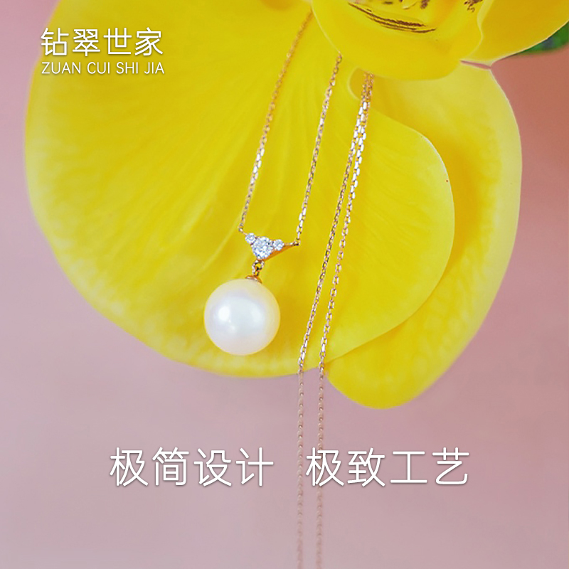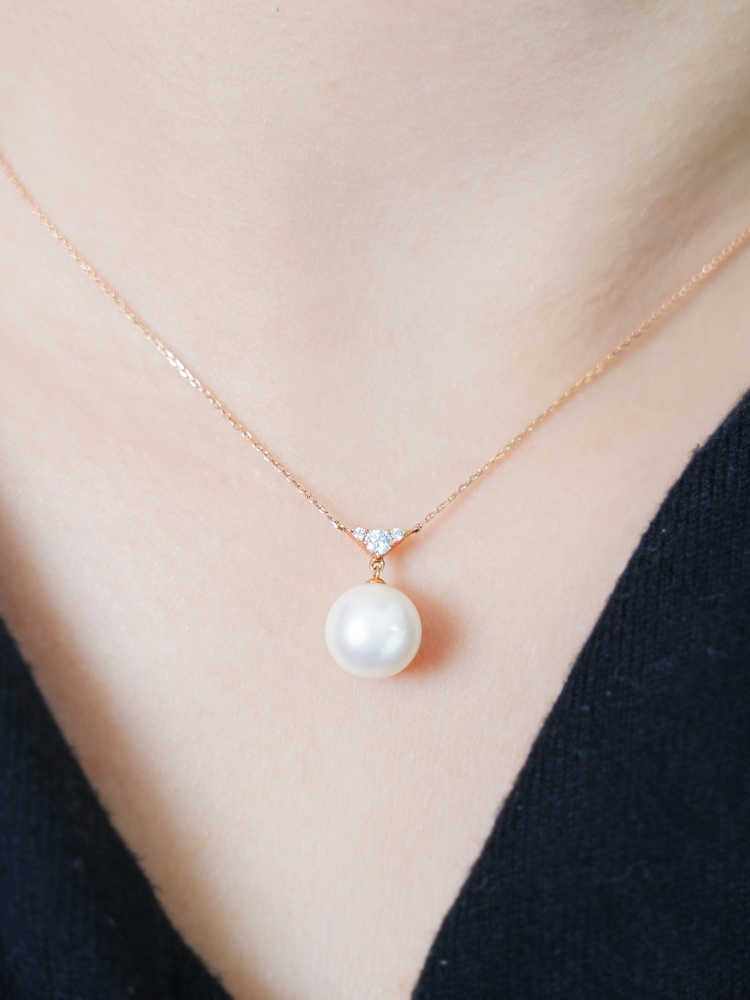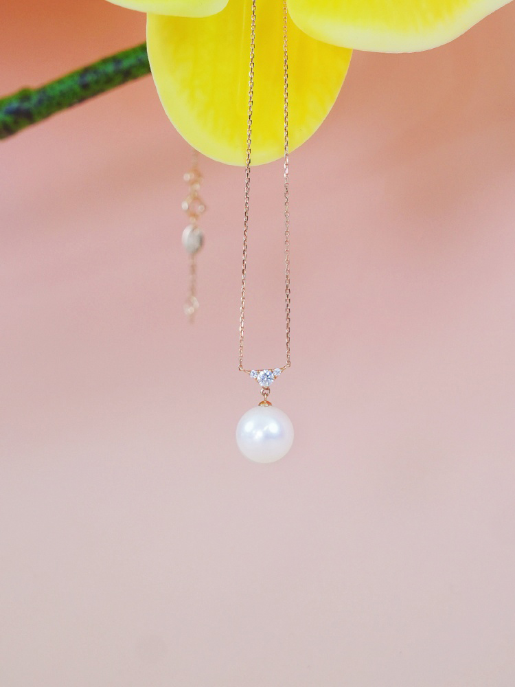 【现货】18K金珍珠项链三角镶钻小众设计师款【尺寸9.8mm】 【一物一证书】