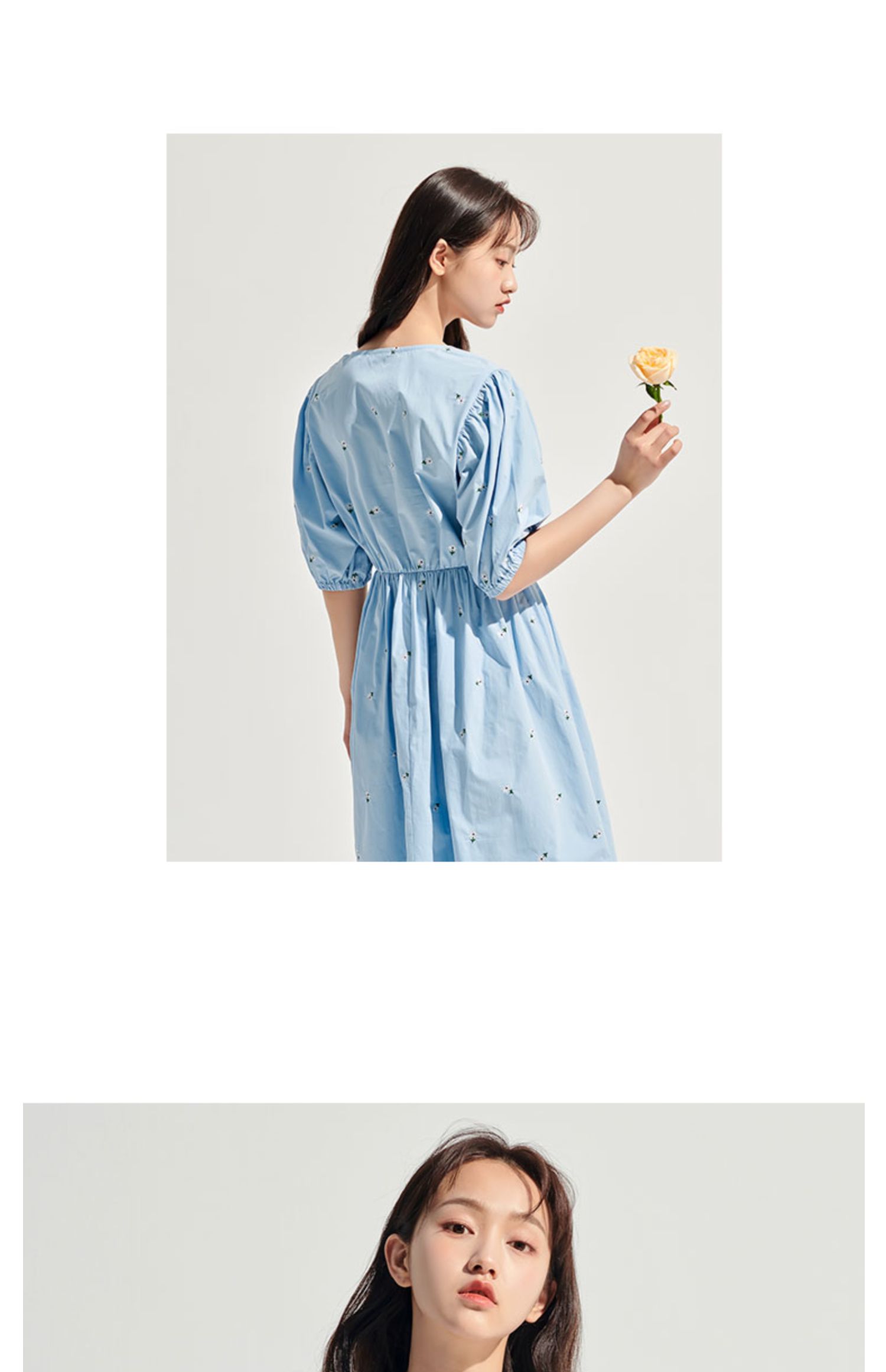 韩都衣舍2021夏装新款女装高腰方领泡泡袖显瘦连衣裙RN0015甦