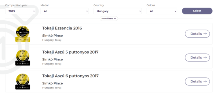 2023 年,思慕客再次斩获佳绩。在 15 个国家 900 多款酒角逐中,它斩获 1 枚特金奖,2 枚金奖,与 “Grand Tokaji(托卡伊‘拉菲’级别存在)”等名庄一较高下。