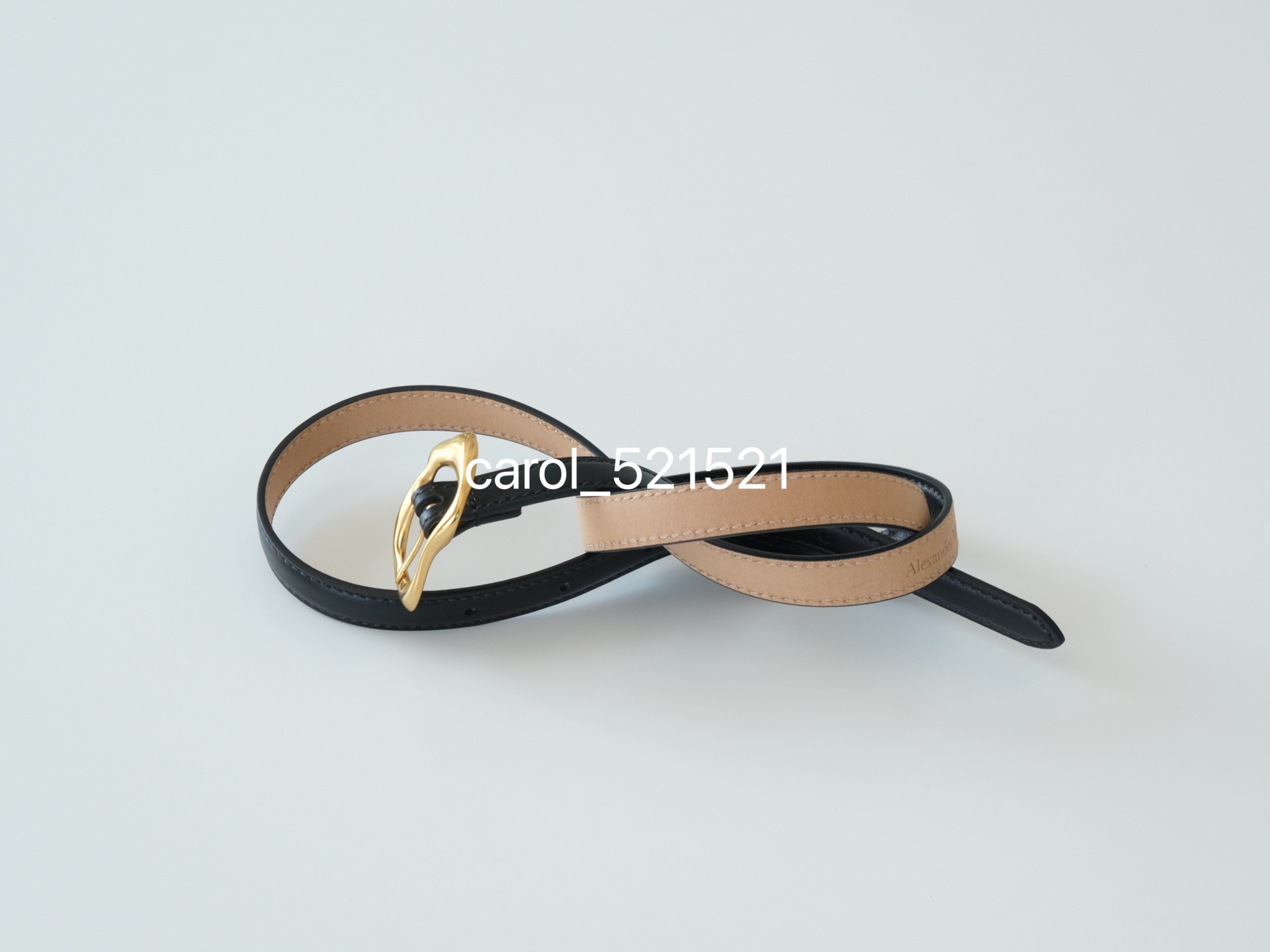 稀有正单 Mcqueen Thin-Molten Belt 女士细腰带 金色"融化"扣极具设计感