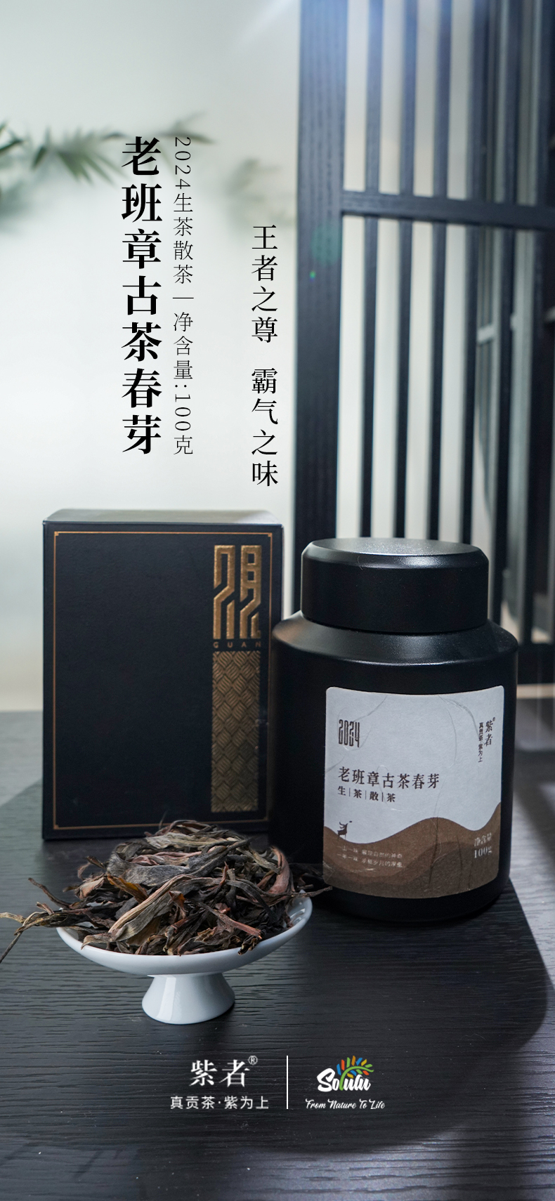2024年老班章古茶春芽生茶散茶罐装(净含量:100克)