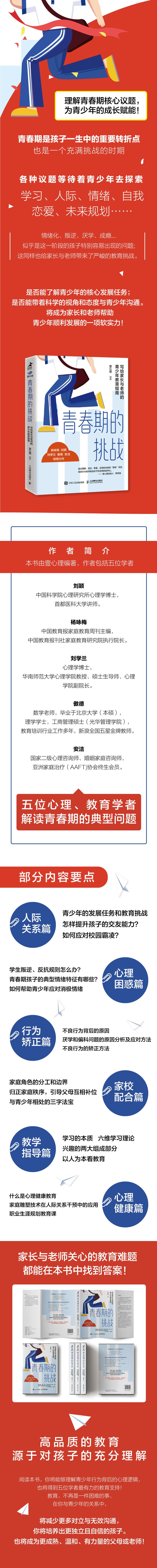 青春期是孩子从未成年到成年的关键过渡期,这几乎意味着人的“第二次诞生”。对于家长和老师来说,这个年龄段的孩子非常难沟通,他们可能会反抗规则、情绪化、拒绝交流,甚至产生成瘾问题,沉迷游戏,逃学逃家。实际上,青少年的这些“问题”是他们身心高速发展期或多或少都会出现的,他们希望靠自己的力量去解决问题,渴望摆脱对成人的依赖,但心智的不成熟又使得他们无法完全独立。这意味着青少年非常需要大人的引导与陪伴。成人应从管教者变成他们可以信赖、征询意见、倾诉感受、探讨困惑的朋友。本书由五位建树颇丰的心理、教育专业工作者联合打造,内容涵盖了青少年常见的心理与行为问题,包括青少年的人际关系问题、心理困惑、学习的本质以及如何做好家校配合等内容,为学校和家庭教育提供了有效参考。带领老师和家长走进孩子的内心世界,陪孩子成长成才,让孩子一步步蜕变成情绪稳定、积极融入社会、有知识有教养、有能力有担当、有笑对挫折的勇气与胸怀......