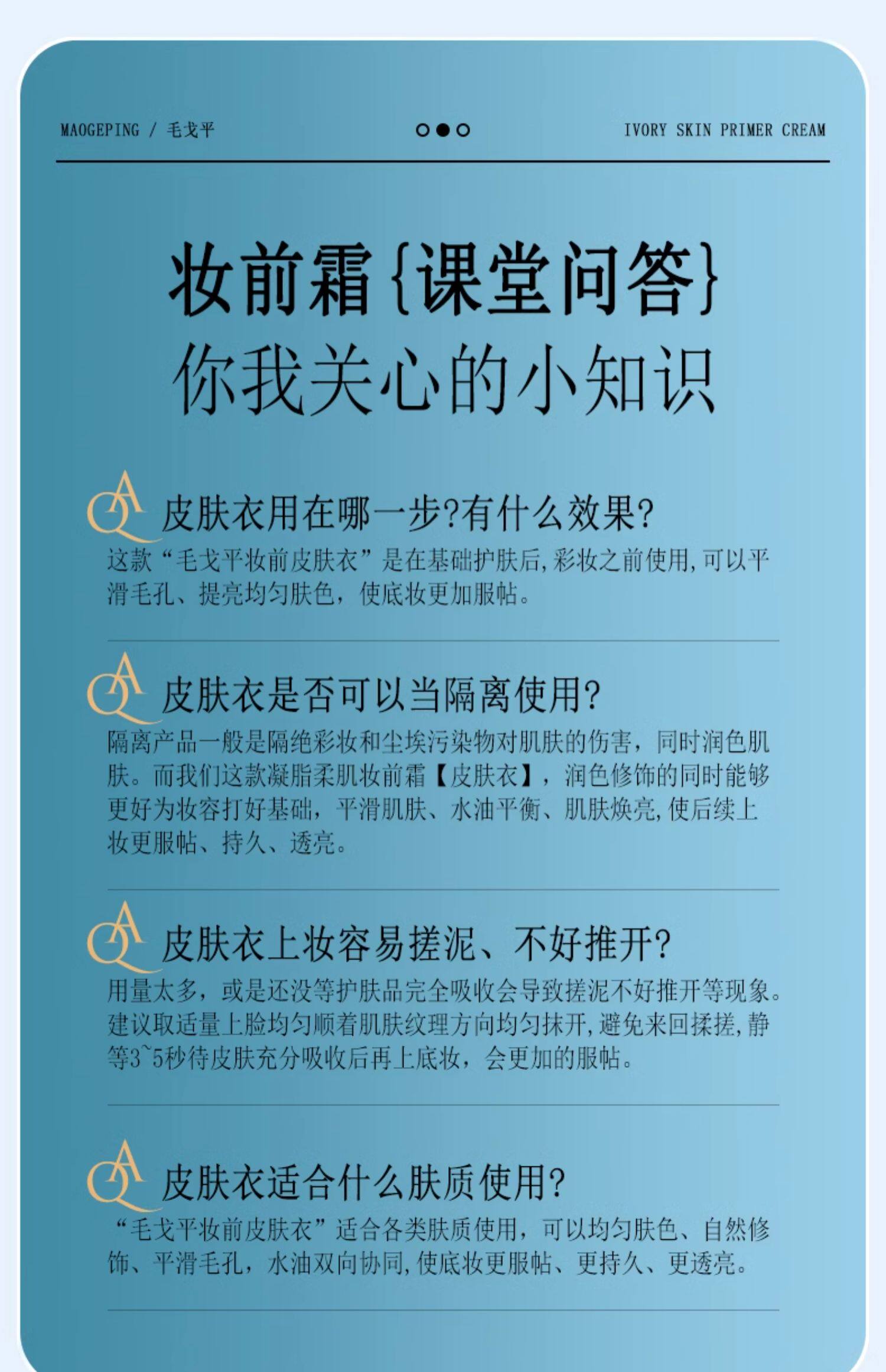 毛戈平皮肤衣凝脂柔肌妆前霜30ML 保湿打底不卡粉 无瑕底妆!!