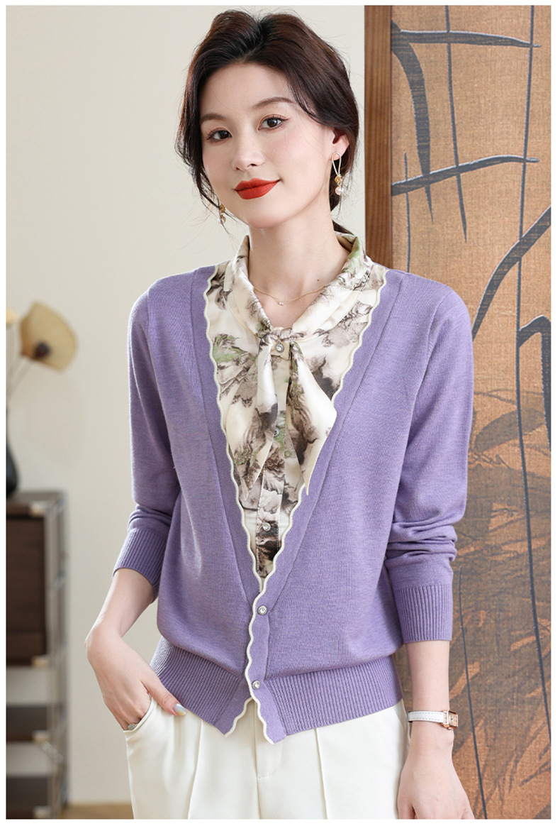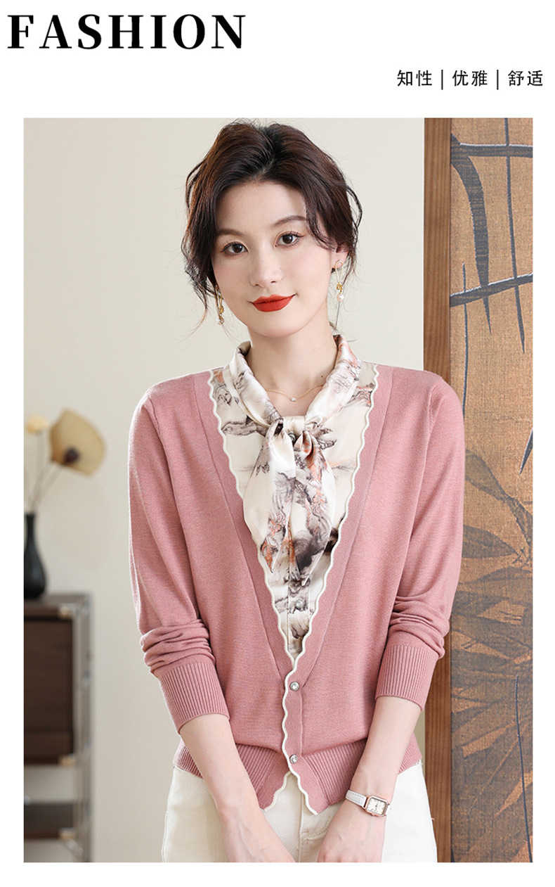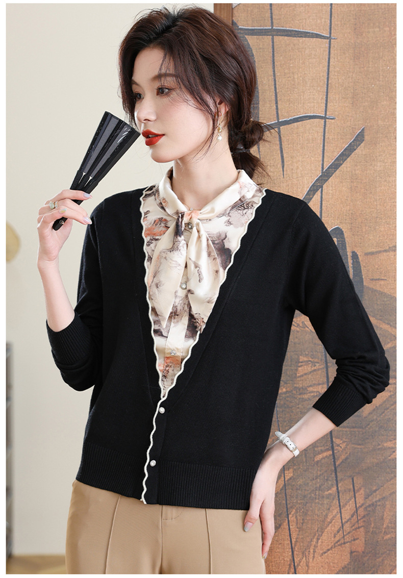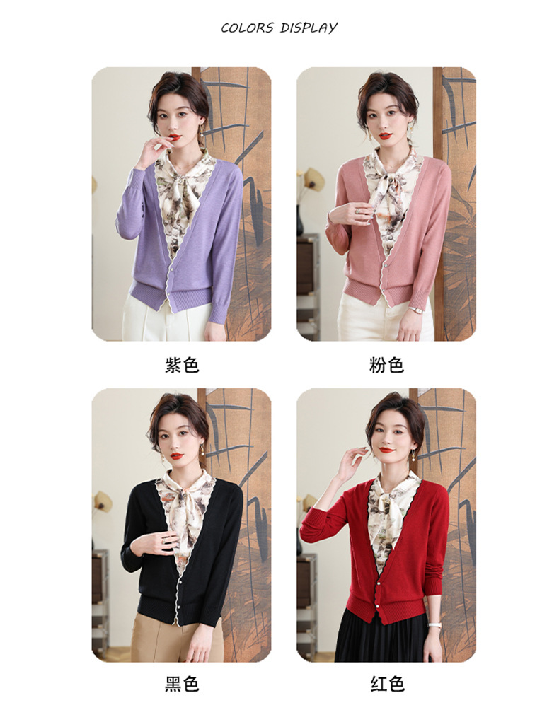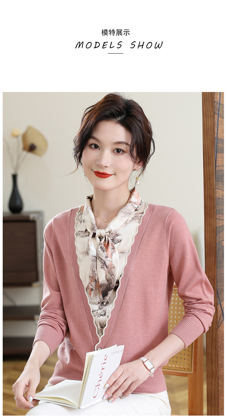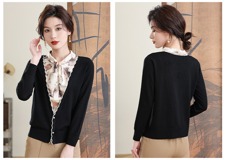 假两件中年妈妈装长袖上衣,蝴蝶结领洋气小衫CC- 101-A001