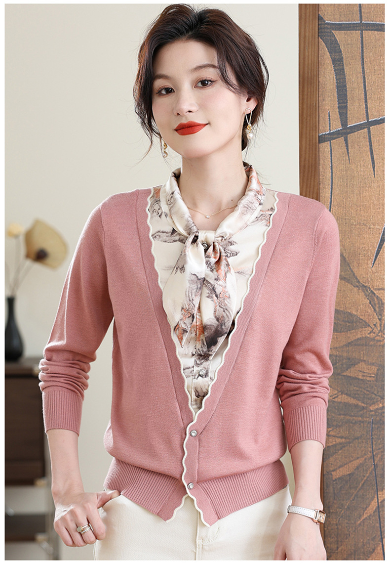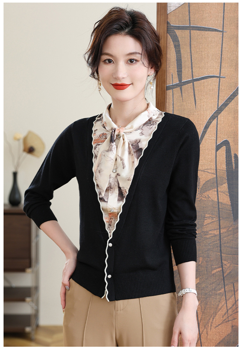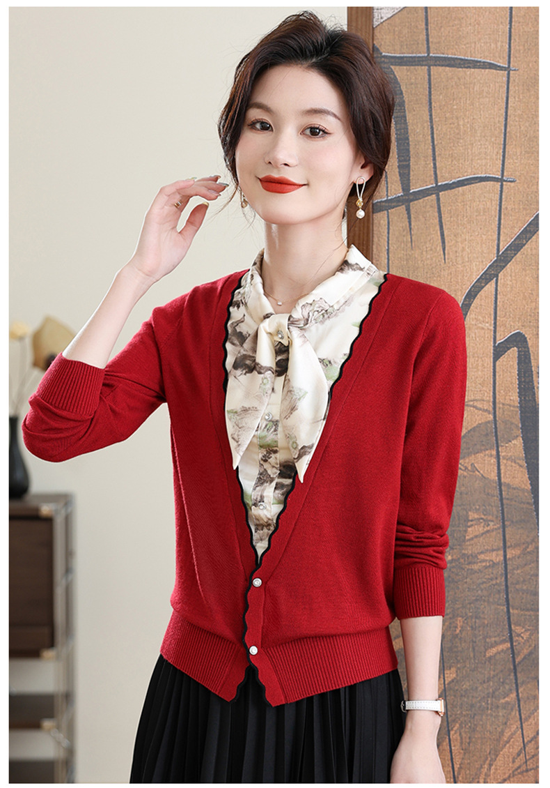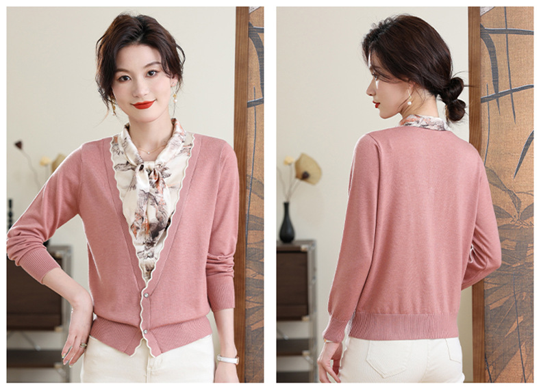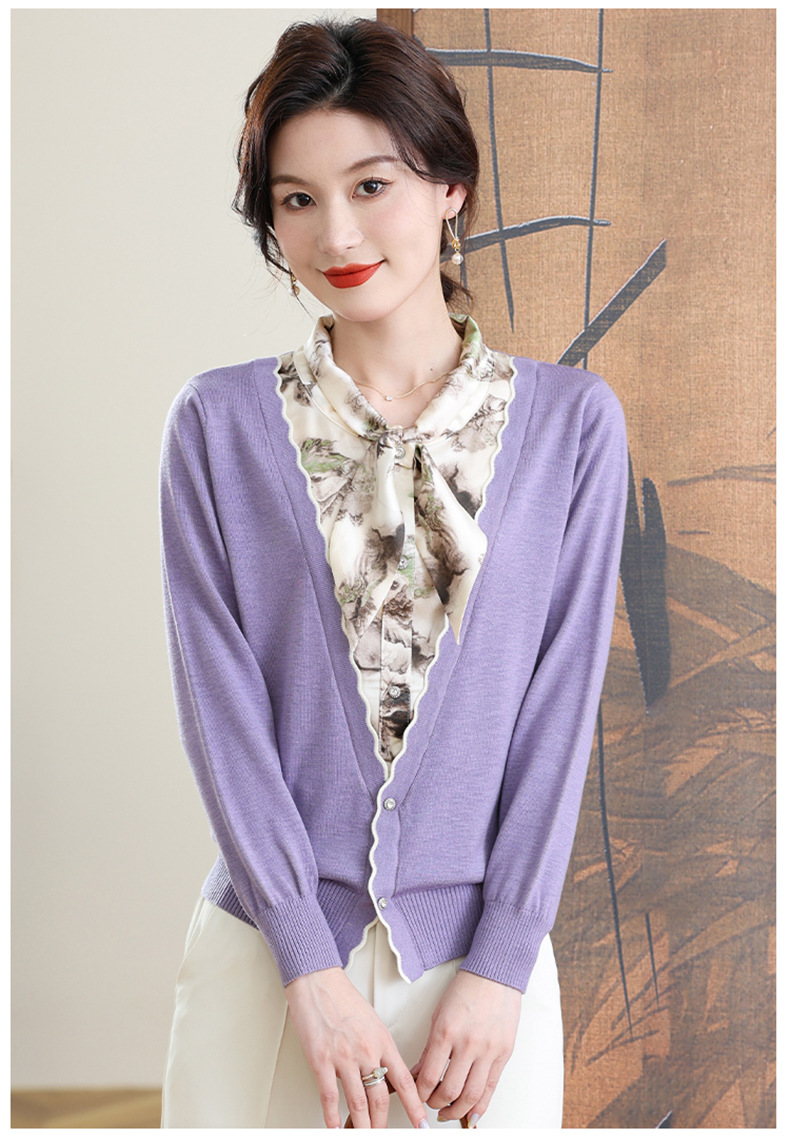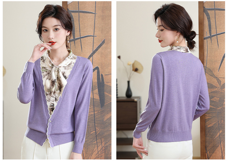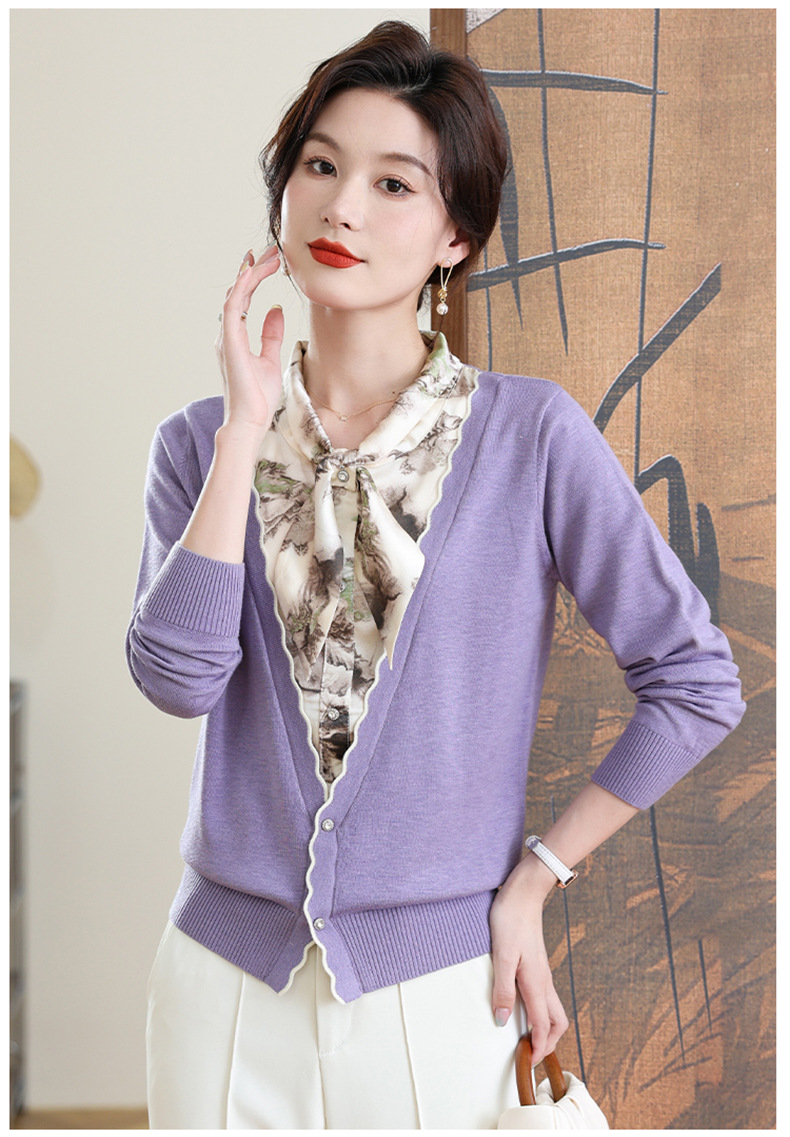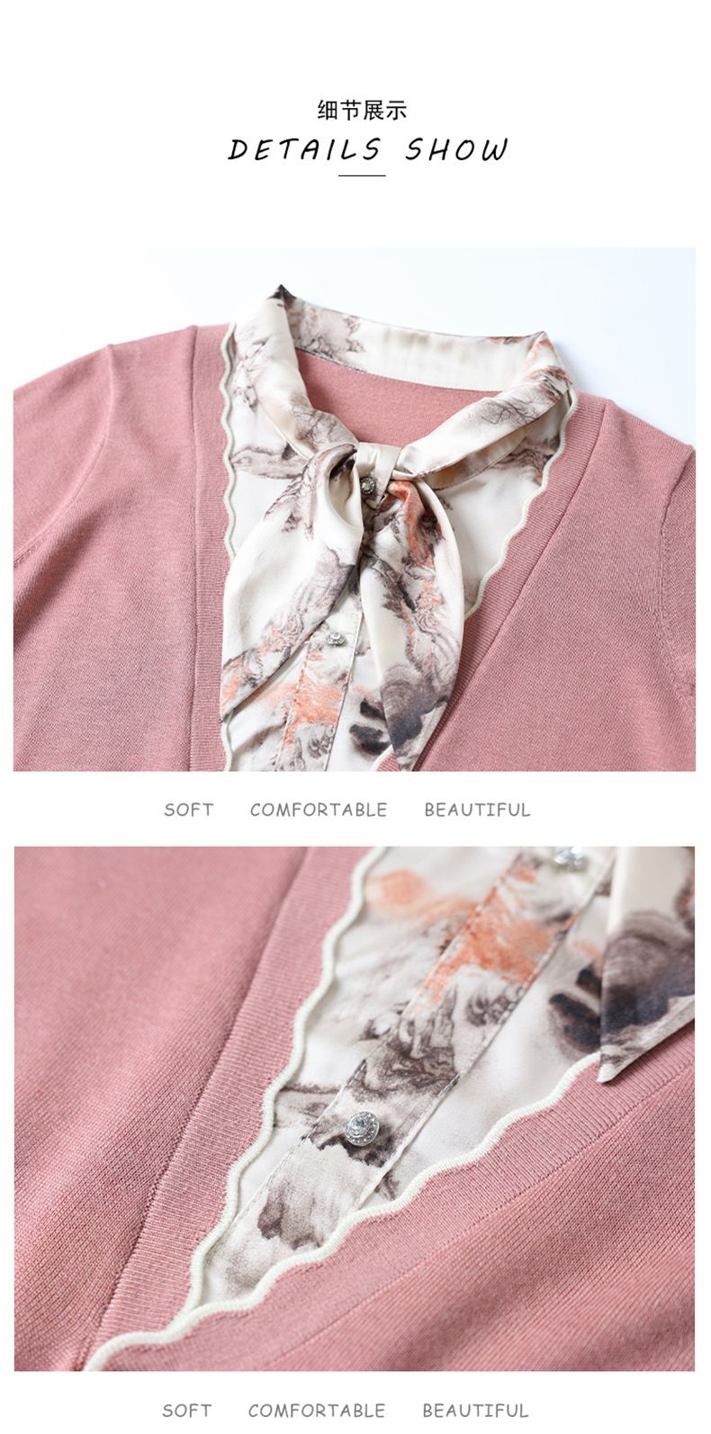 假两件中年妈妈装长袖上衣,蝴蝶结领洋气小衫CC- 101-A001