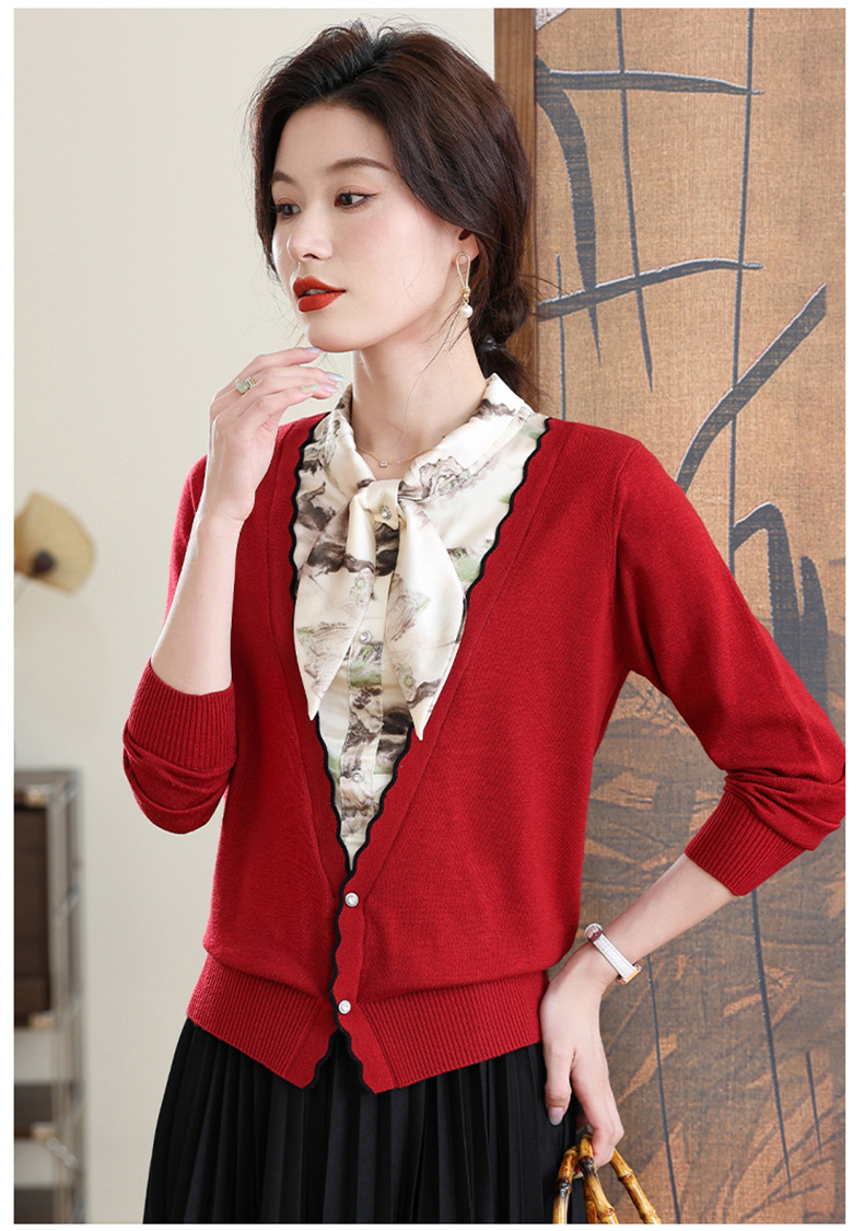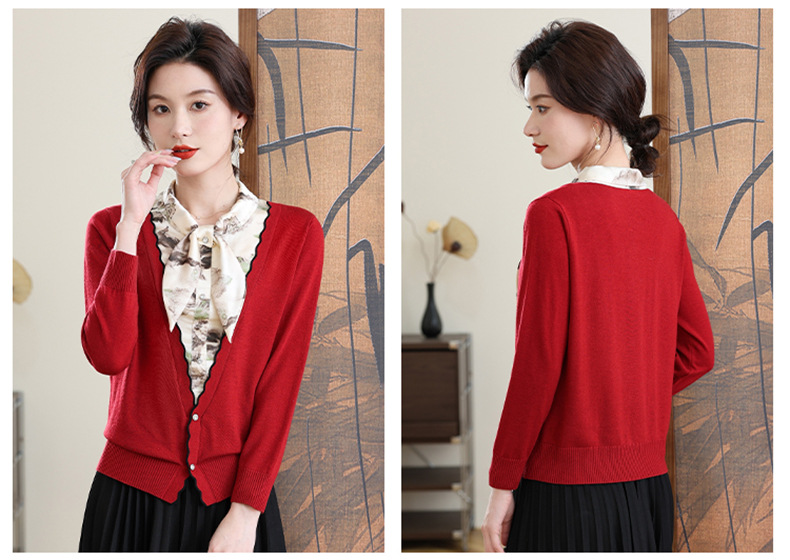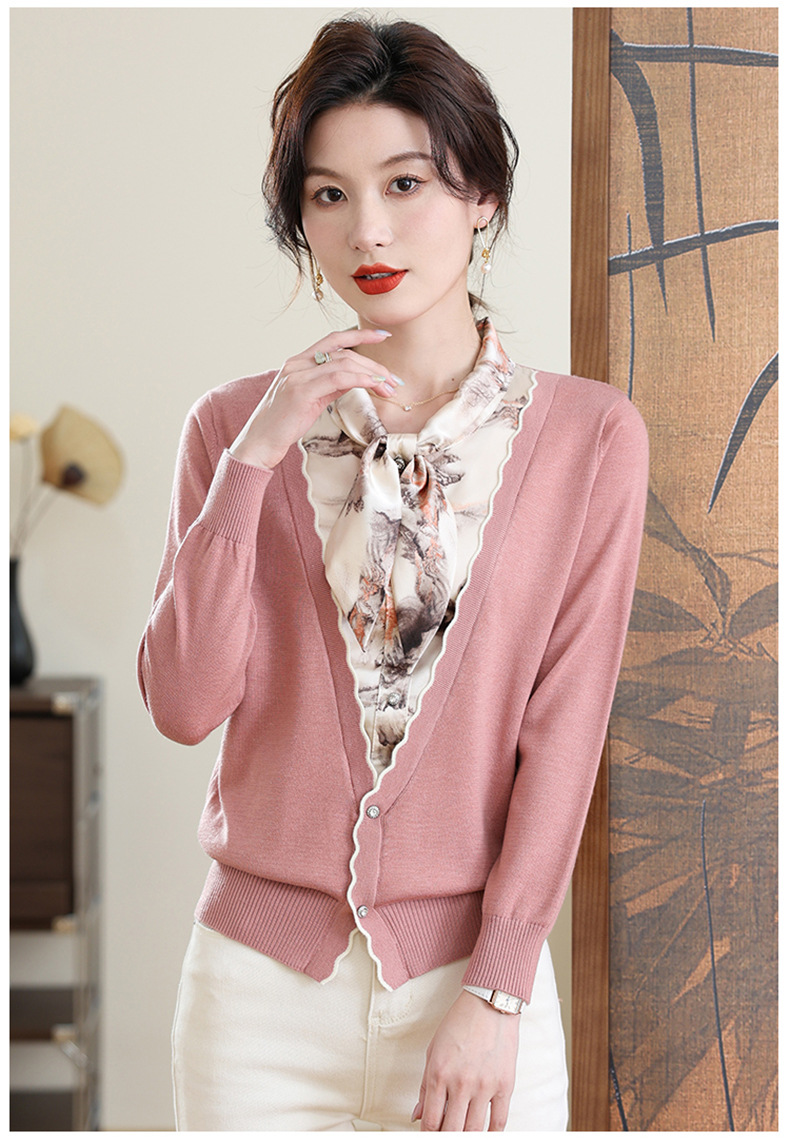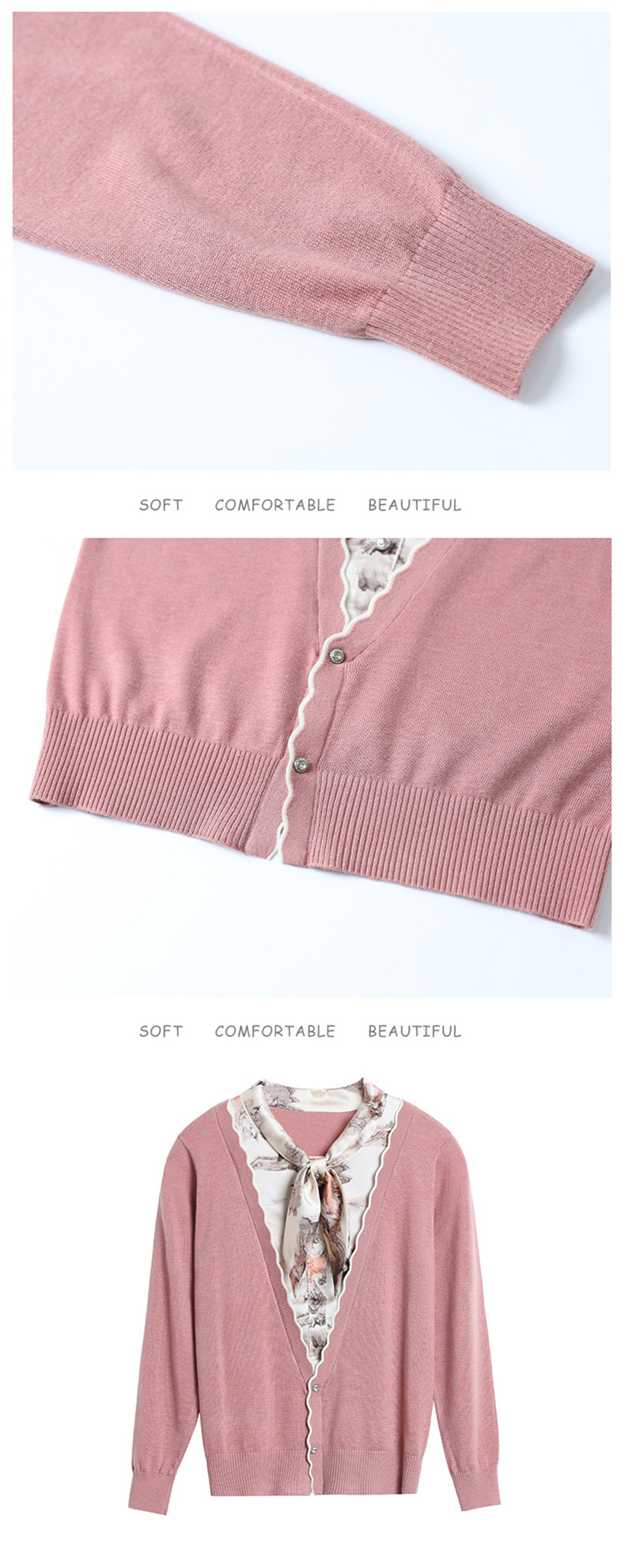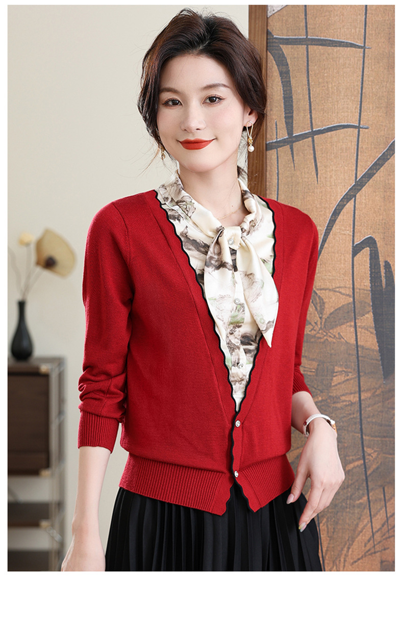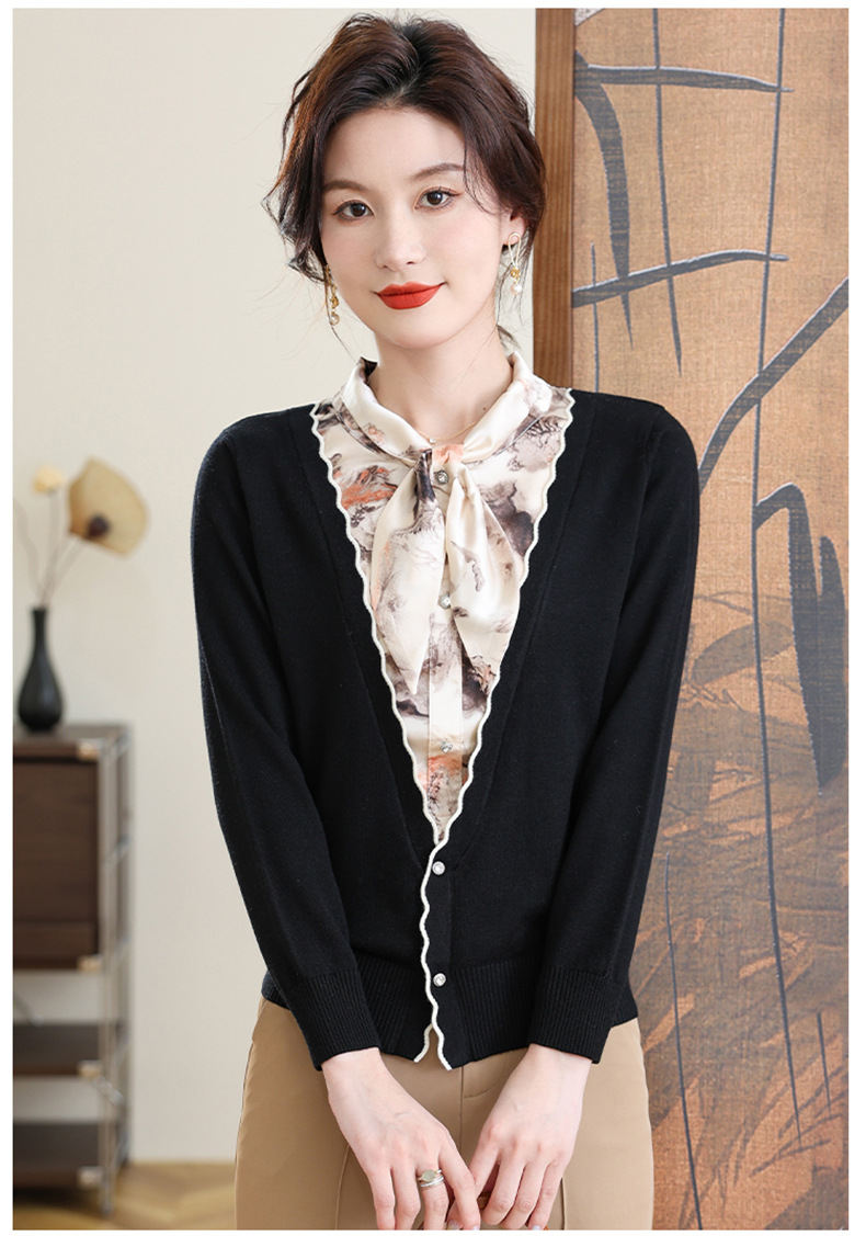 假两件中年妈妈装长袖上衣,蝴蝶结领洋气小衫CC- 101-A001