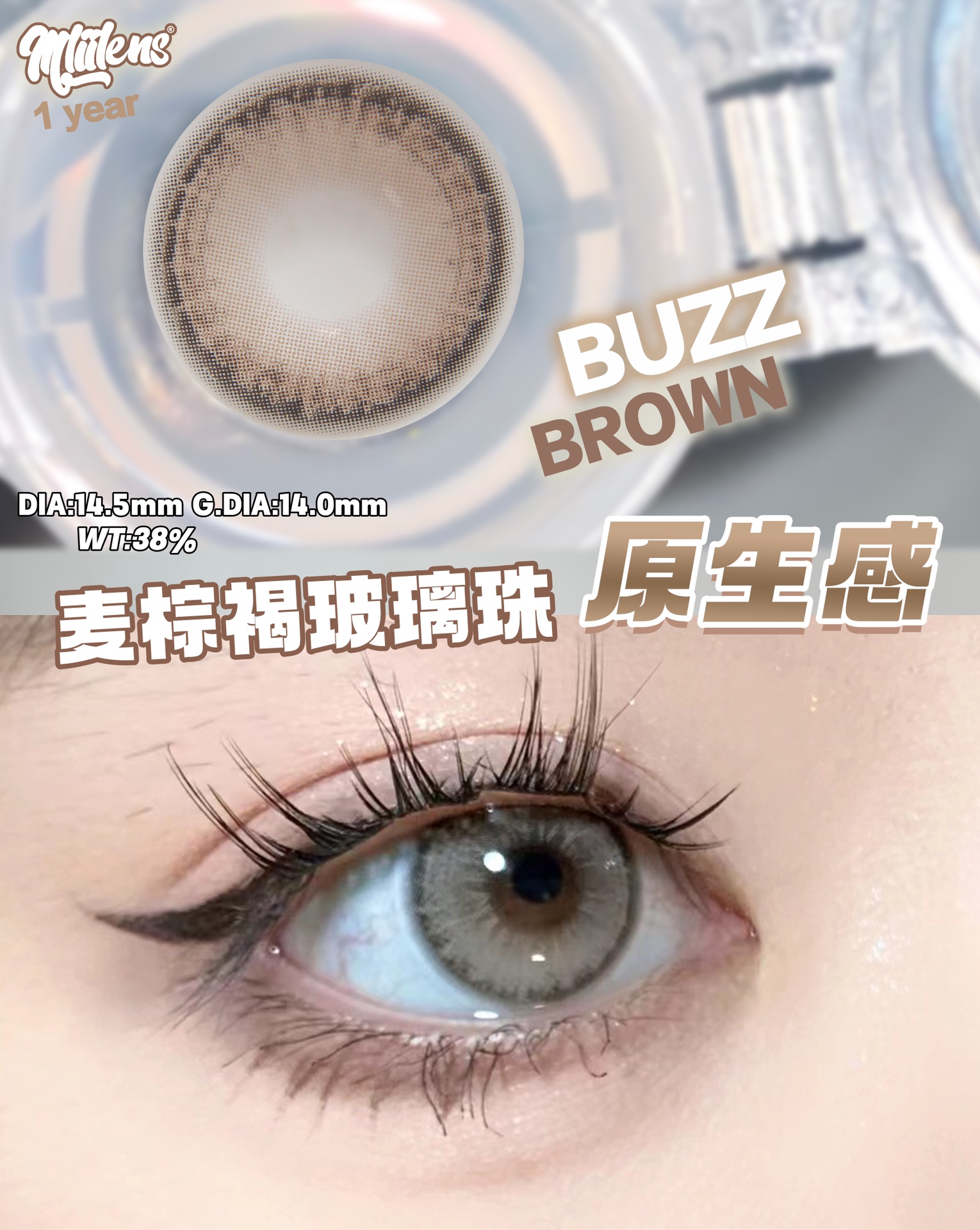 mliilens 哈基米 棕 14.5mm 含硅水凝胶 年抛