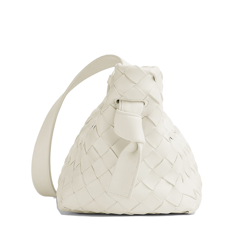 【包税】Bottega Veneta/葆蝶家 22春夏新款TIE系列 女士白色Intrecciato编织羊皮革单肩手提包690503V1FG19009