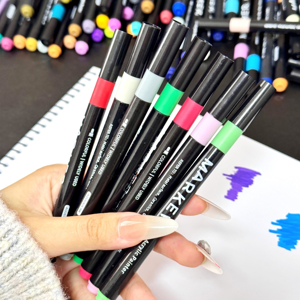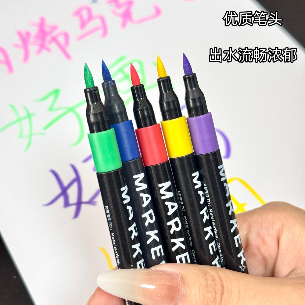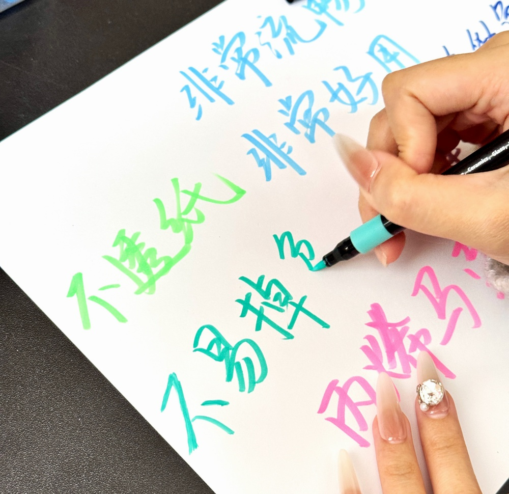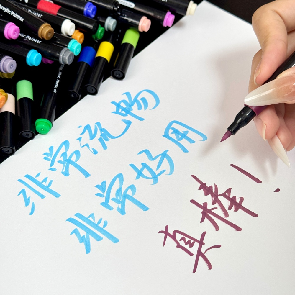 不晕色、不透纸、各种材料都能画,还可以叠色 ✅超强覆盖力,万物皆可画 ✅不透纸,来回涂抹,也不会把纸划破 ✅笔迹干的快,不褪色