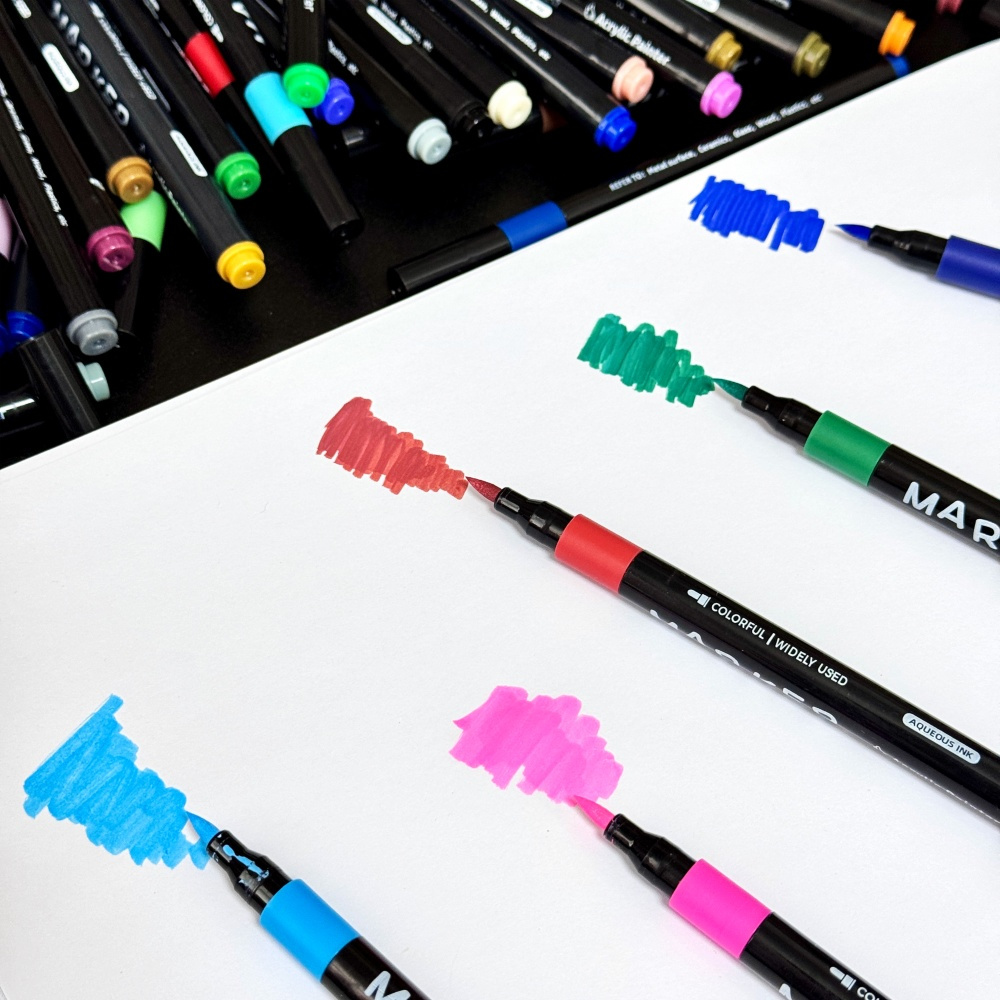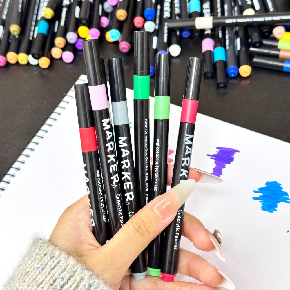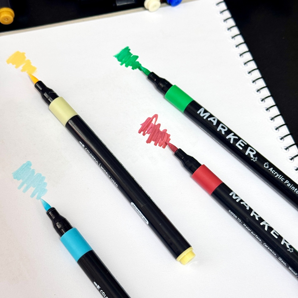 不晕色、不透纸、各种材料都能画,还可以叠色 ✅超强覆盖力,万物皆可画 ✅不透纸,来回涂抹,也不会把纸划破 ✅笔迹干的快,不褪色