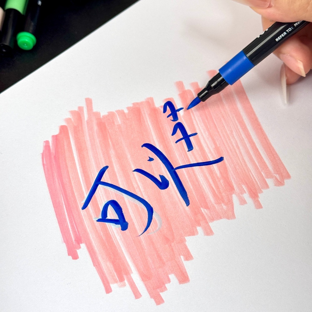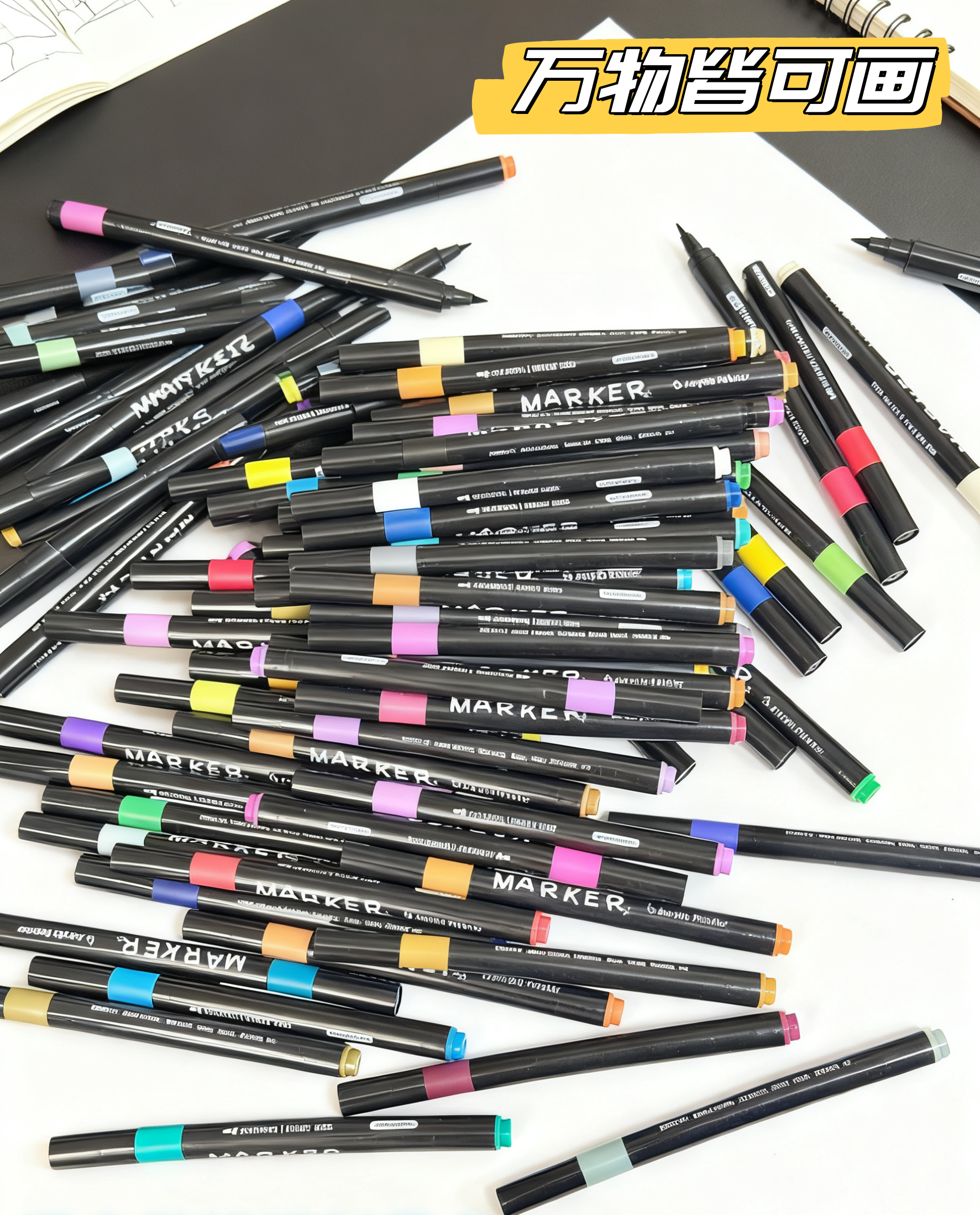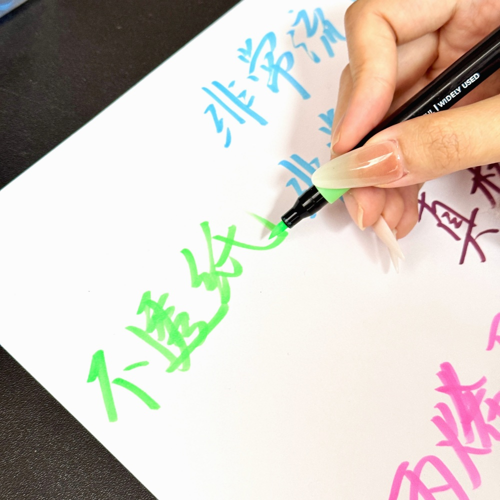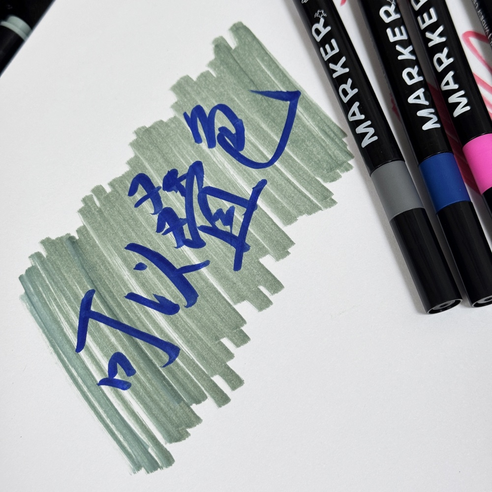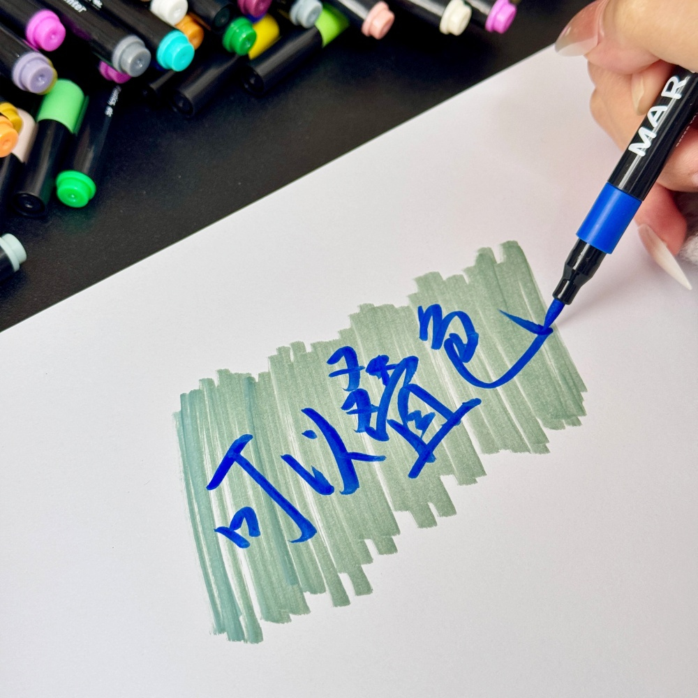 直接看实拍图,感受一下这款马克笔的质感! 💪 丝滑不透色:采用丙烯颜料为墨芯, 颜色超级饱满,遮盖力强,深色系也完全不用担心会透到背面, 作品效果立马提升一个档次!
