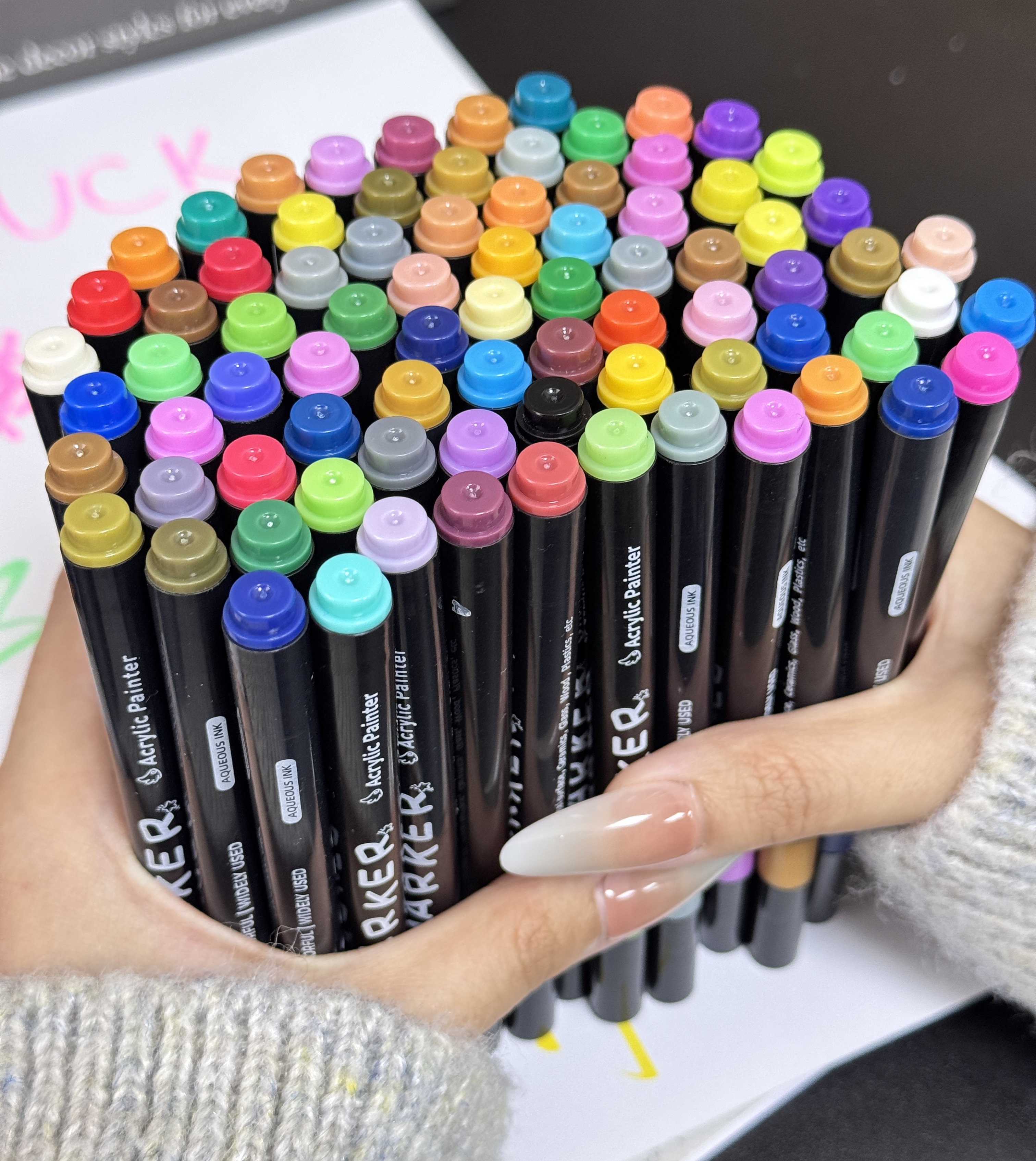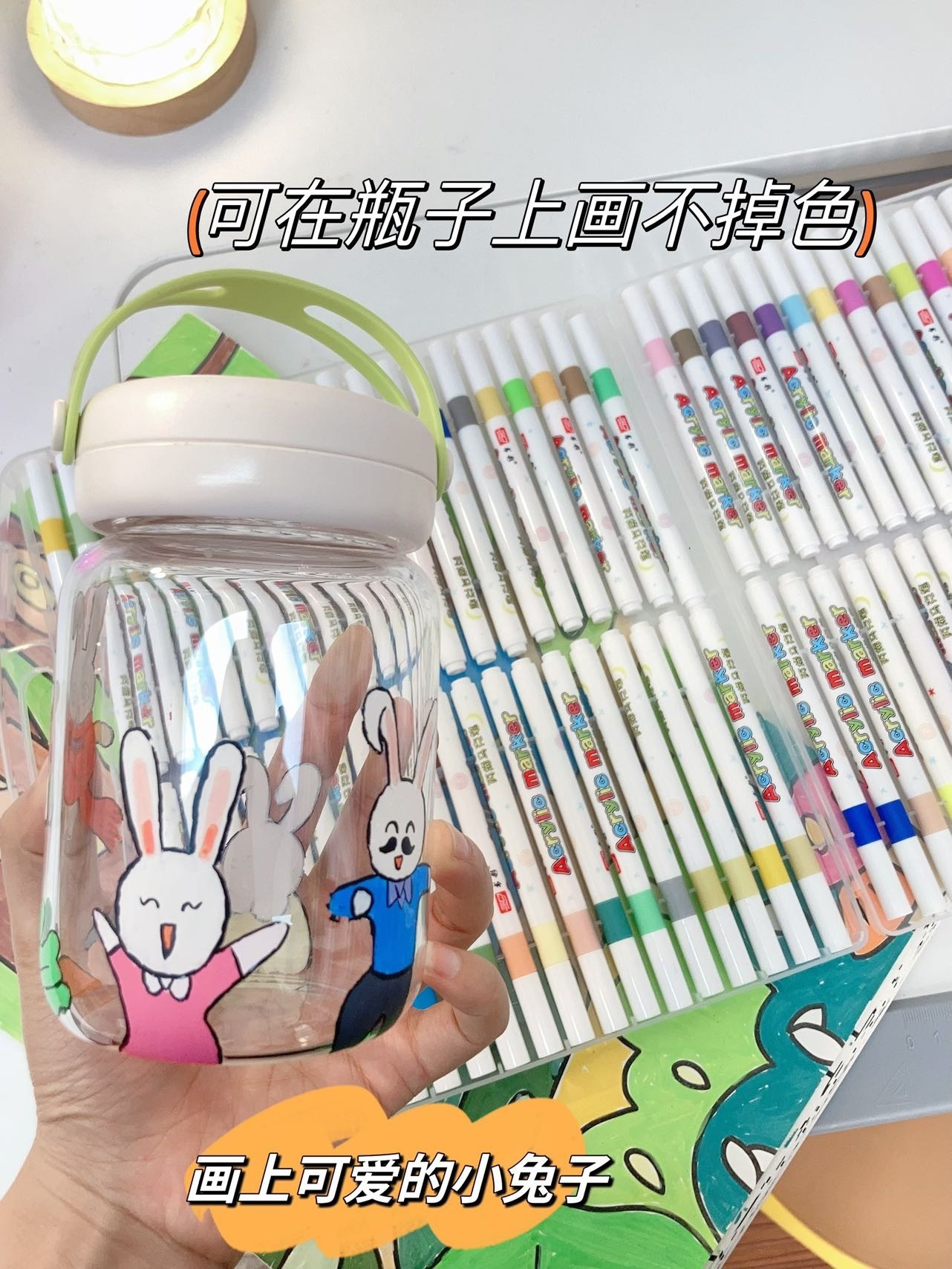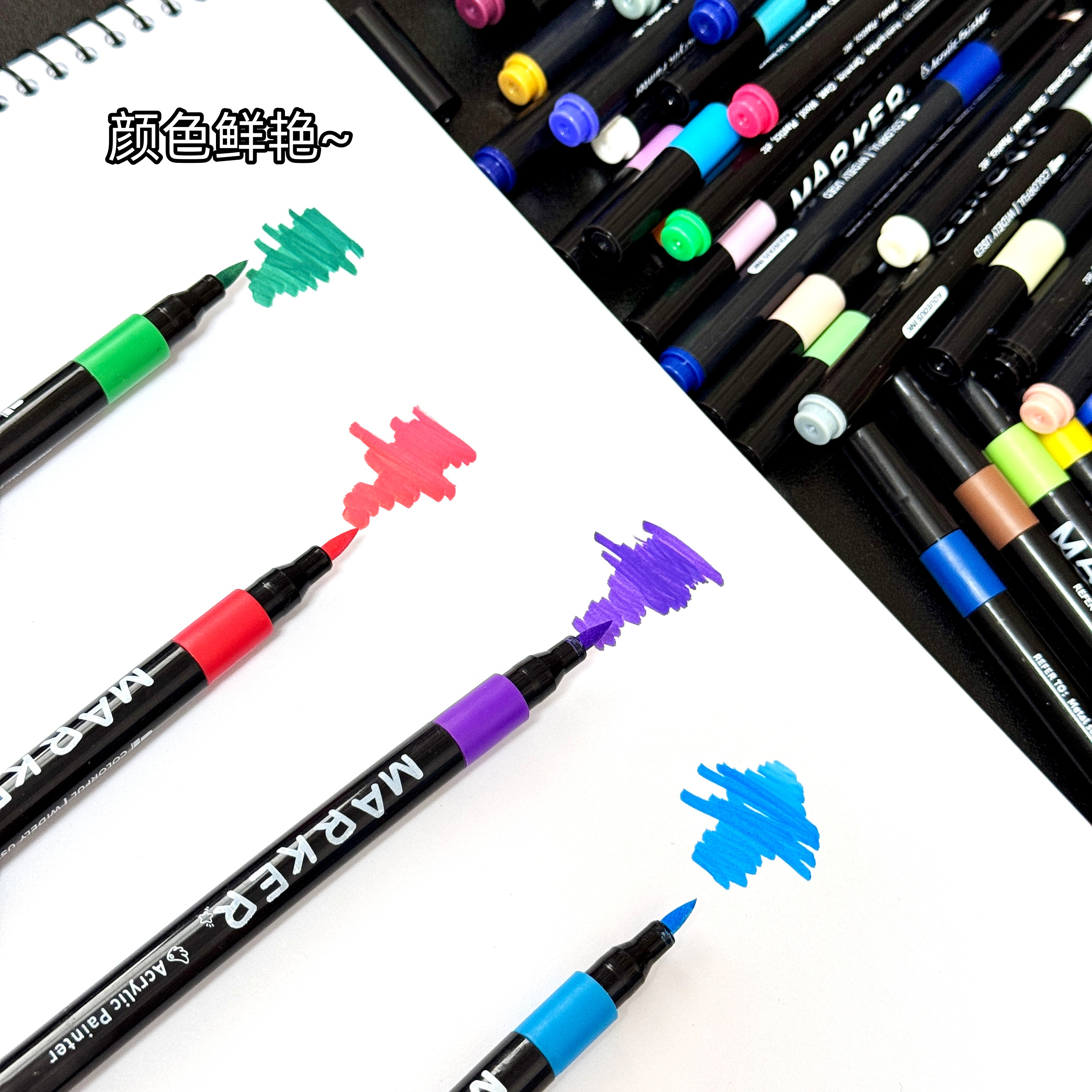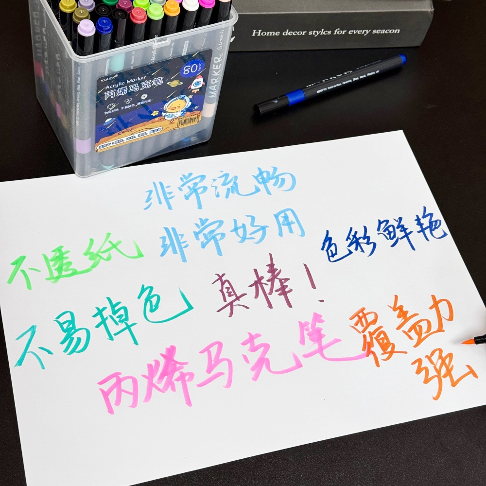直接给大家发的是桶装的包装!80色!! ❌ 传统马克笔:颜色发灰、叠涂留白、容易晕纸…… 丙烯马克笔比普通马克笔好用太多!
