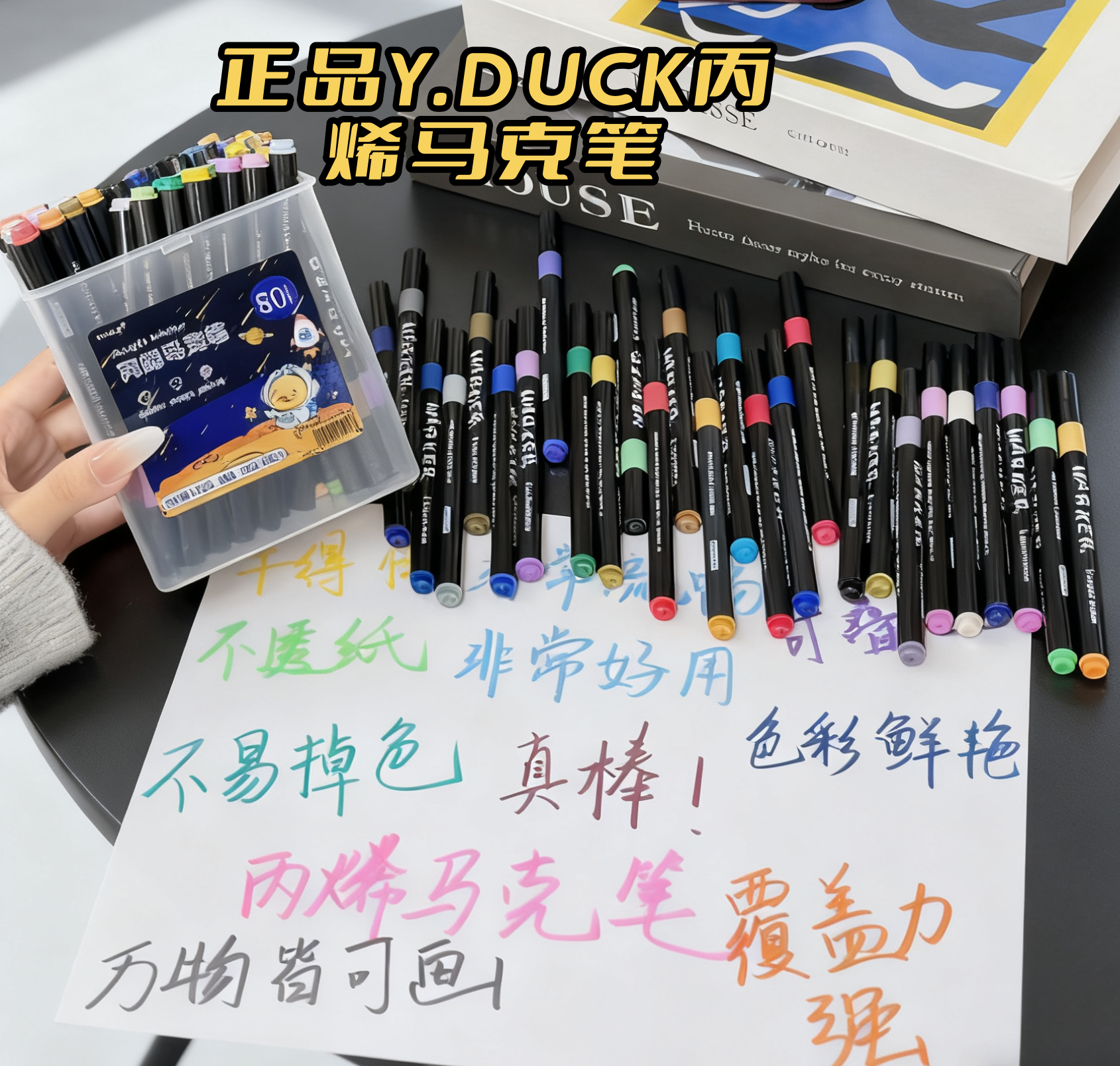 【商品名称】正品Y.DUCK丙烯马克笔 【发货时效】72h内发货 【物流说明】西藏、新疆、海南不发,北京上海+1元/单 【售后说明】1.商品非质量问题不支持退换;2.质量、缺件问题请签收后48小时内反馈,过期无法为您处理喔;3.快递送货外观有严重破损的请拒收;4.随机赠品不在售后范围内。(笔杆有点弯曲!所有做到超级便宜的价格,但是完全不影响使用!介意的勿拍)❗❗❗