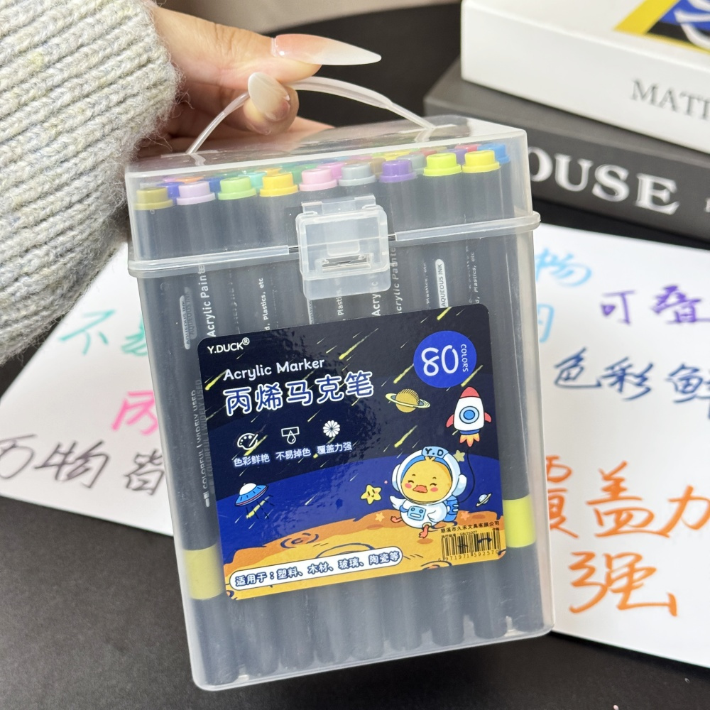 绝版清仓❗❗❗ 无论你有多少画笔,这套Y.DUCK丙烯马克笔都值得直接带回家!给孩子试一试,绝对会给你大大的惊喜~ 特别特别特别好用!🌟 像彩笔这类文具,孩子每个学期都qc少不了要用。 囤上这么一盒,色彩齐全、出水顺畅, 真的够用大半年!再也不用担心孩子临时缺笔用,性价比超高💯 (笔杆有点弯曲!所有做到超级便宜的价格,但是完全不影响使用!介意的勿拍)!