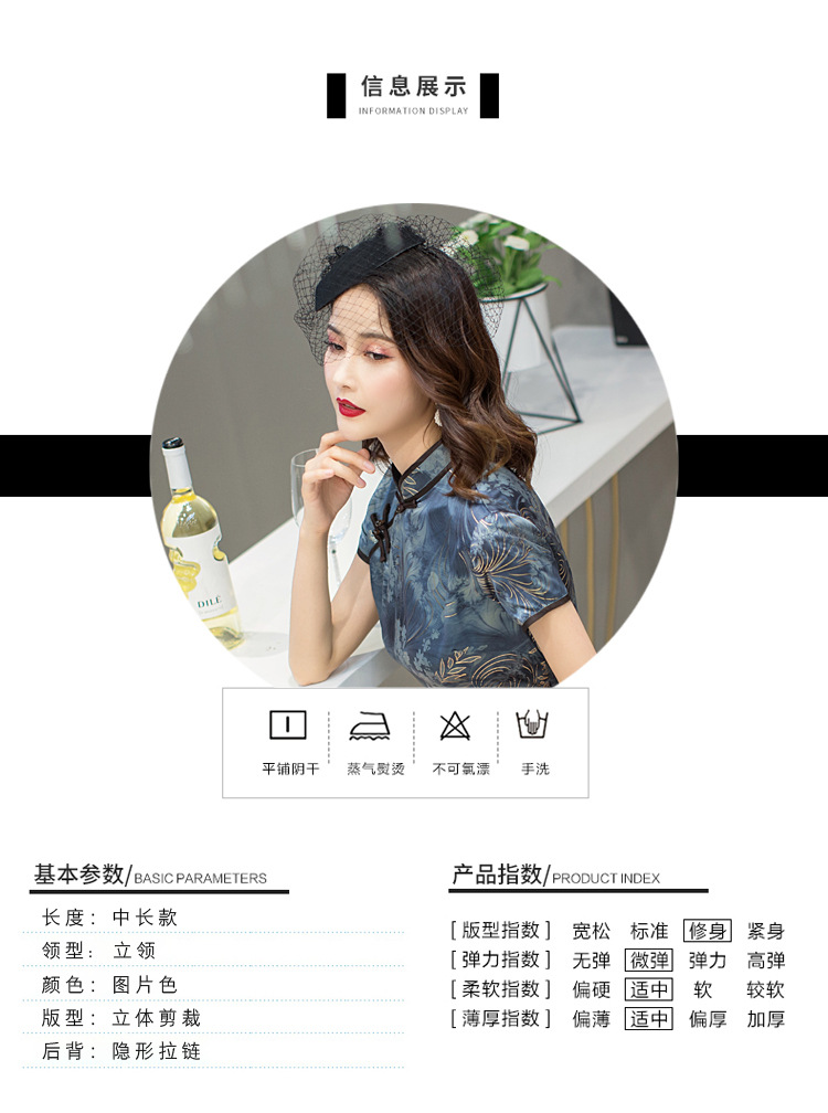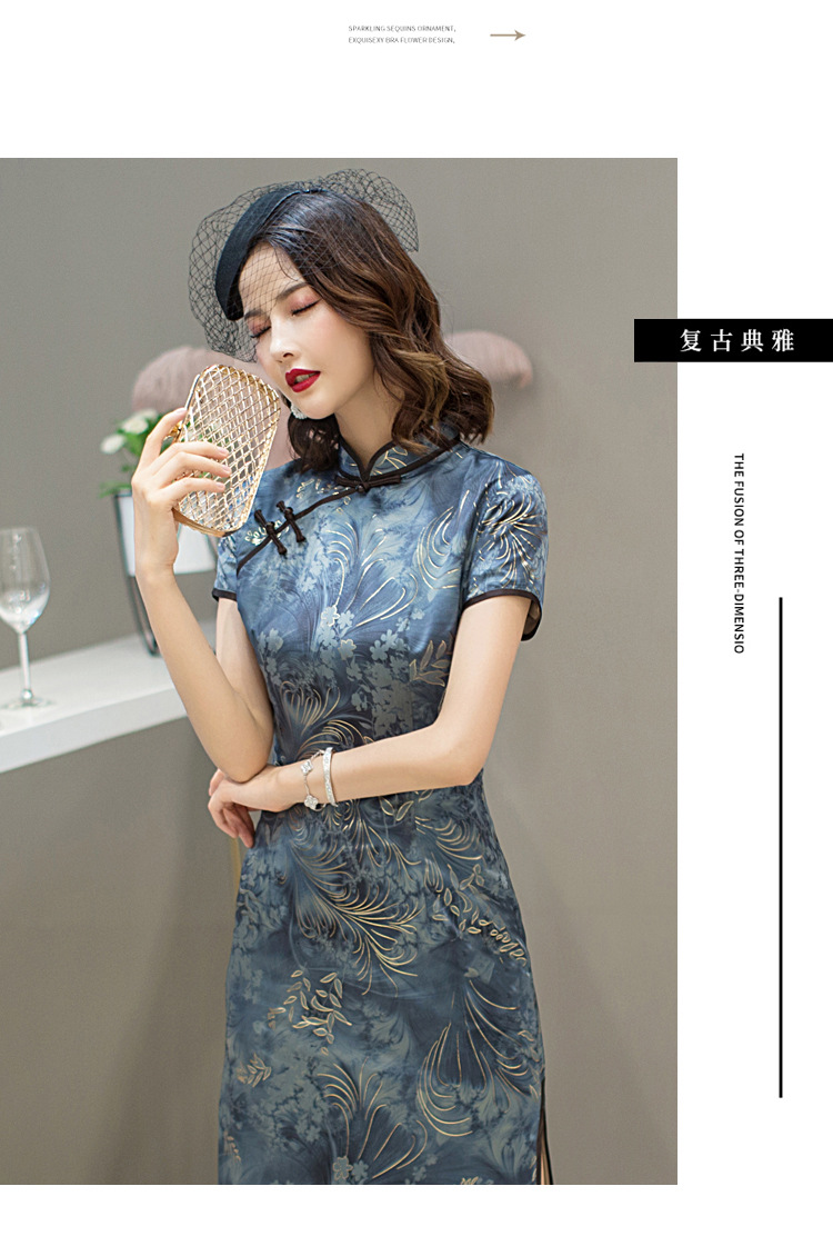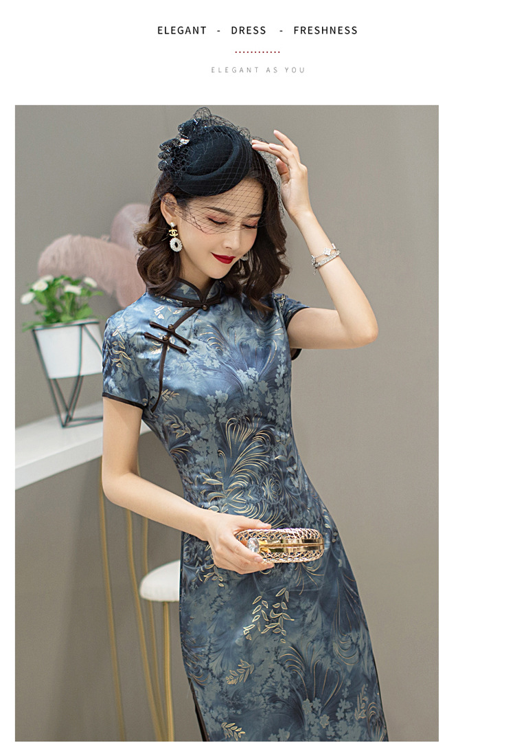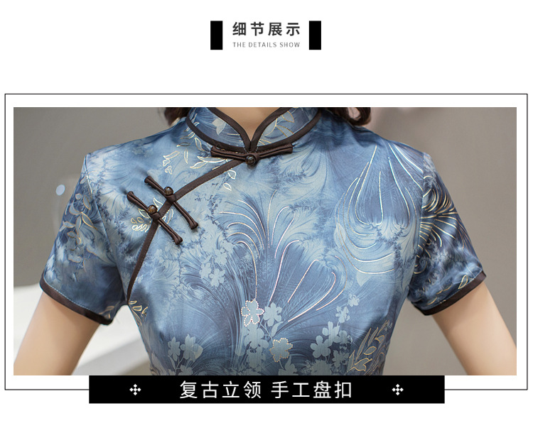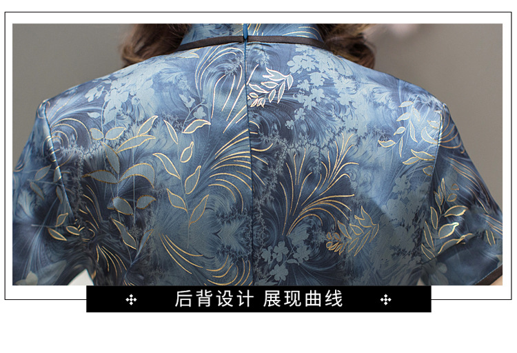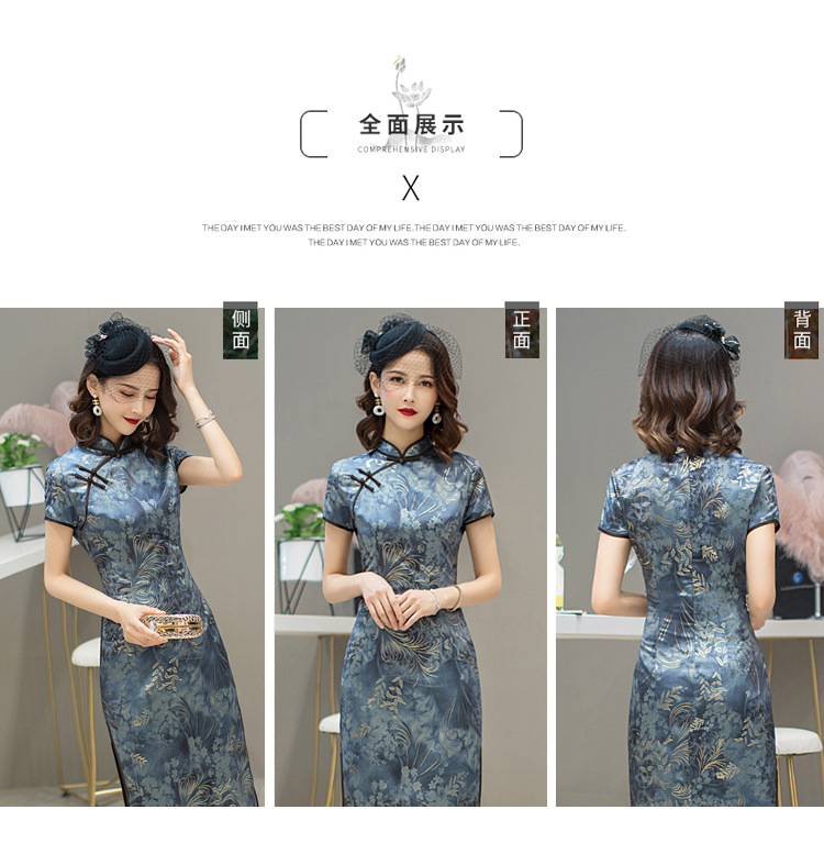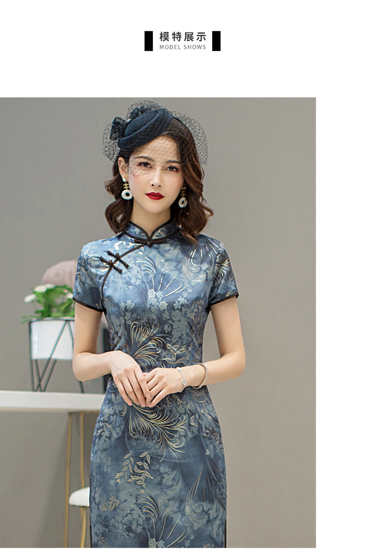 典雅古韵,新款复古日常改良中长款大码烫金双层旗袍 XL9173