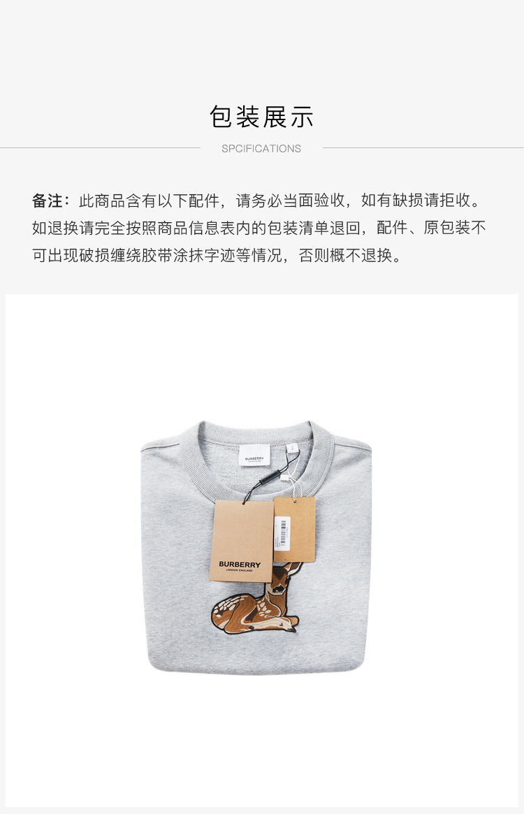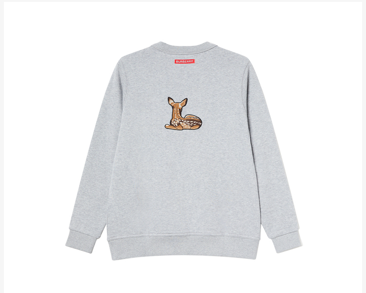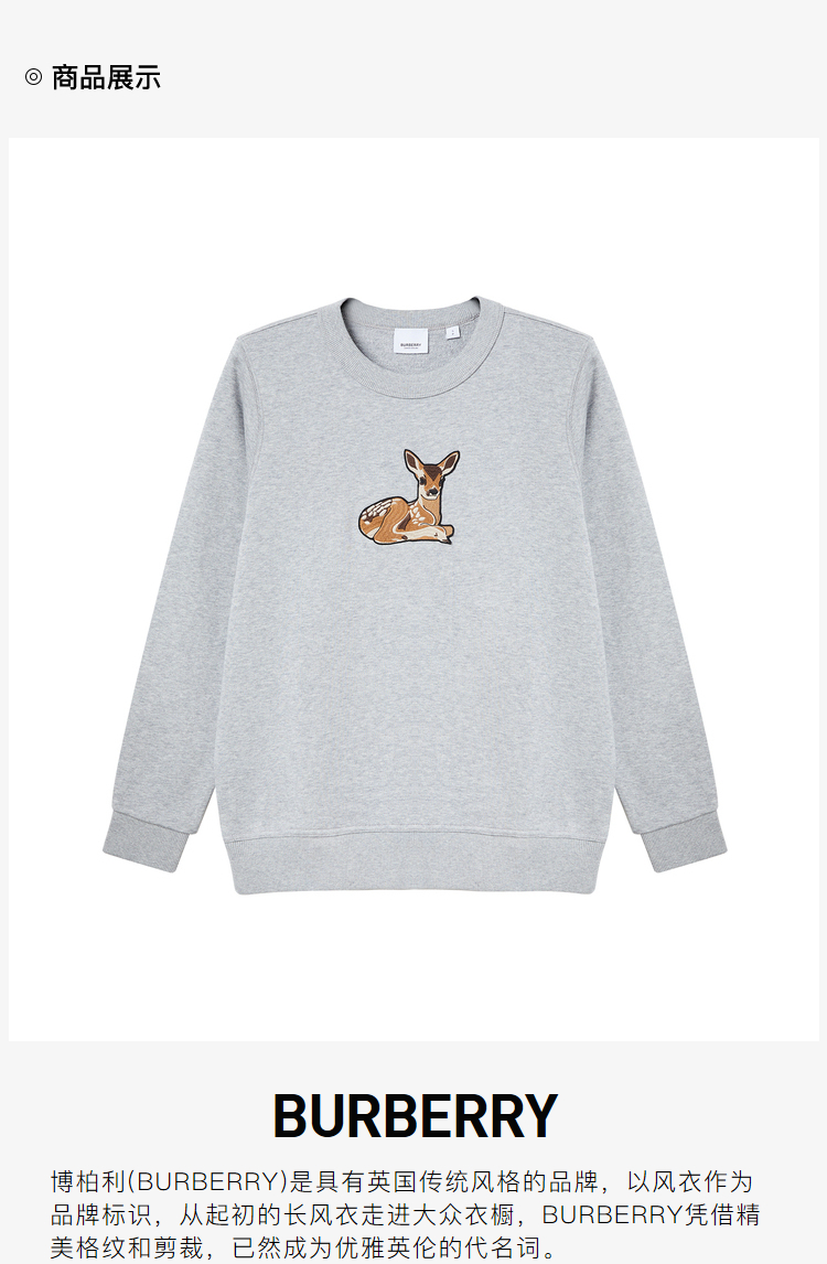 BURBERRY 巴宝莉 女士棉质小鹿图案刺绣宽松圆领套头卫衣 8032117