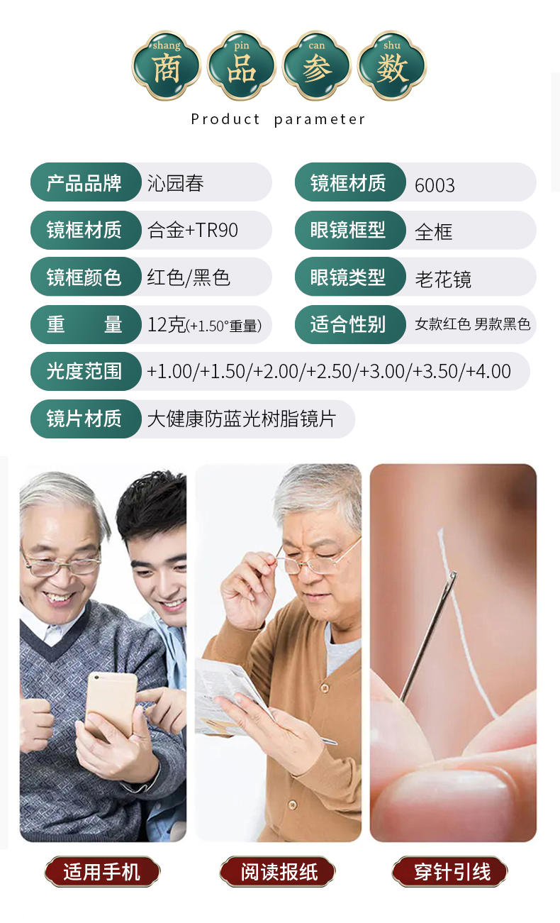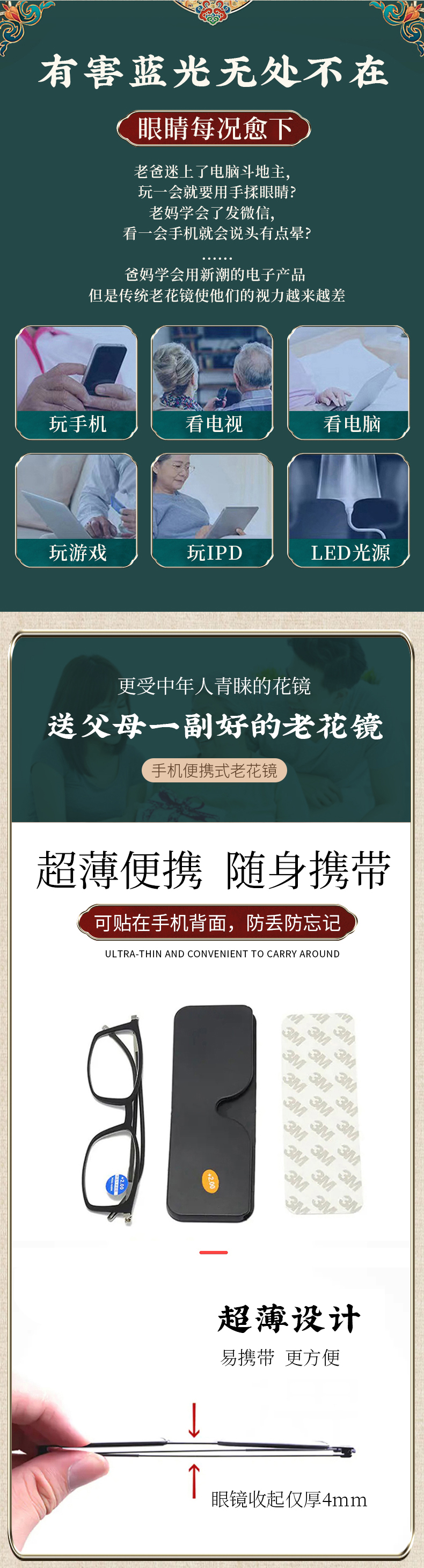沁园春防蓝光老花镜 可直接贴手机壳上 防蓝光护眼看手机电脑专用!时尚舒适 阻隔蓝光 佩戴舒适 随身携带防丢防忘记