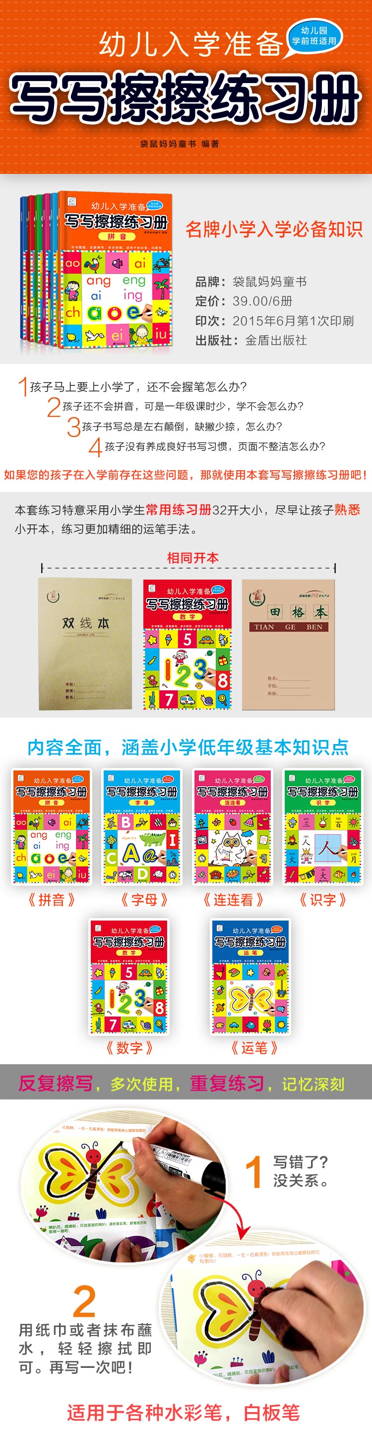 【幼小衔接】幼儿入学准备写写擦擦练习册(全6册)