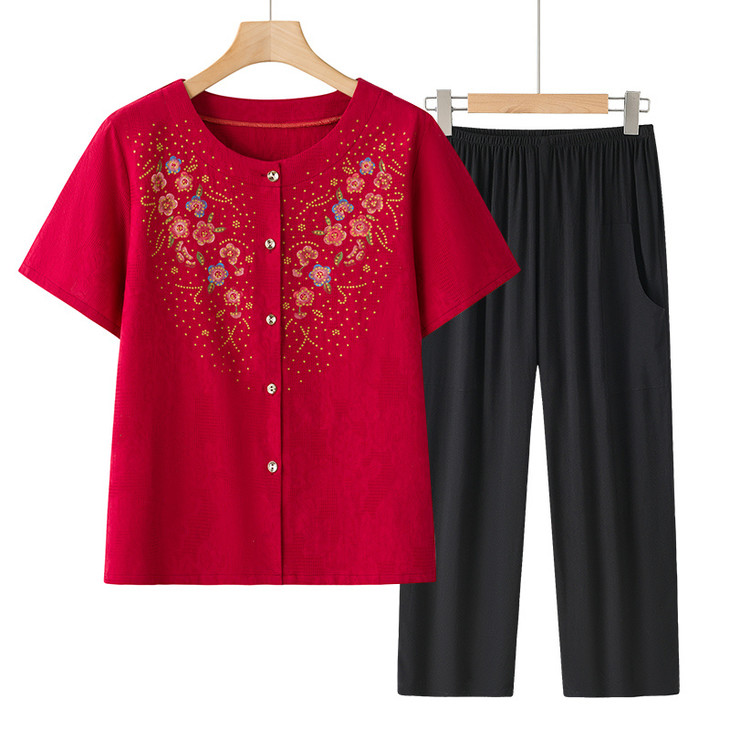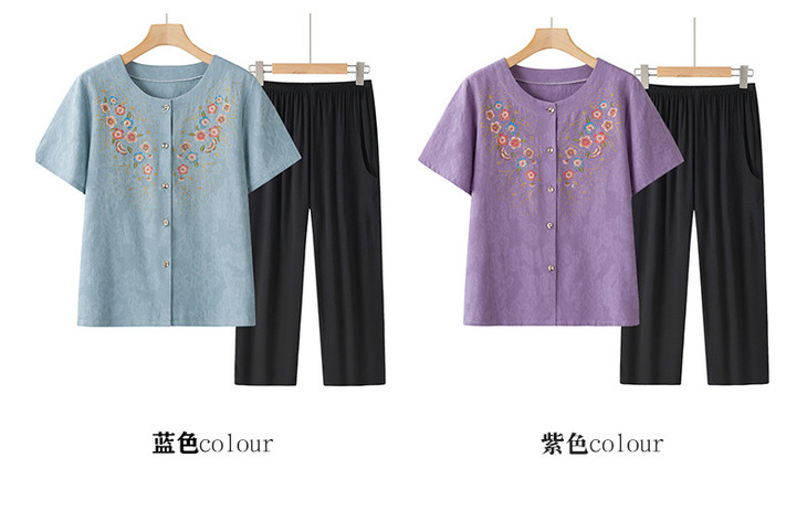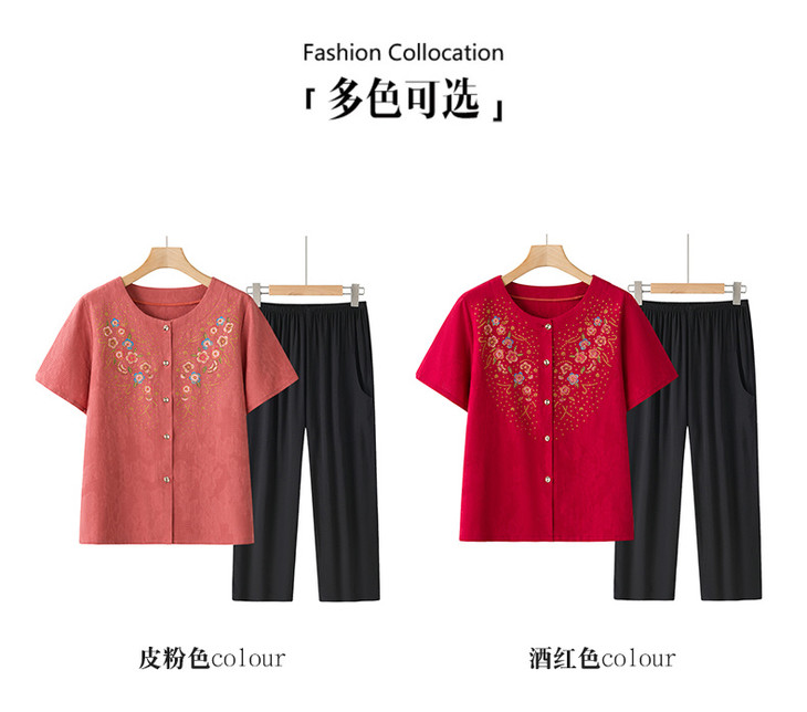 ✅ 中老年妈妈夏季刚需!精美印花短袖套装闭眼入🔹 【颜值在线】国风印花精致大气,妈妈穿了年轻10岁 🔹 【舒适满分】透气面料,宽松不勒身,夏天穿清爽凉快 🔹 【省心搭配】衬衫+裤子一套搞定,不用费心搭配,出门直接穿 🔹 【细节贴心】圆领开衫穿脱方便,纽扣设计贴合身形,长裤遮腿型 不管是日常居家还是外出穿搭,都是妈妈的夏日舒适之选!