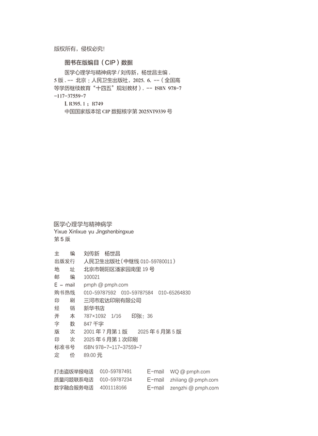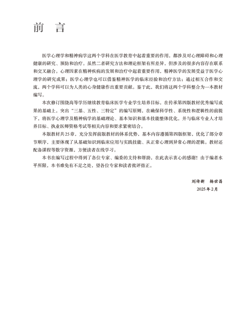 医学心理学与精神病学 第5五版 十四五规划新形态教材全国高等学校教材 刘传新杨世昌 供临床高等学历继续教育等使用人民卫生出版社