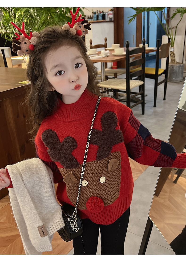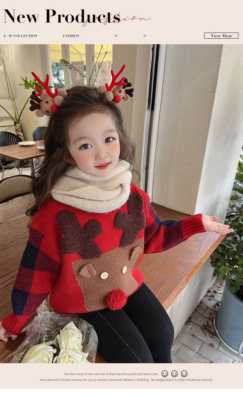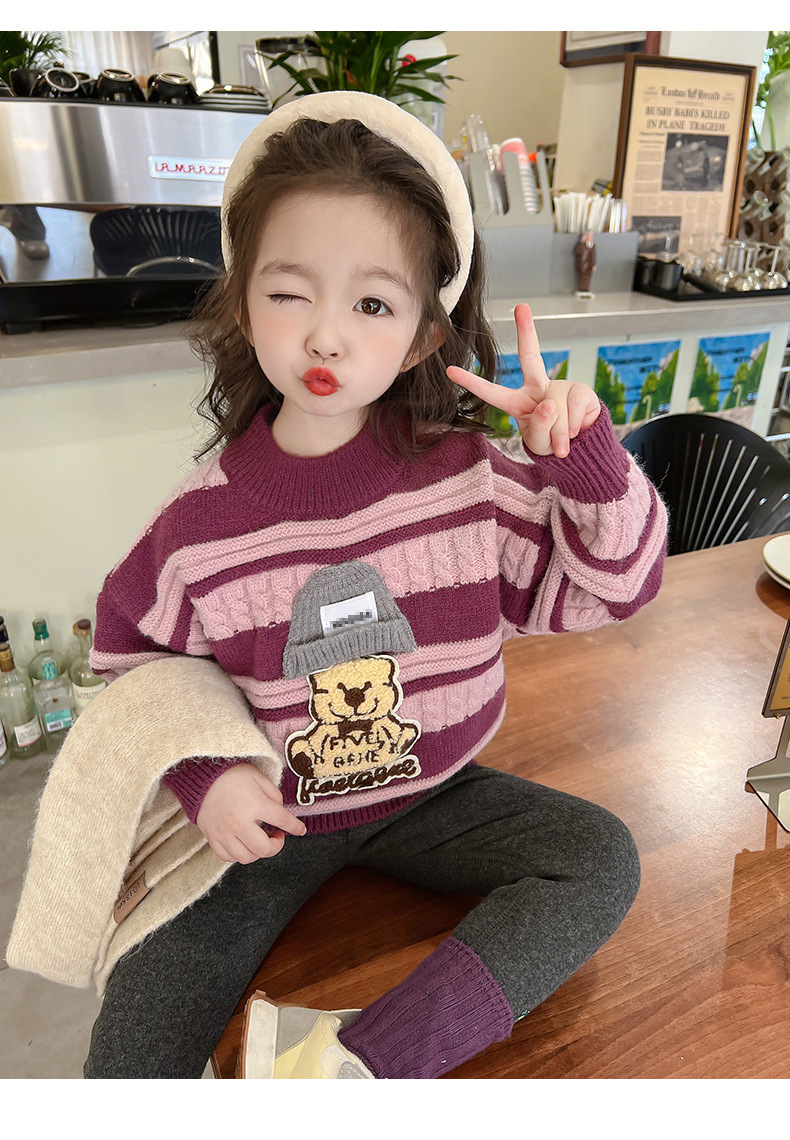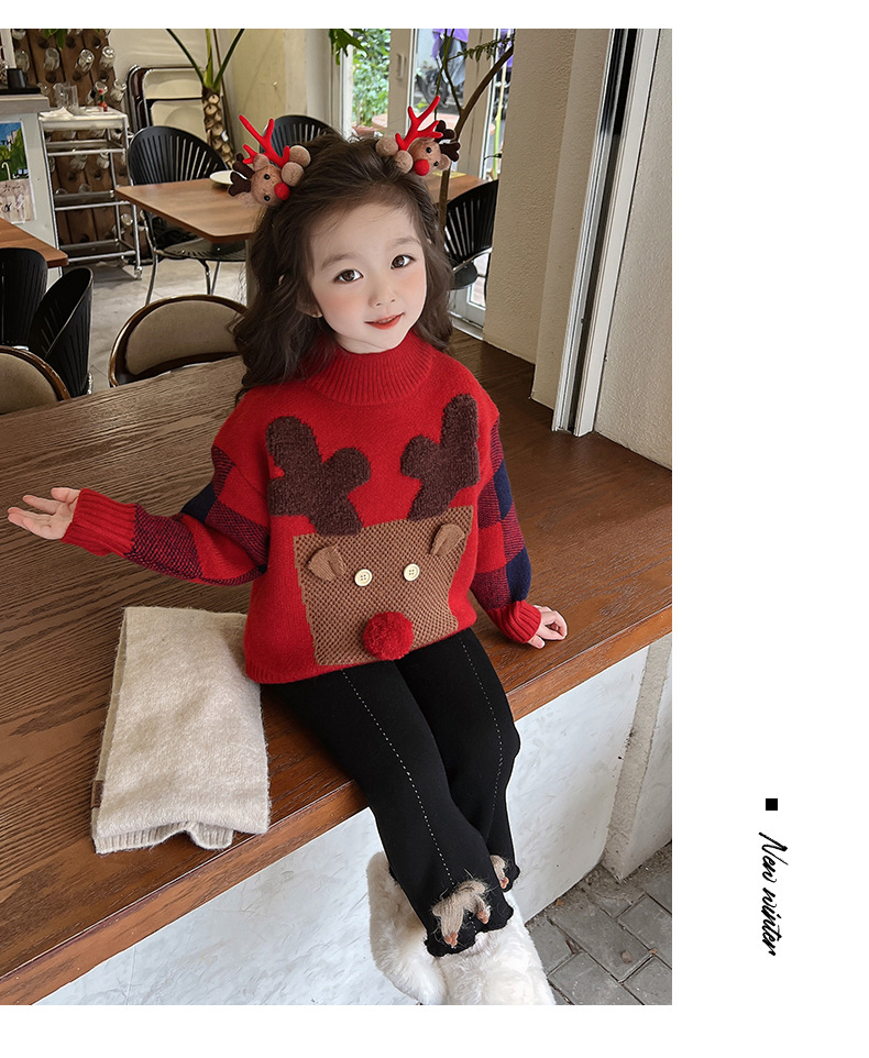 女童洋气秋冬装加厚毛衣 女童加绒保暖毛线衣