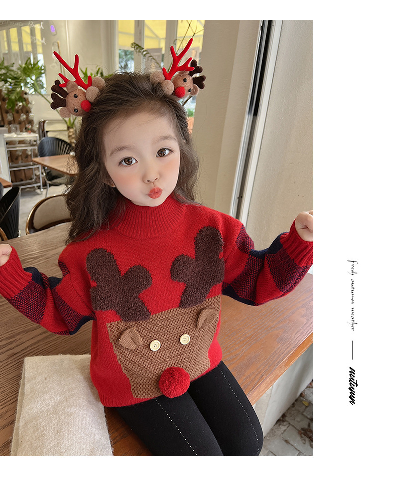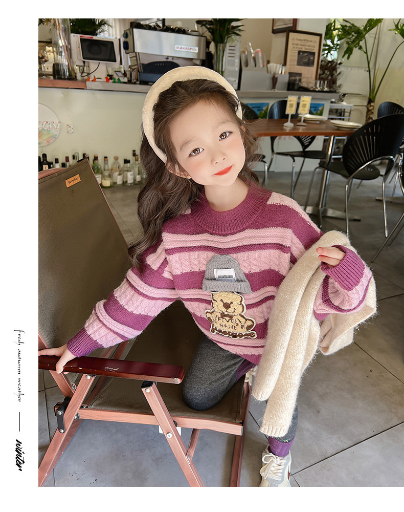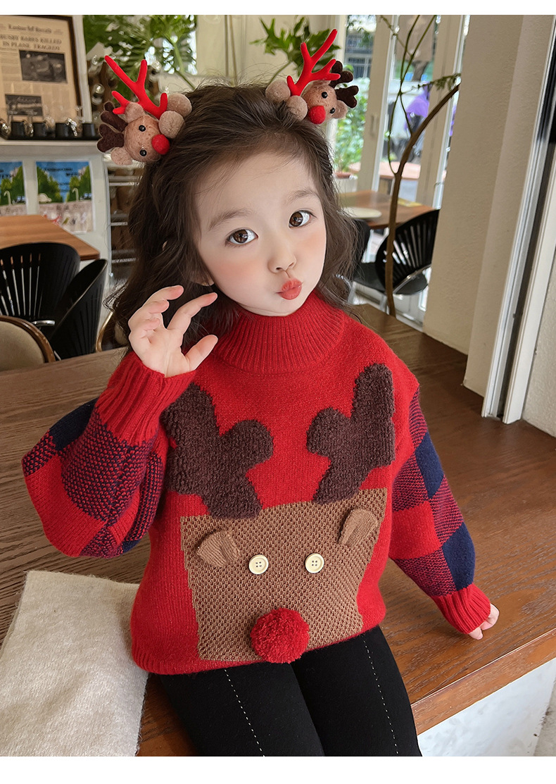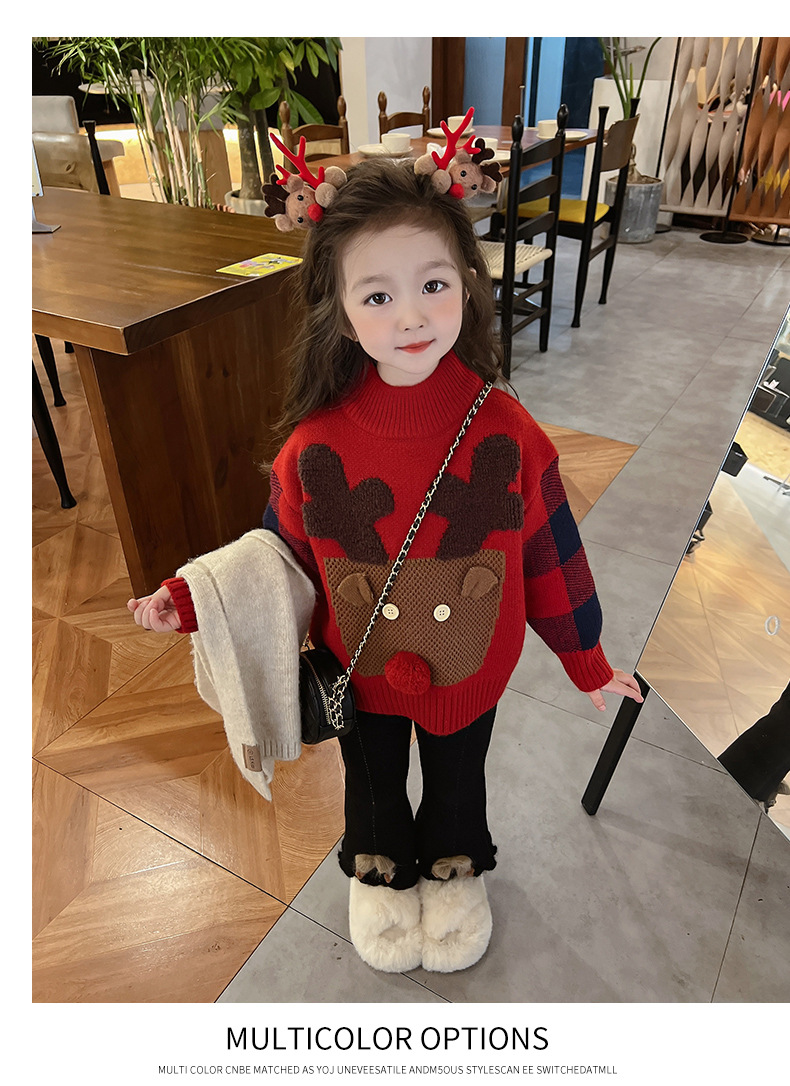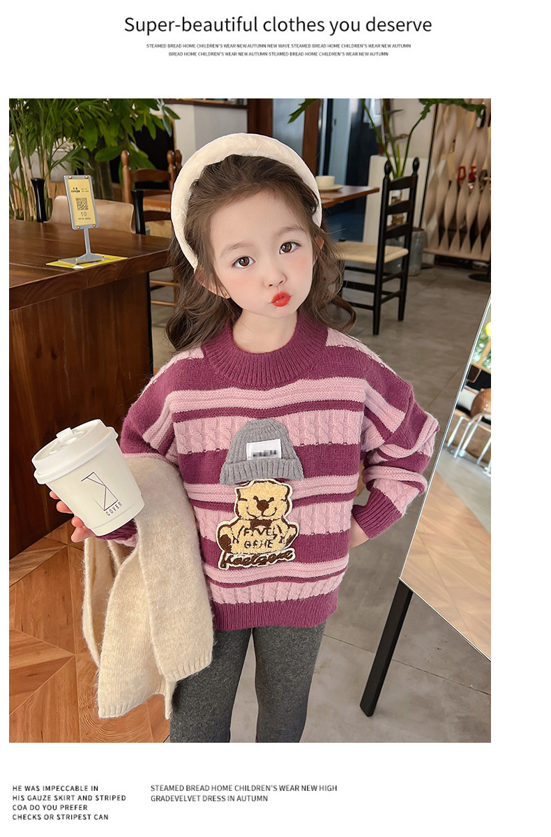 女童洋气秋冬装加厚毛衣 女童加绒保暖毛线衣