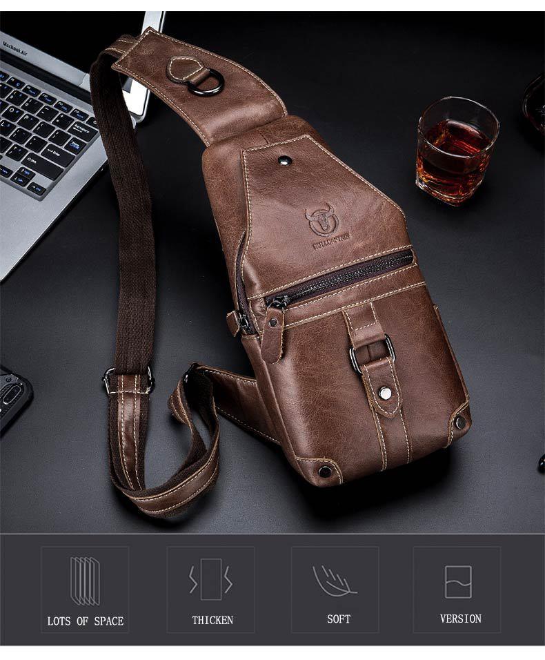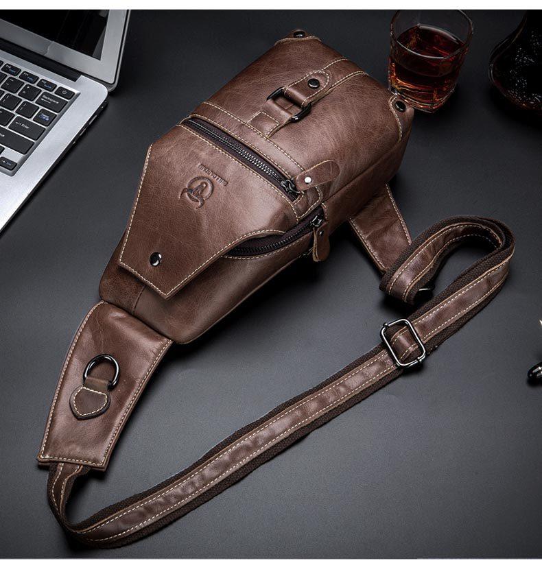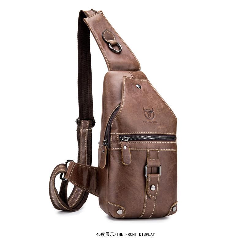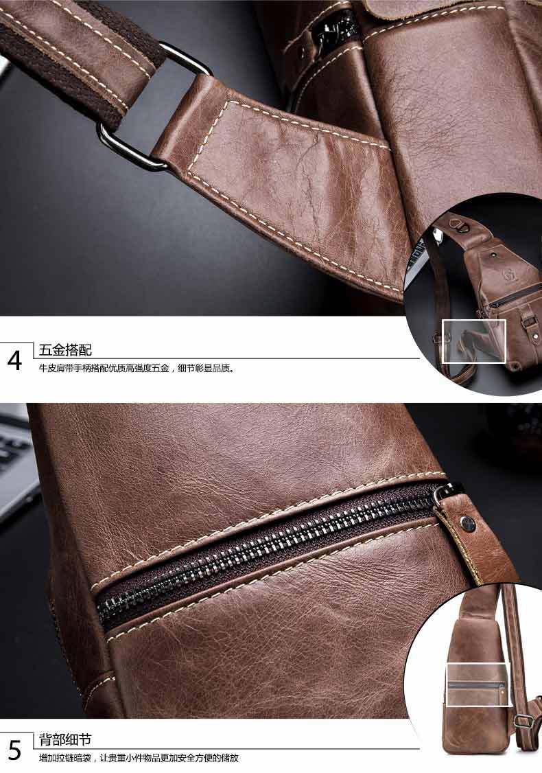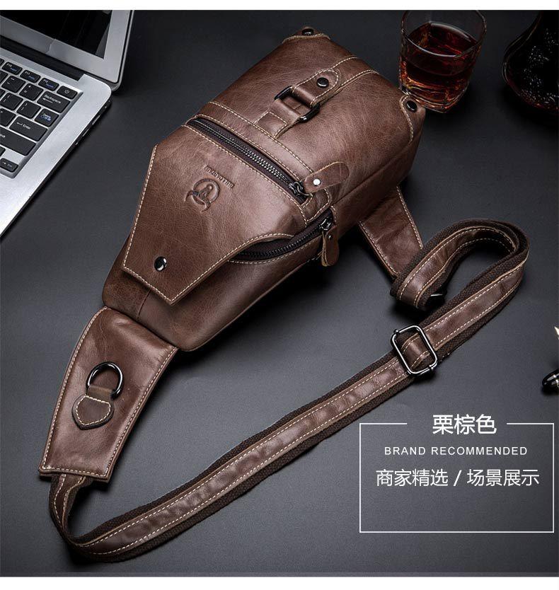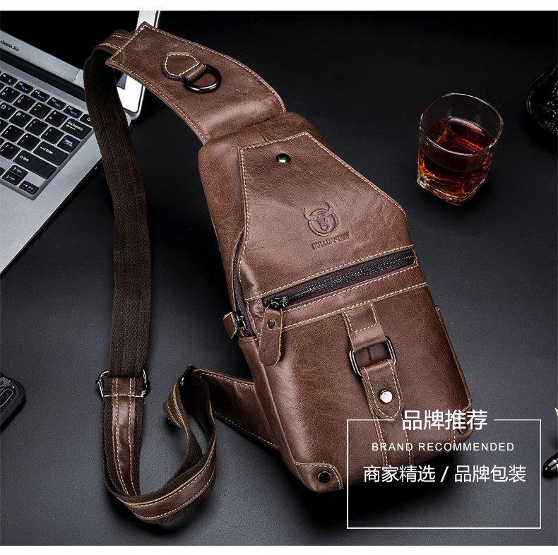 牛船长皮具真皮男单肩斜挎胸包复古头层牛皮大容量软皮小包胸前包
