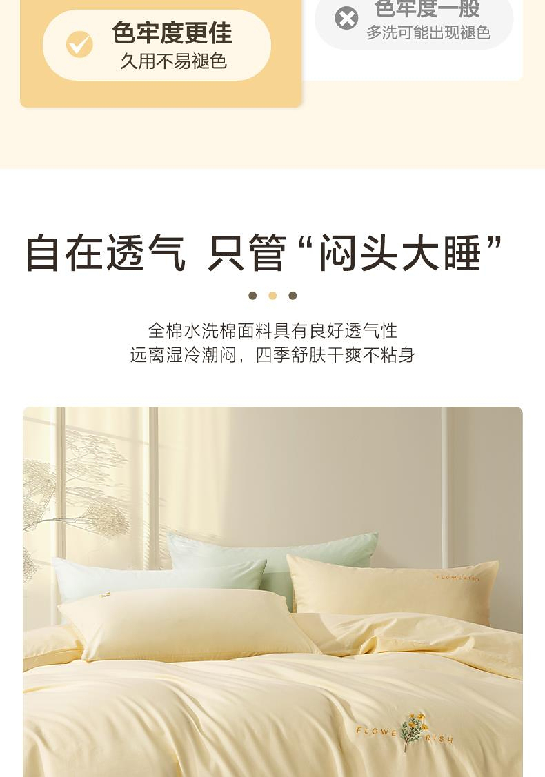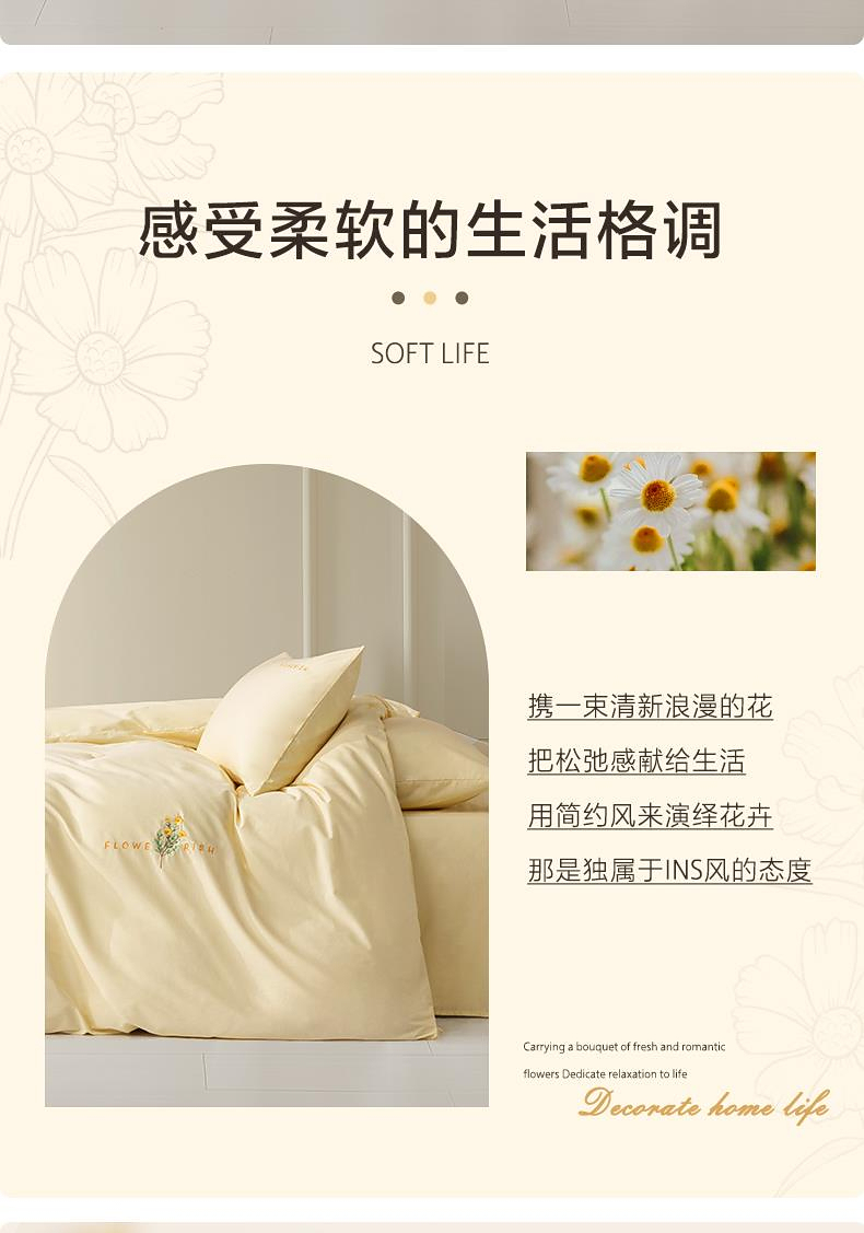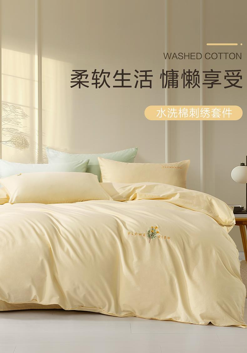 水星 百丽丝家纺套件四件套套件水洗棉刺绣全棉 yb1230001