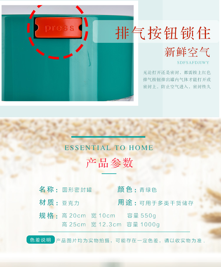 亲亲密封罐保鲜防潮真空透明咖啡豆茶叶干果按压式食品储物罐