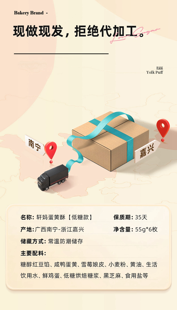 轩妈 蛋黄酥(低糖版) (55g*6枚)*2盒 (包邮直发)