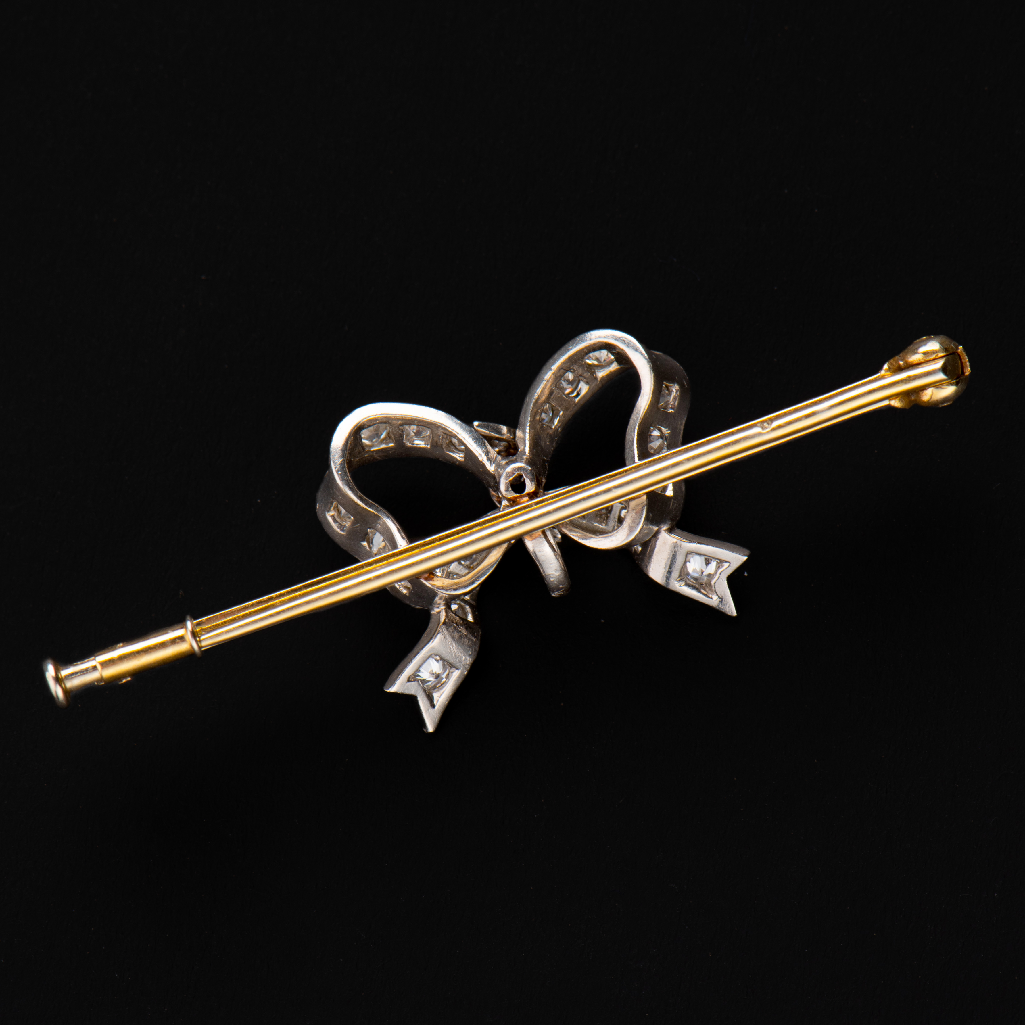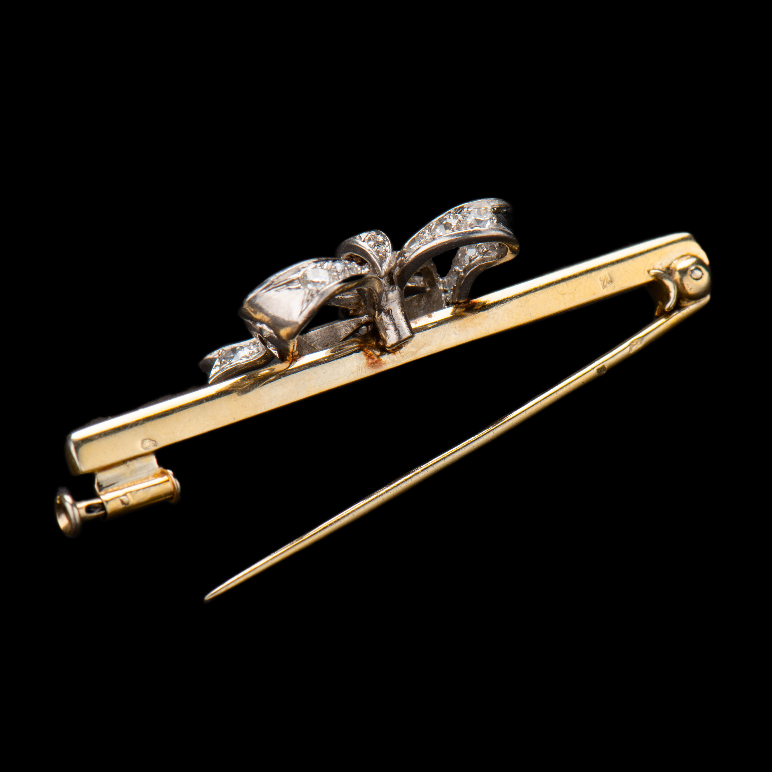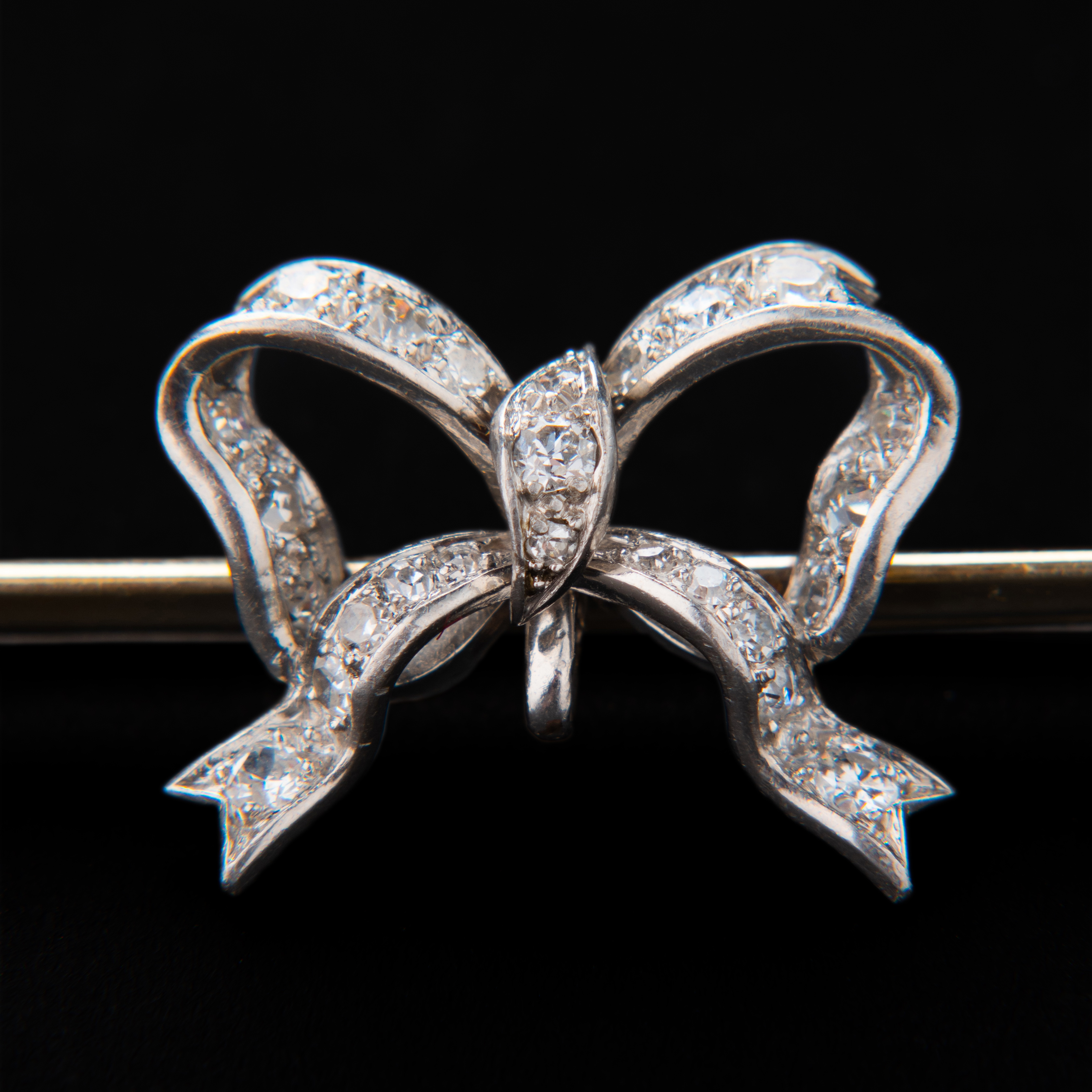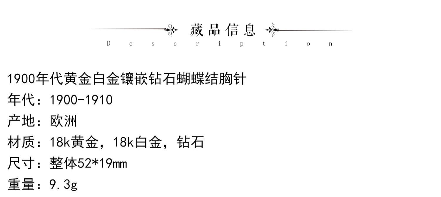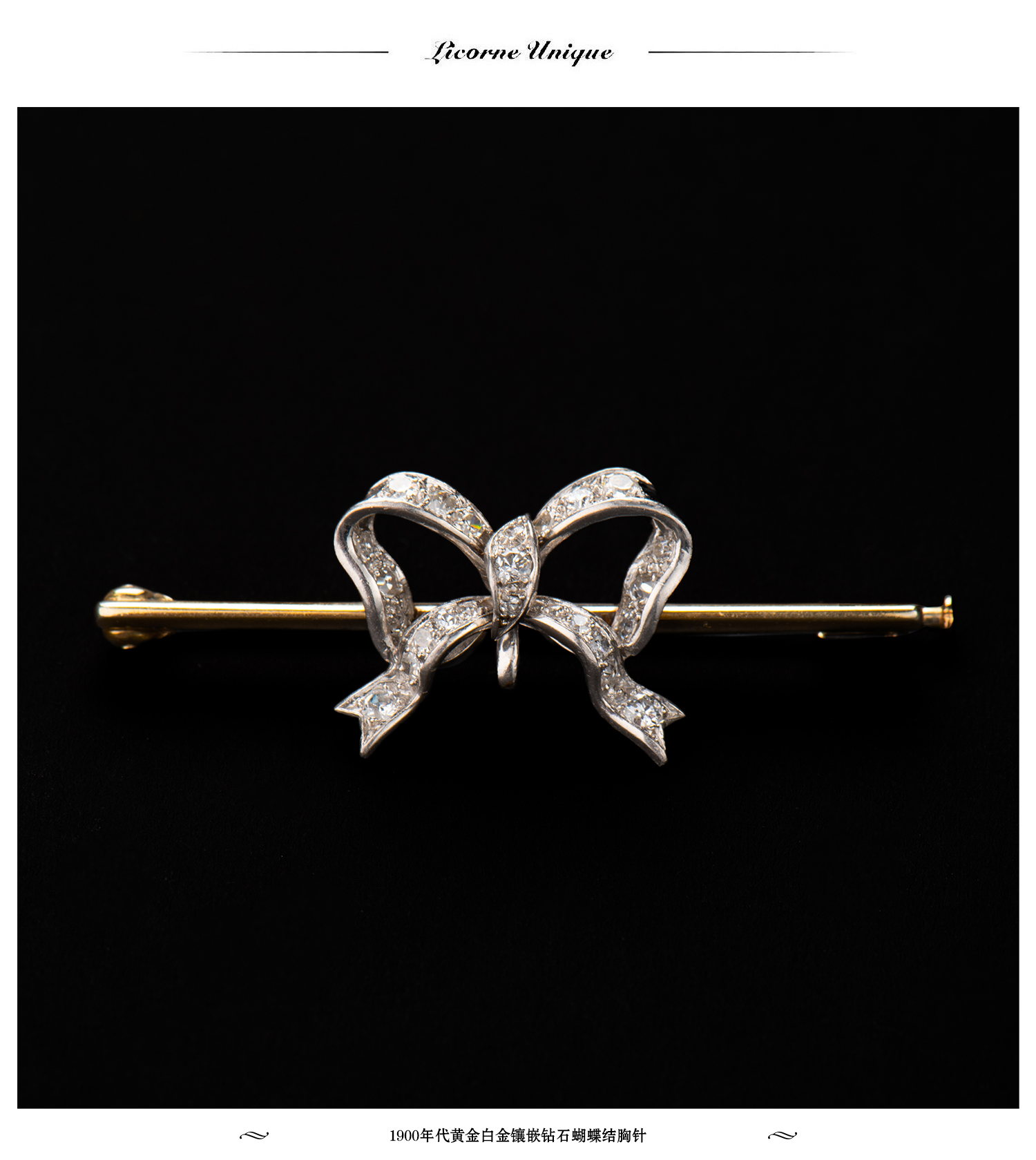 独角鹿西洋古董珠宝首饰1900年代黄金白金镶嵌钻石蝴蝶结胸针
