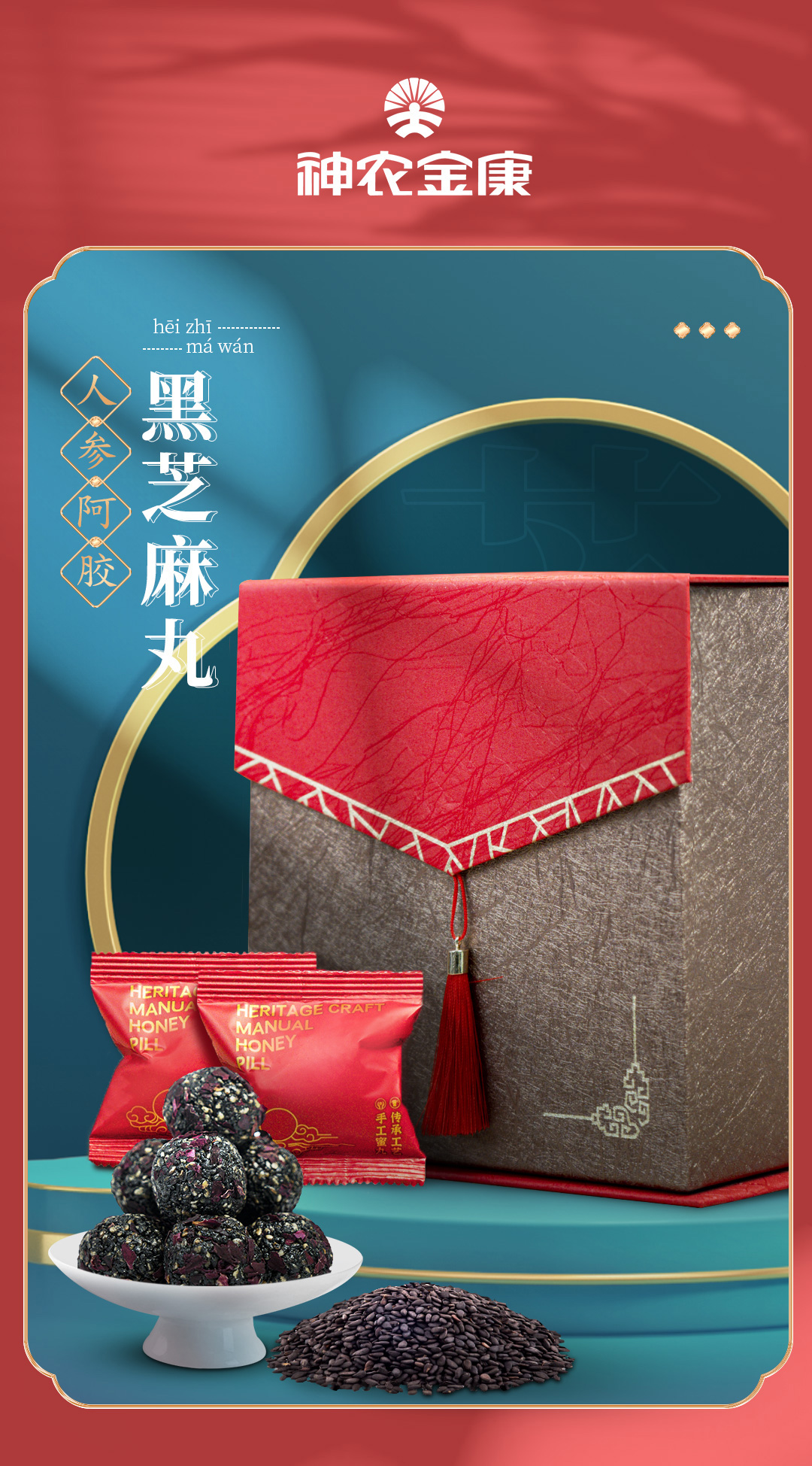 神农金康 礼盒人参阿胶黑芝麻丸 原生态真滋补 呵护家人健康