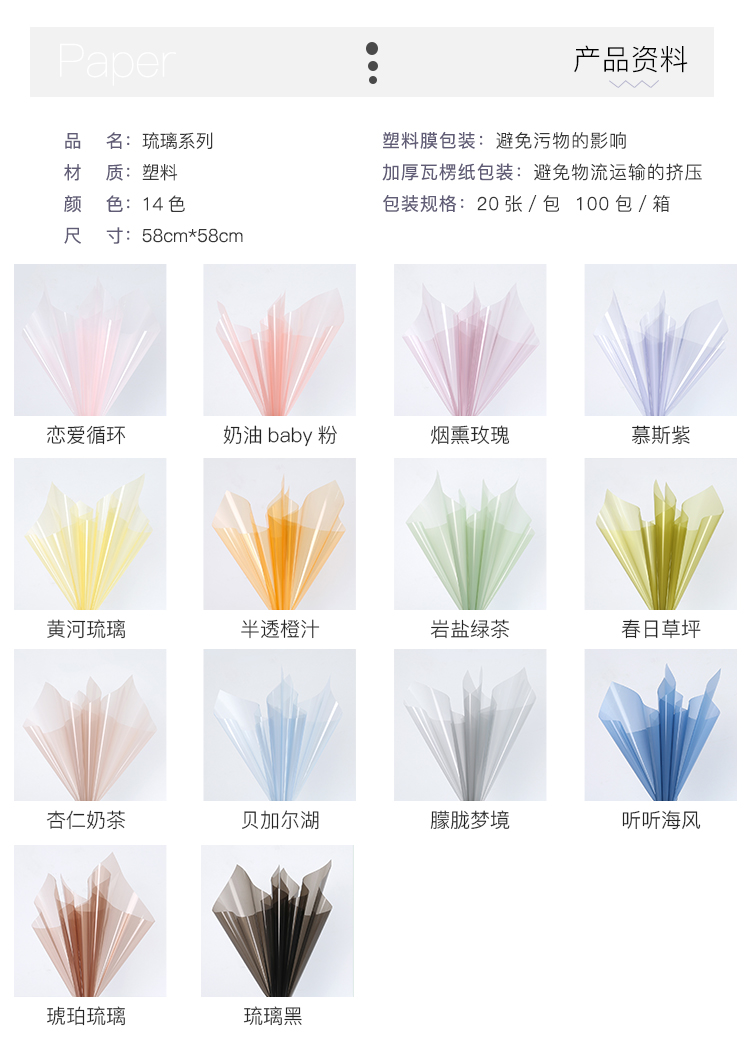 【琳琅】琉璃系列加厚OPP膜/彩色果冻膜(卷筒10码)