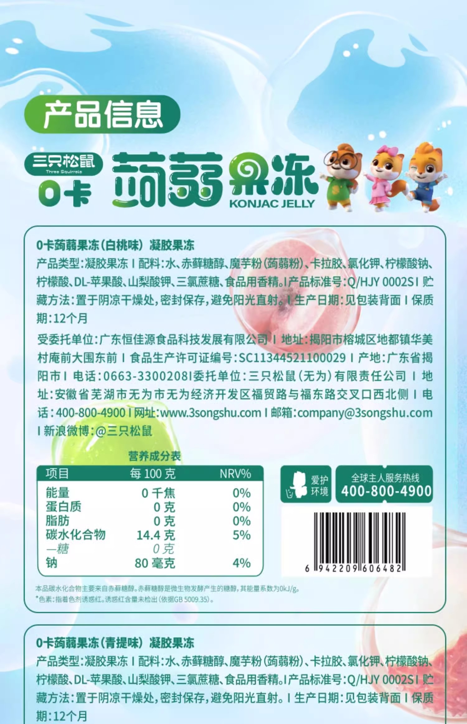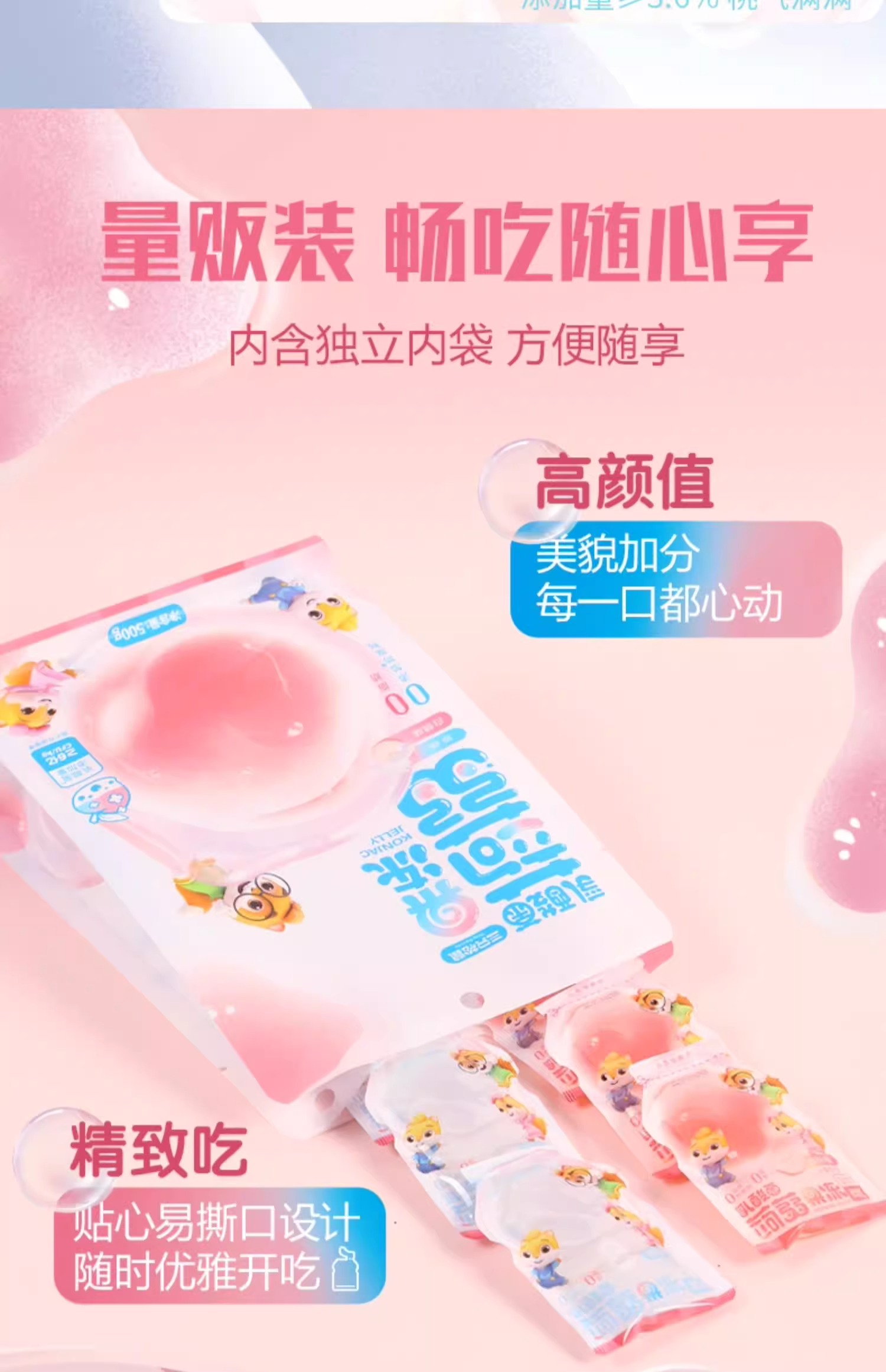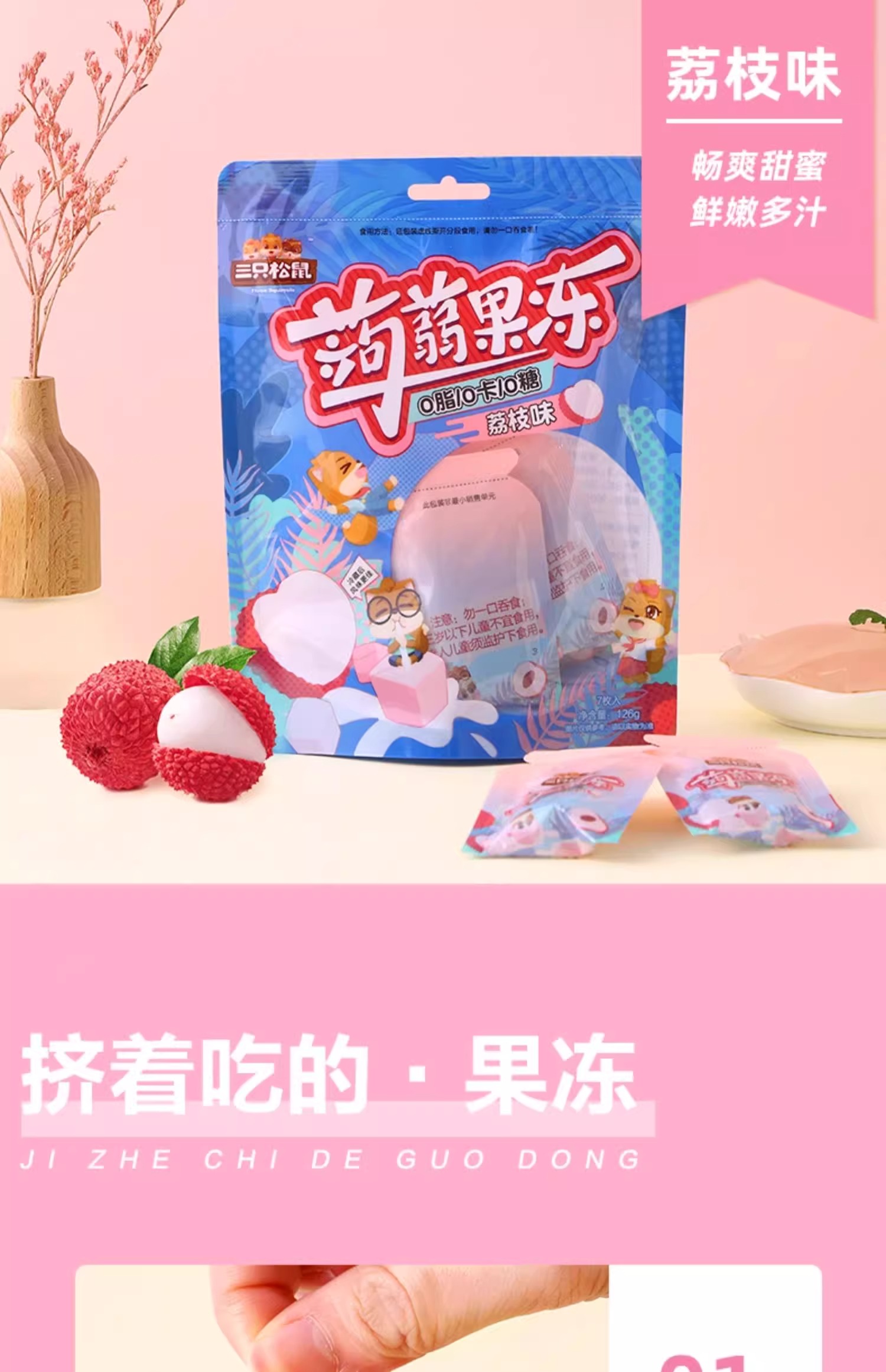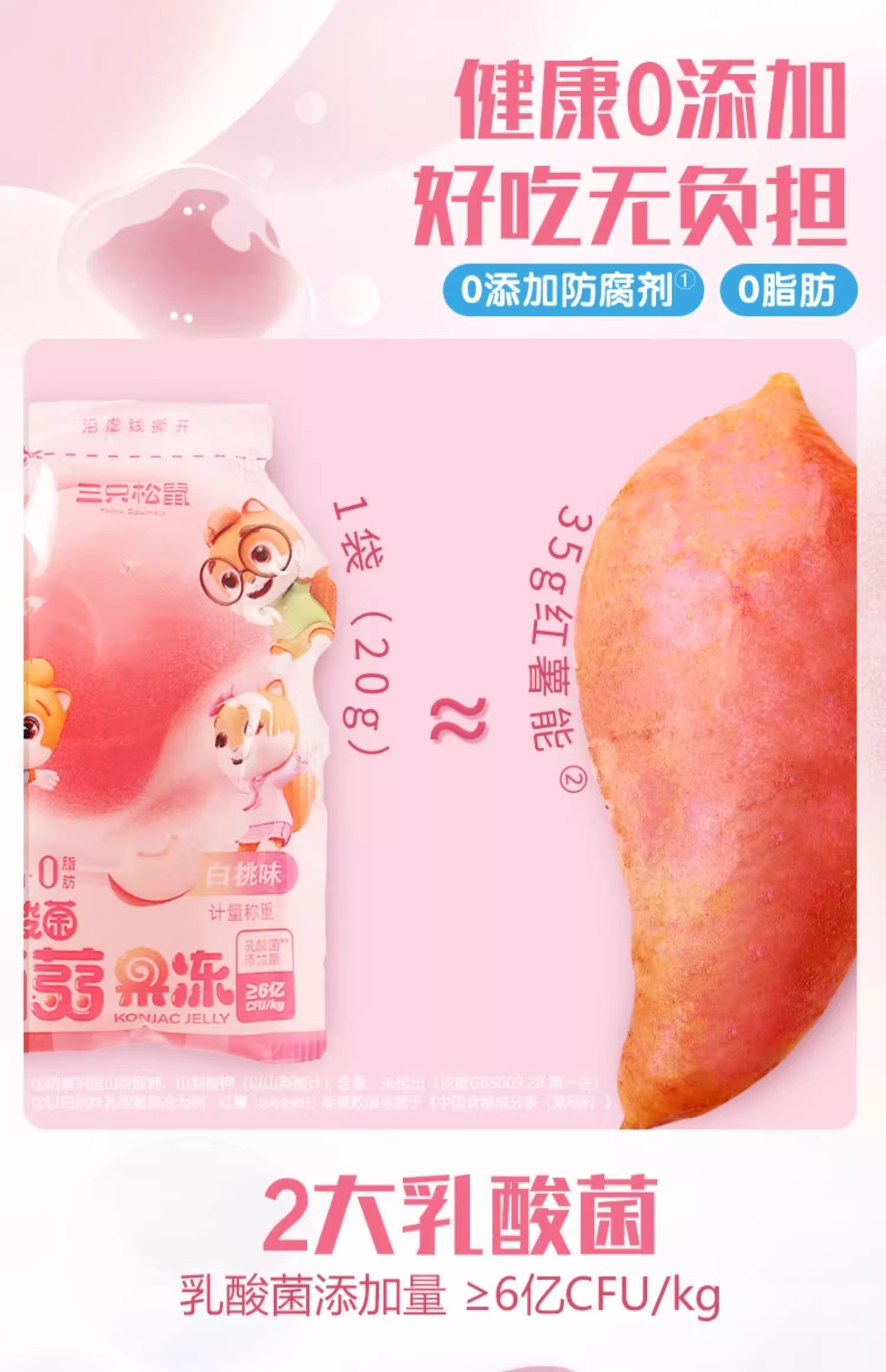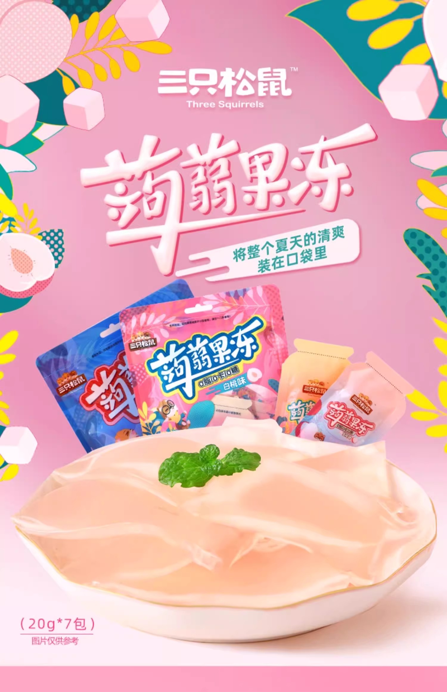 【19.9抢40包❗️0糖0脂0卡🔥蒟蒻果冻】精选魔芋粉 细嫩Q弹 柔滑爽口 缤纷果味 酸酸甜甜 清爽多汁!三只松鼠/混合味/480g量贩装定制款-d