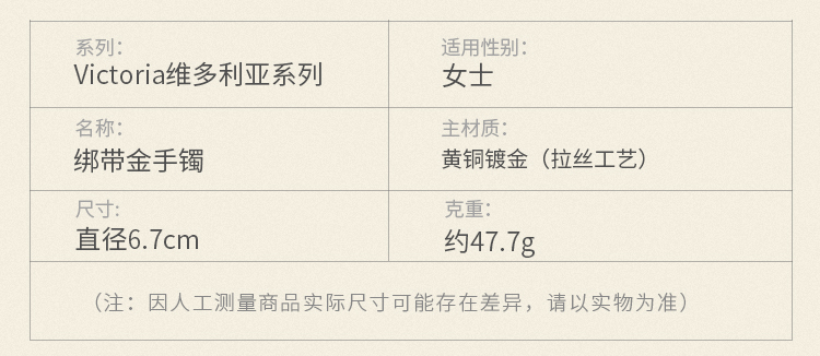 【陈婧菲、邬君梅、陈卓璇同款】Victoria维多利亚系列|绑带金手镯