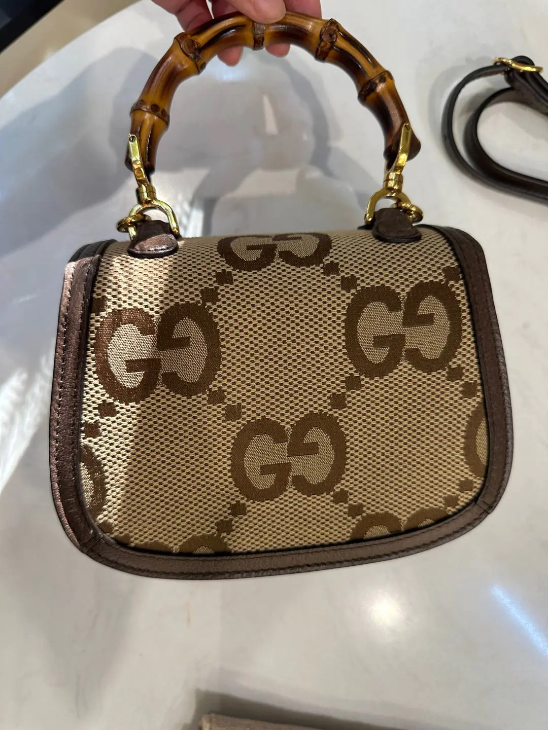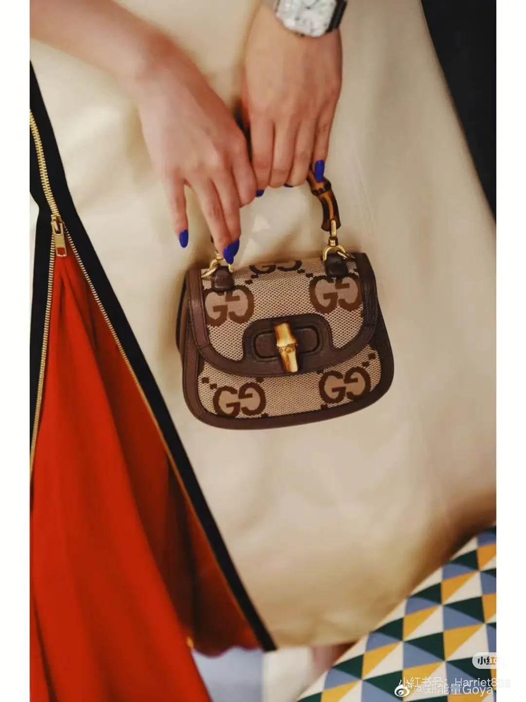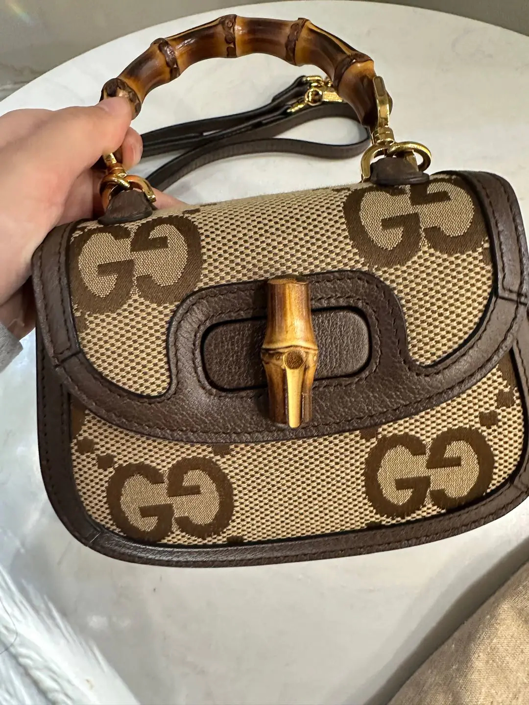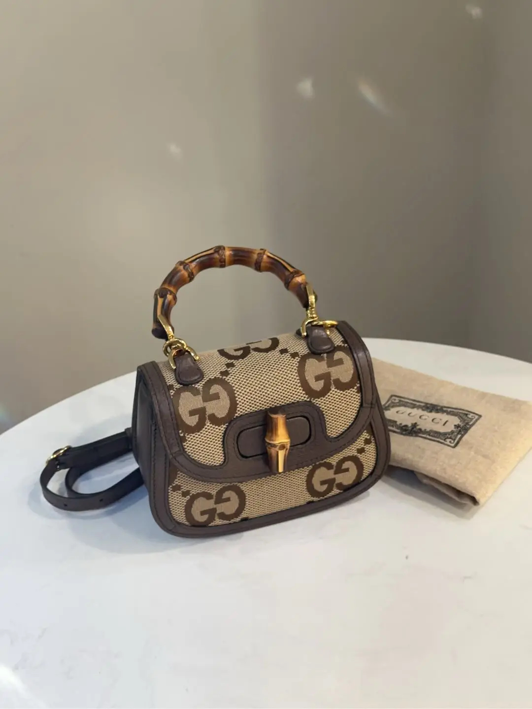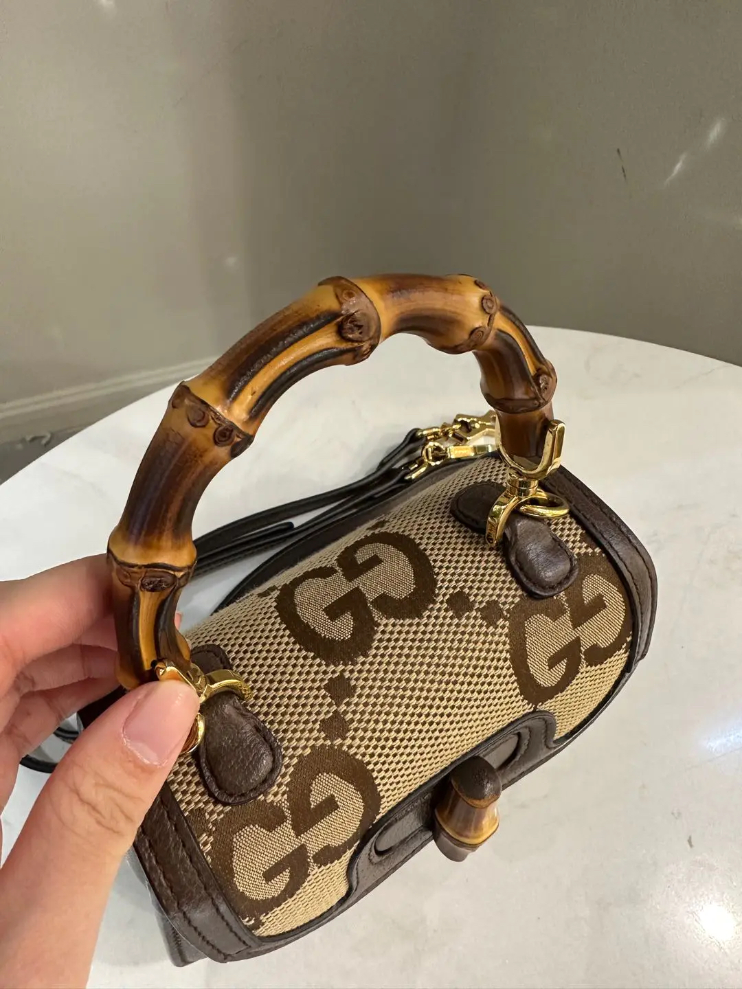 正品二手 Gucci Bamboo 1947 mini 竹节 手拿包👜98新 17*12 配件:肩带*2 防尘袋。复古又百搭