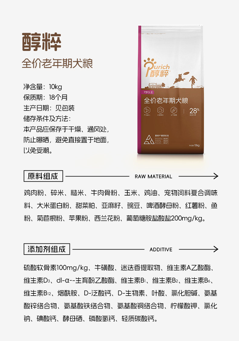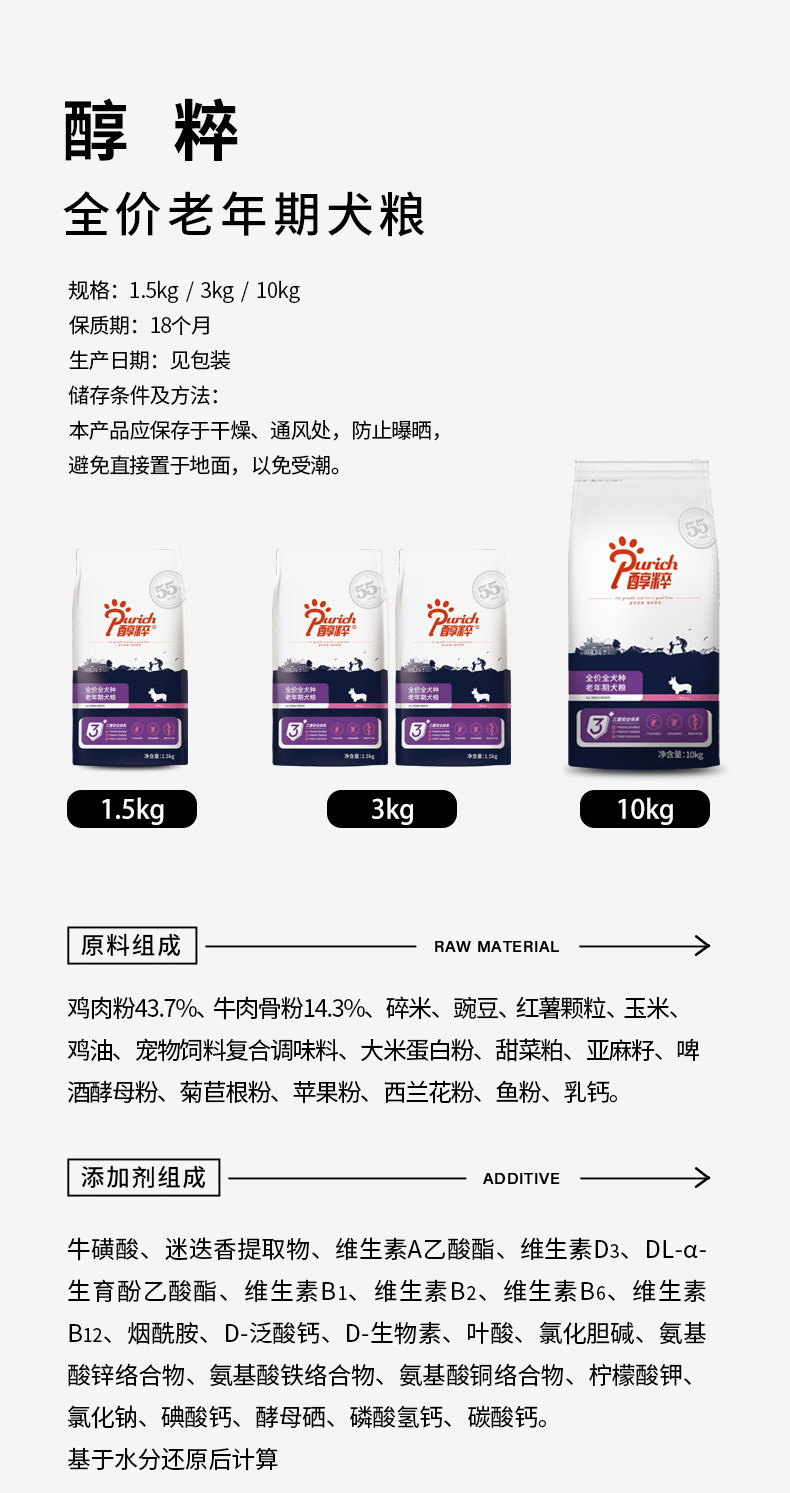 醇粹全价大型犬成犬粮15kg/小型犬高龄犬粮1.5kg*2