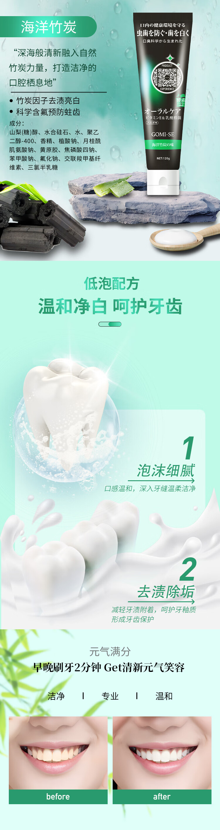日本进口GOMISE秘素芦荟酵素牙膏120g 多香型 【买一送一】