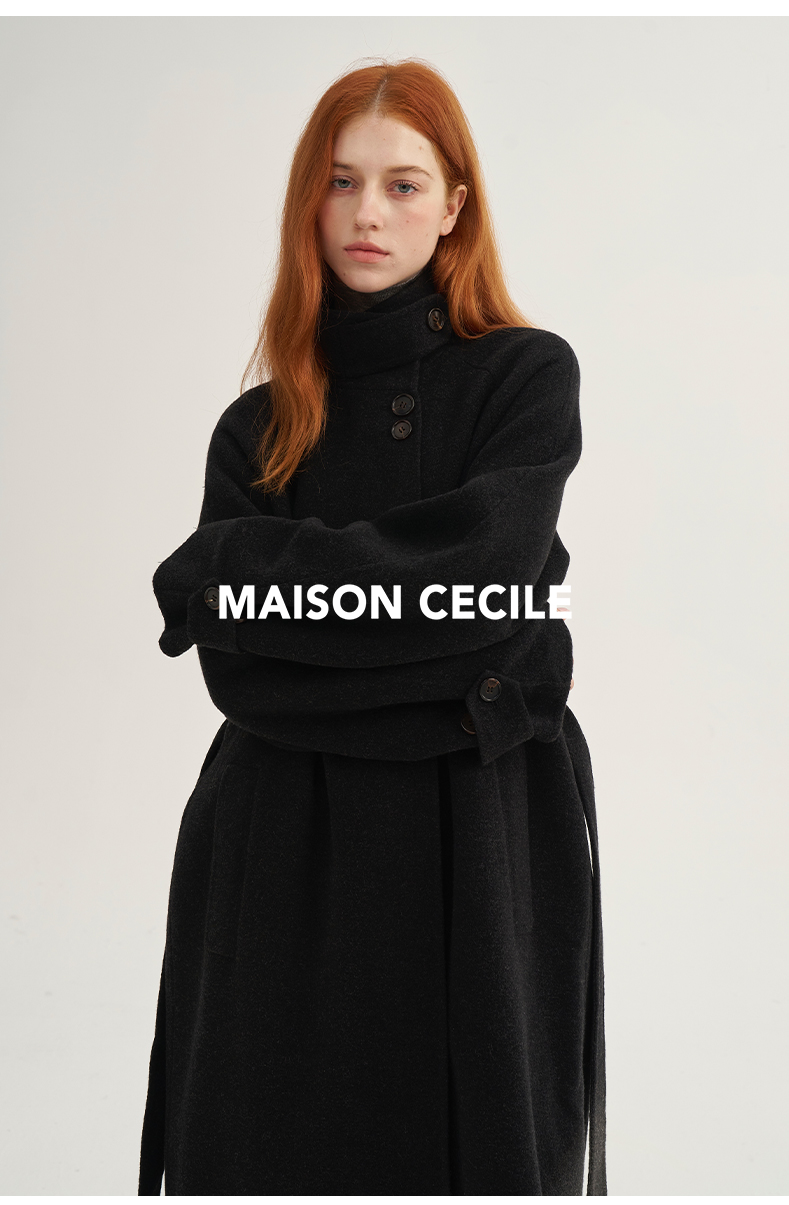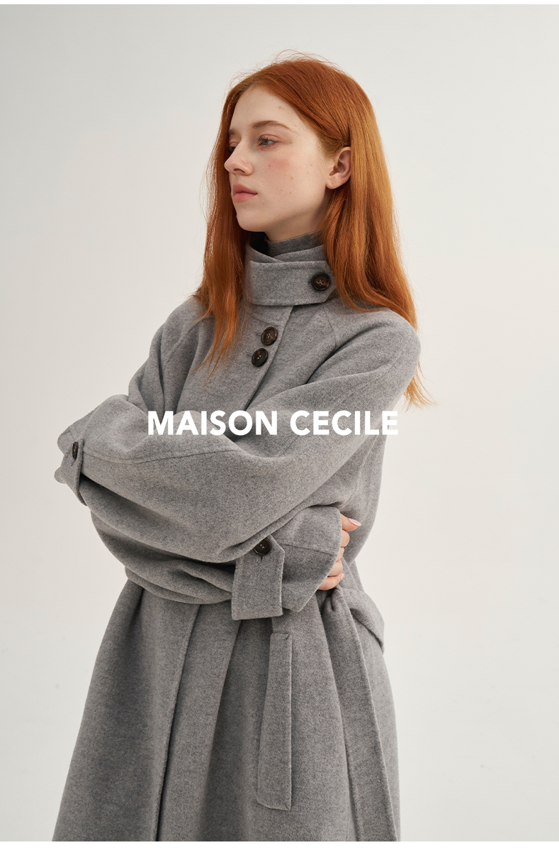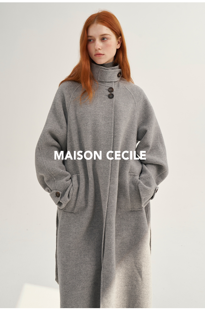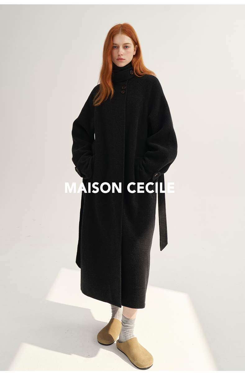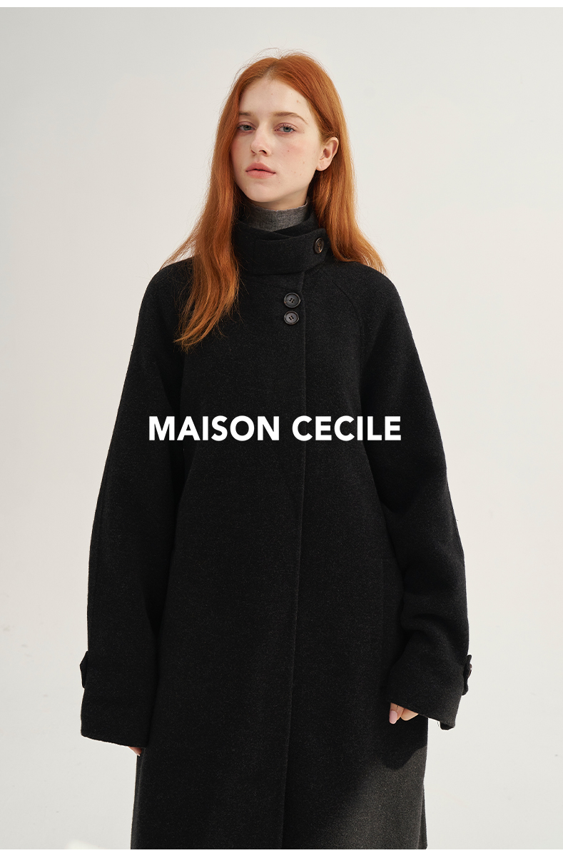 MAISON CECILE深灰/浅灰羊绒羊毛软糯蓬松感宽松立领大衣
