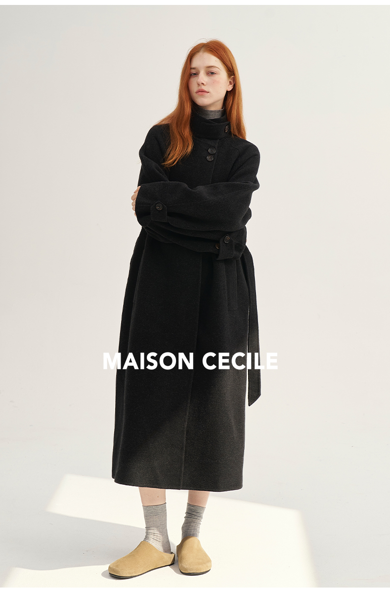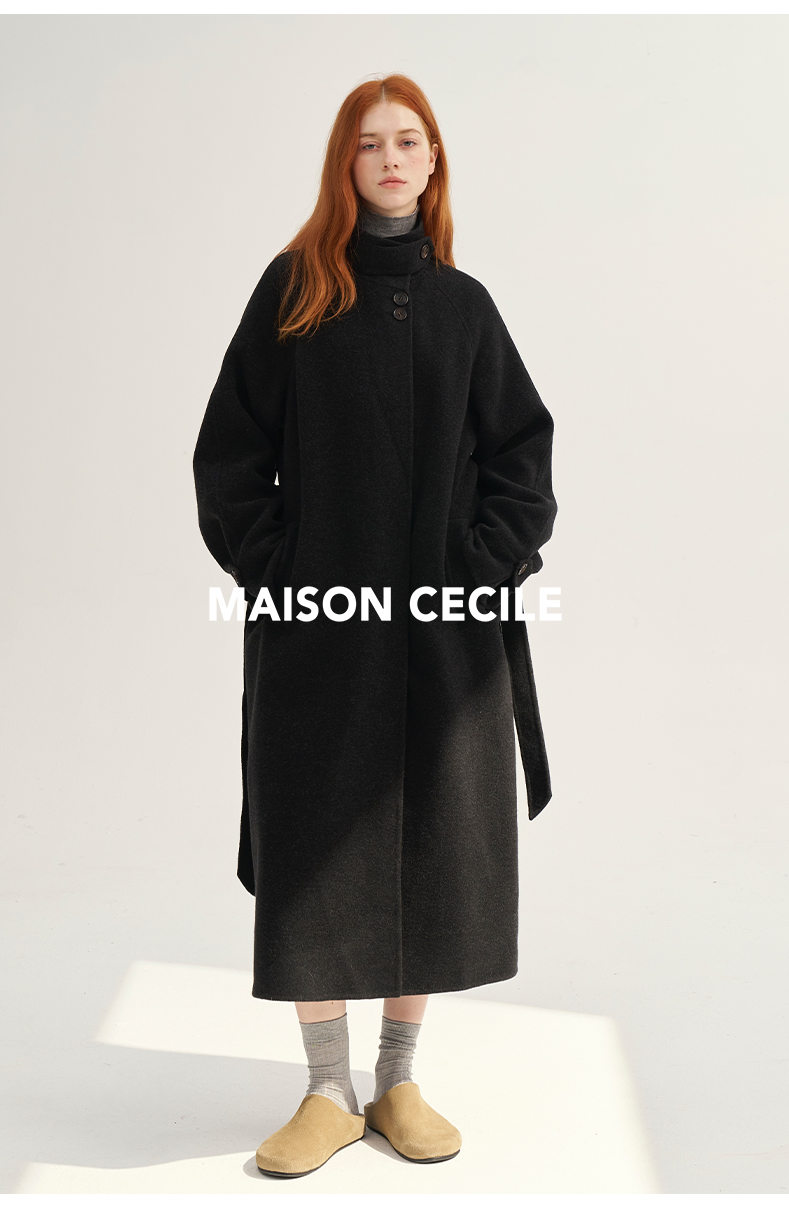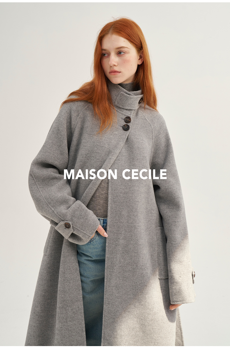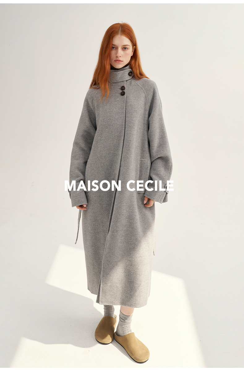 MAISON CECILE深灰/浅灰羊绒羊毛软糯蓬松感宽松立领大衣