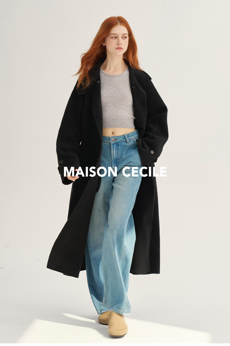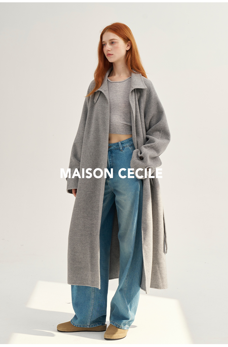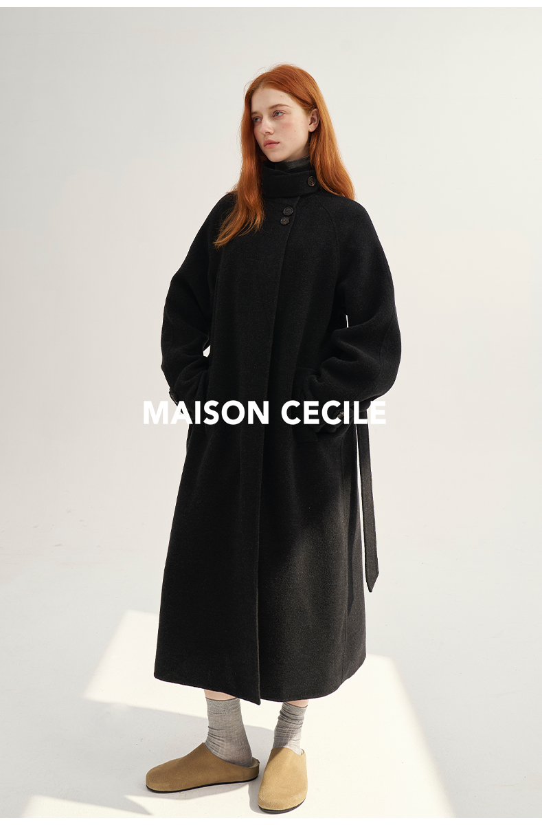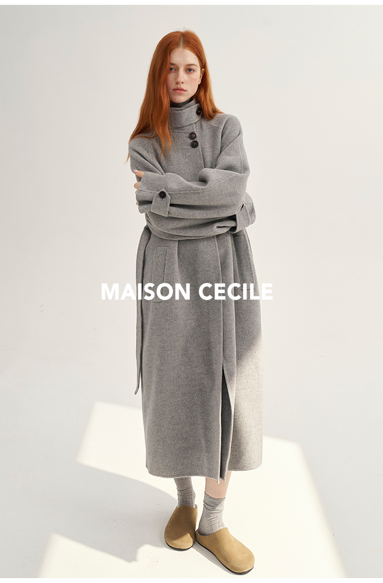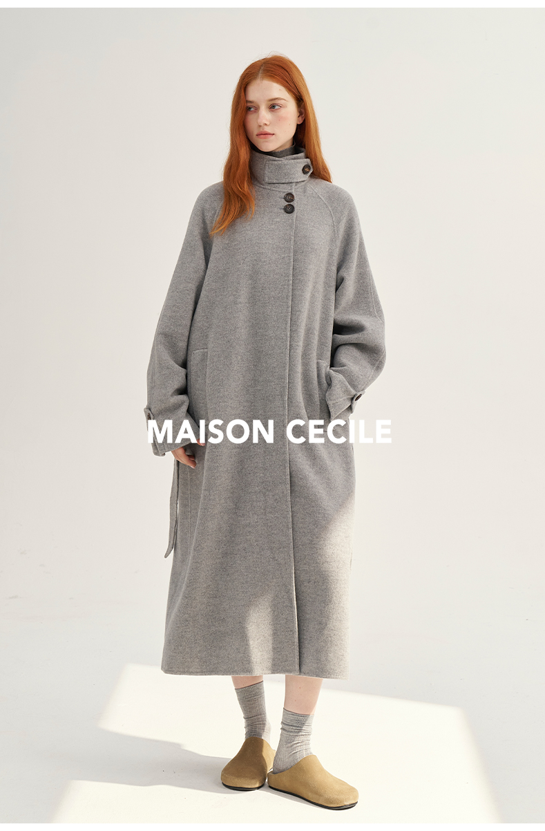 MAISON CECILE深灰/浅灰羊绒羊毛软糯蓬松感宽松立领大衣