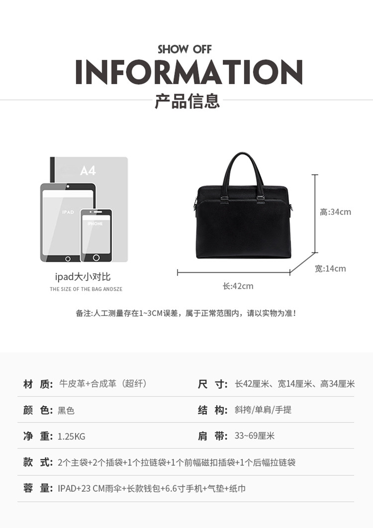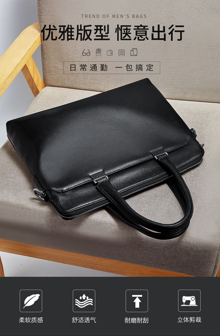 Safiya/索菲娅头层牛皮2023新款男士公文包电脑包手提包斜跨男包