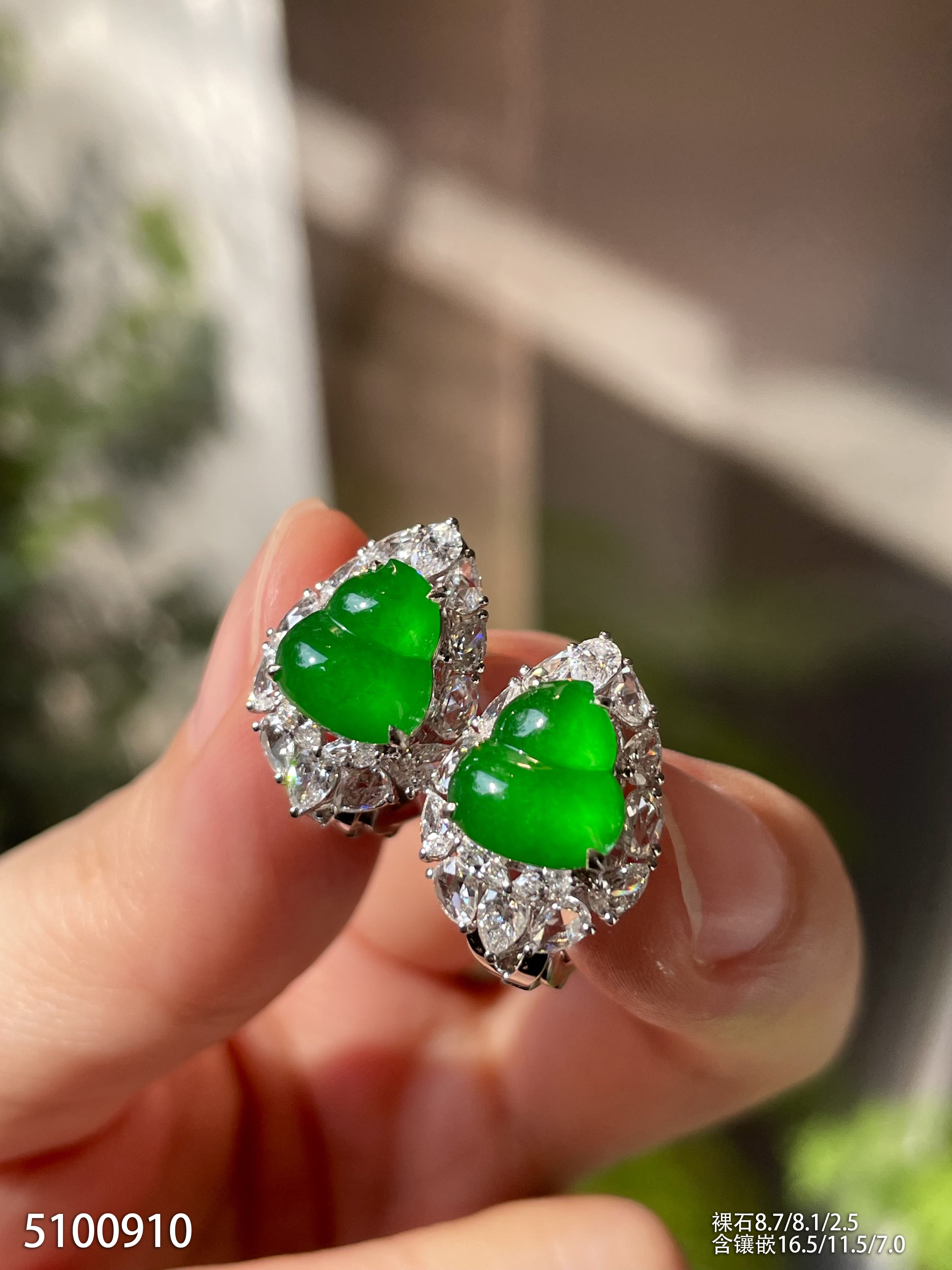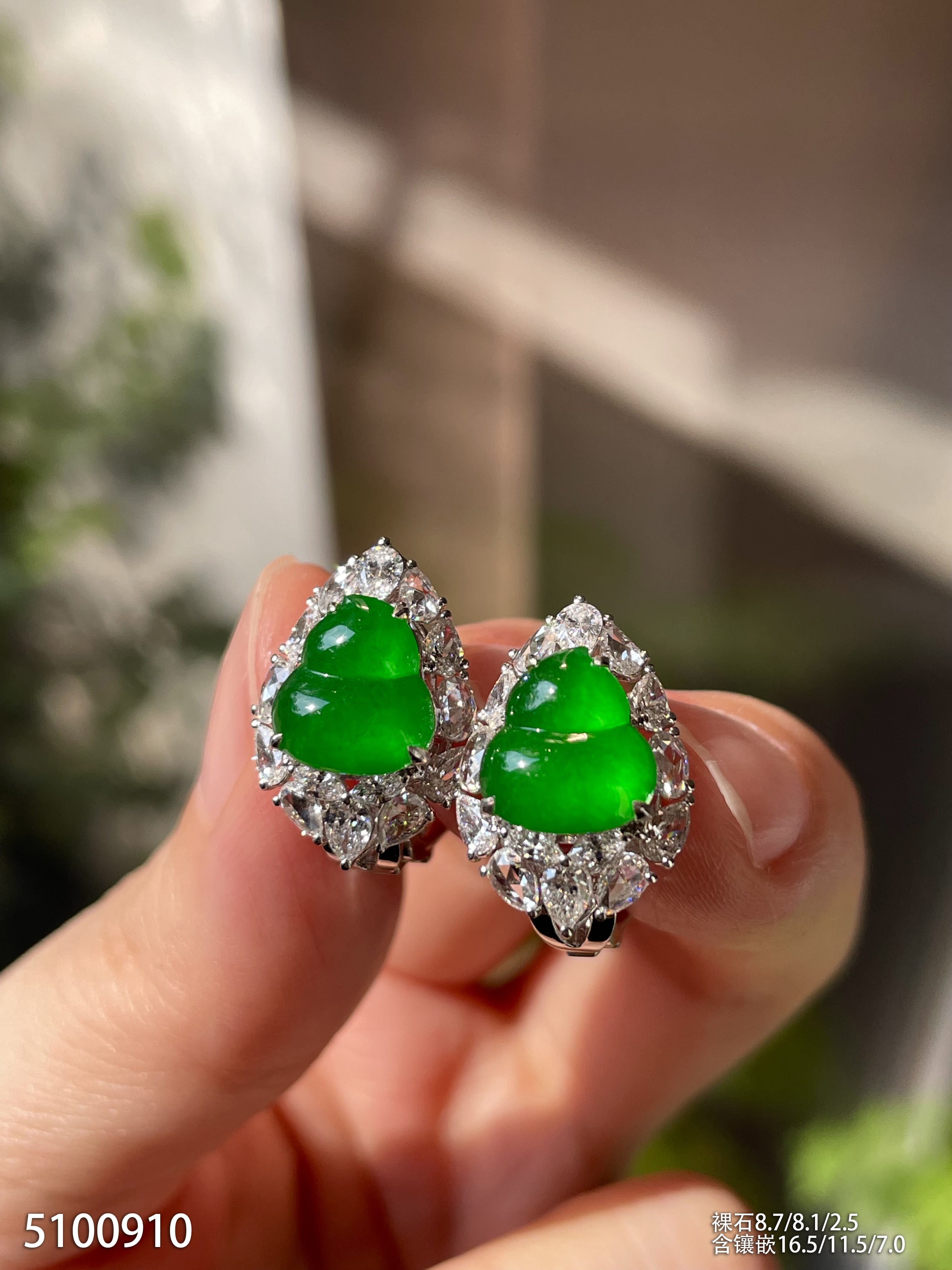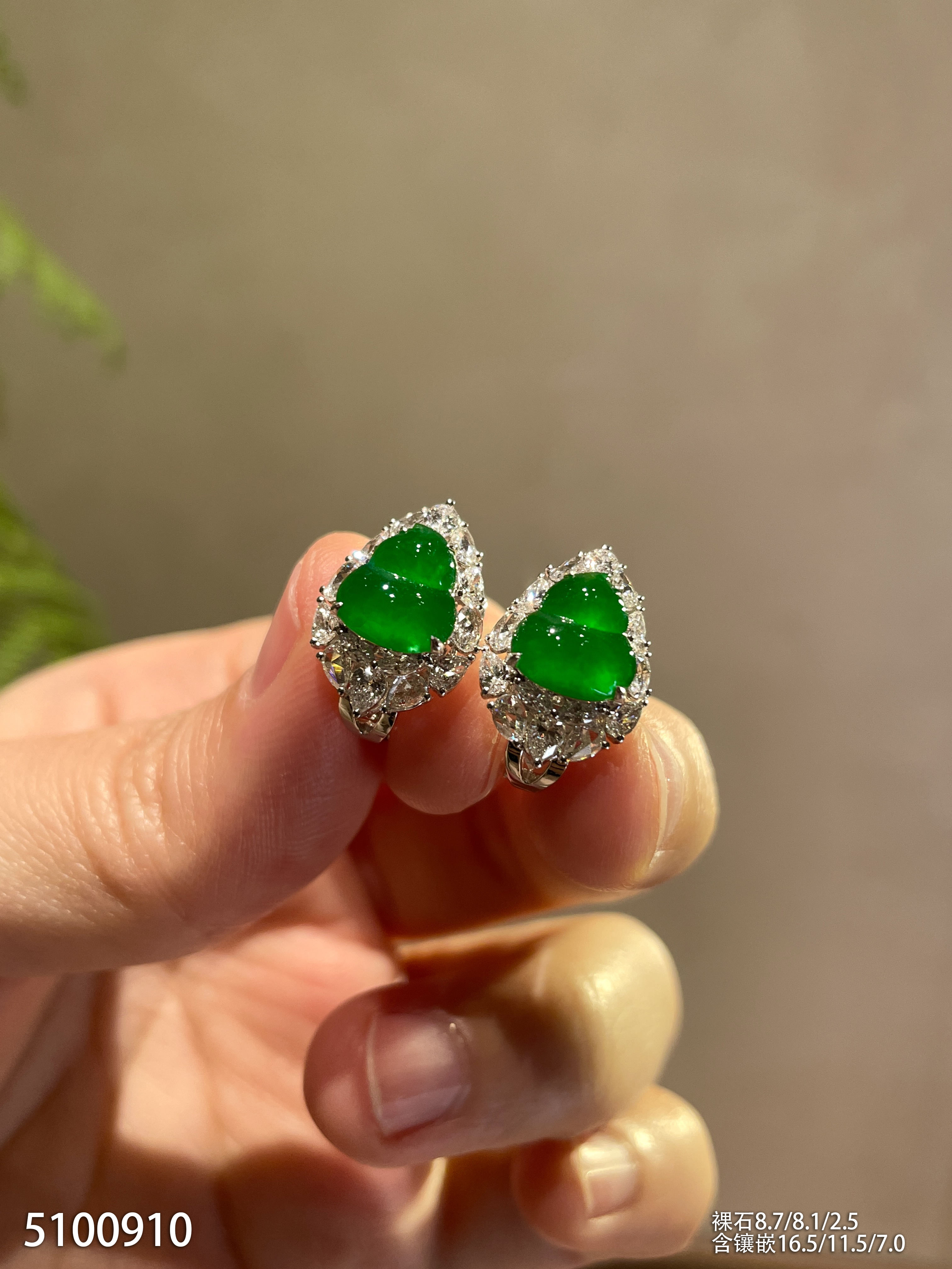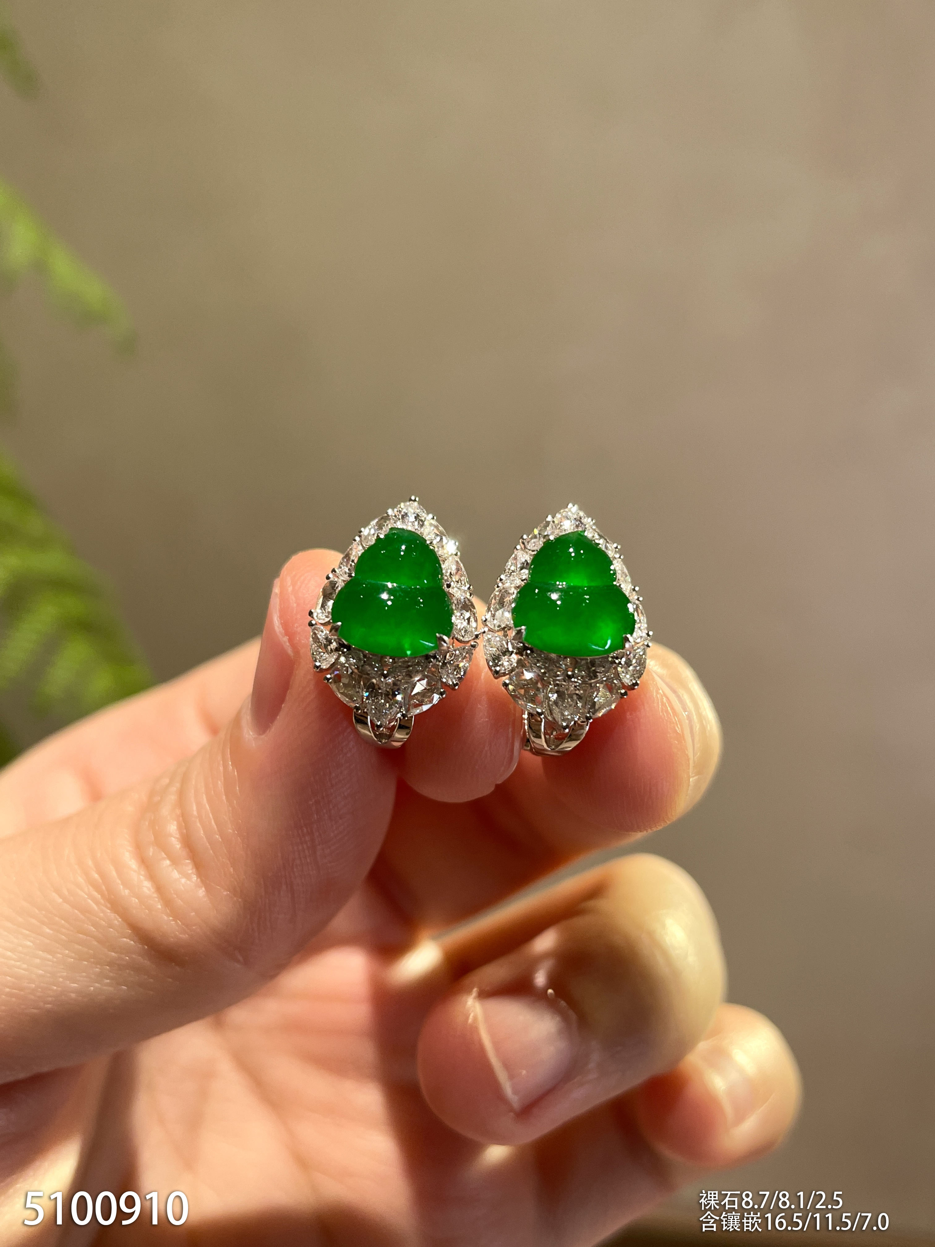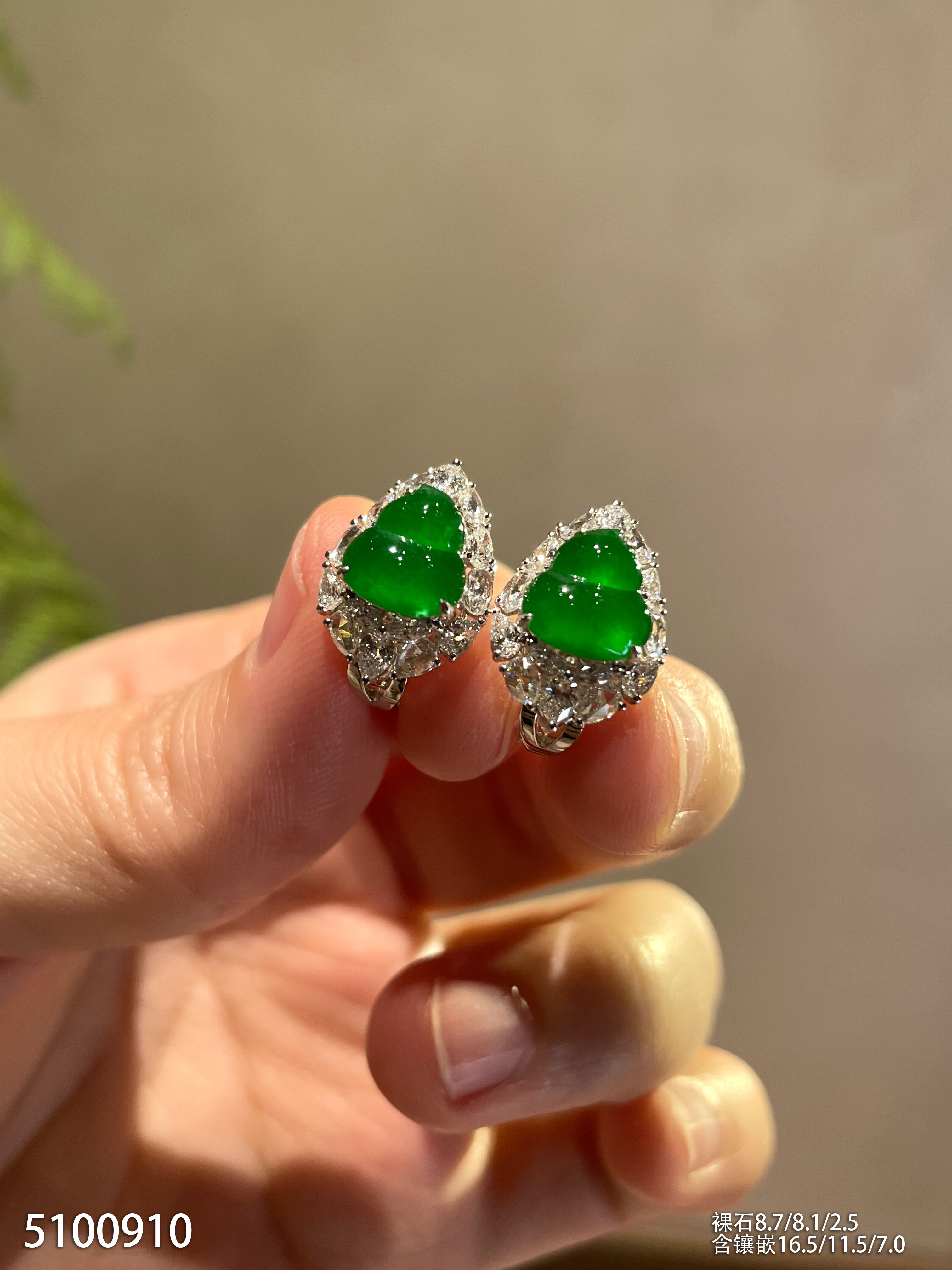高冰种浓艳绿蛋面耳坠【6025704】具体价格微信咨询