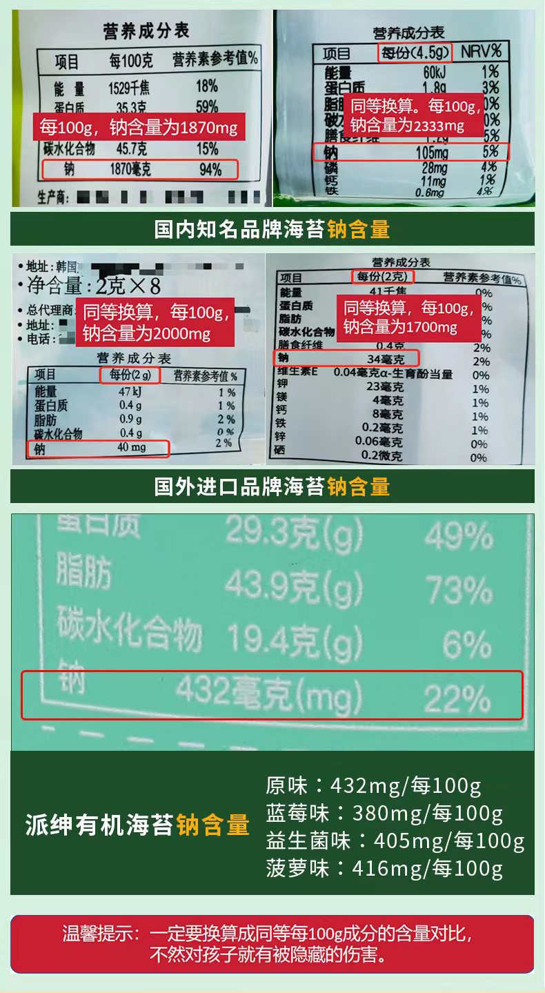 我们的有机海苔系列钠含量控制在450mg以内✔