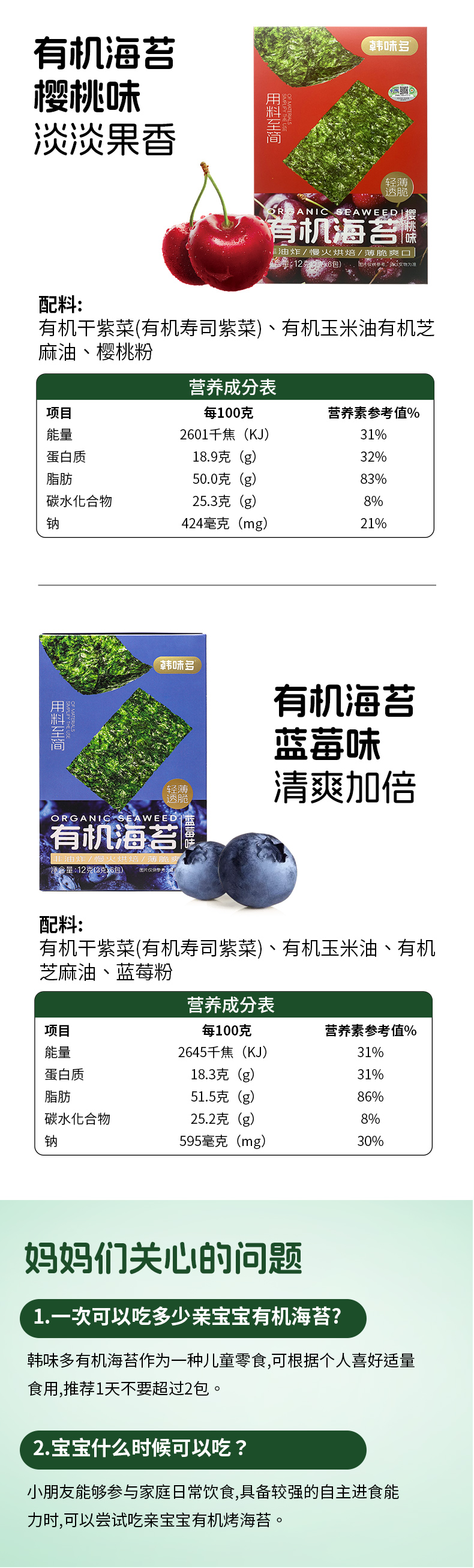 有机海苔(蓝莓味)配料: