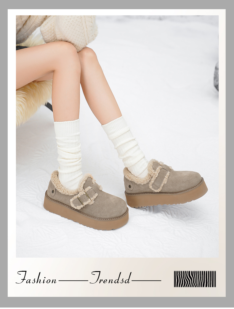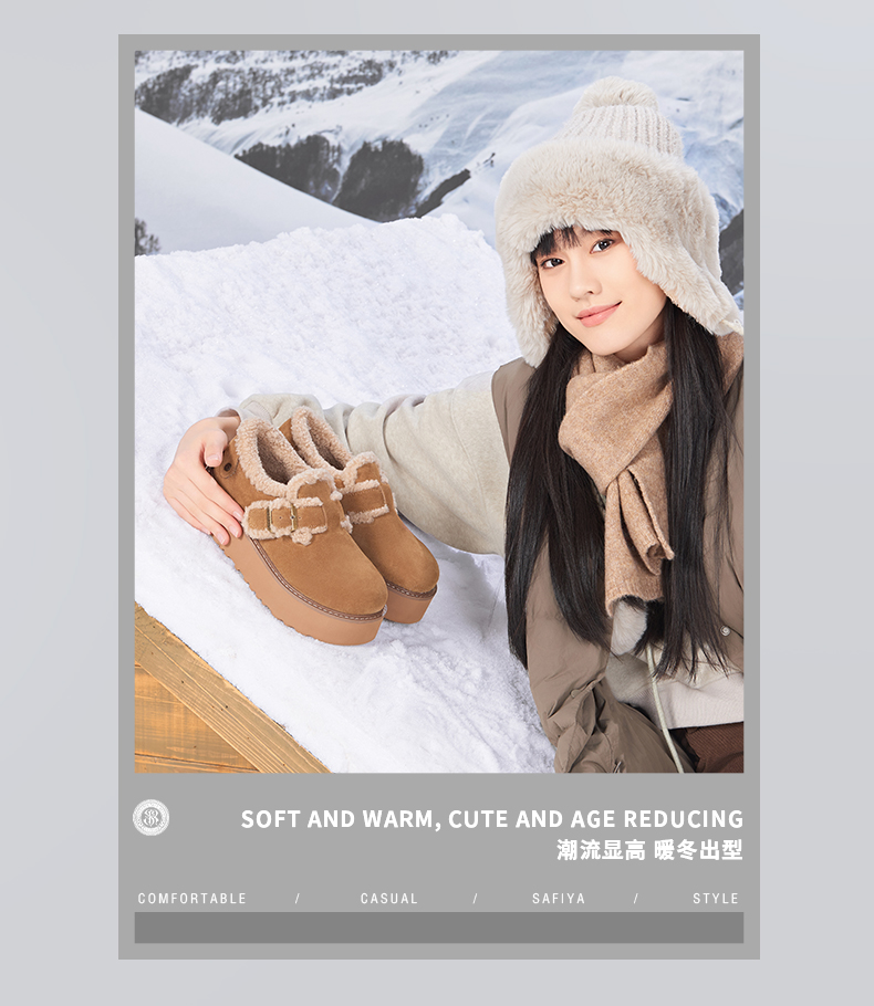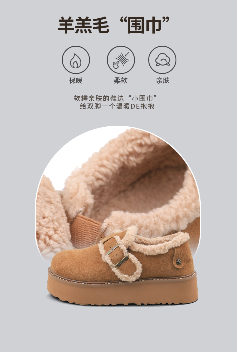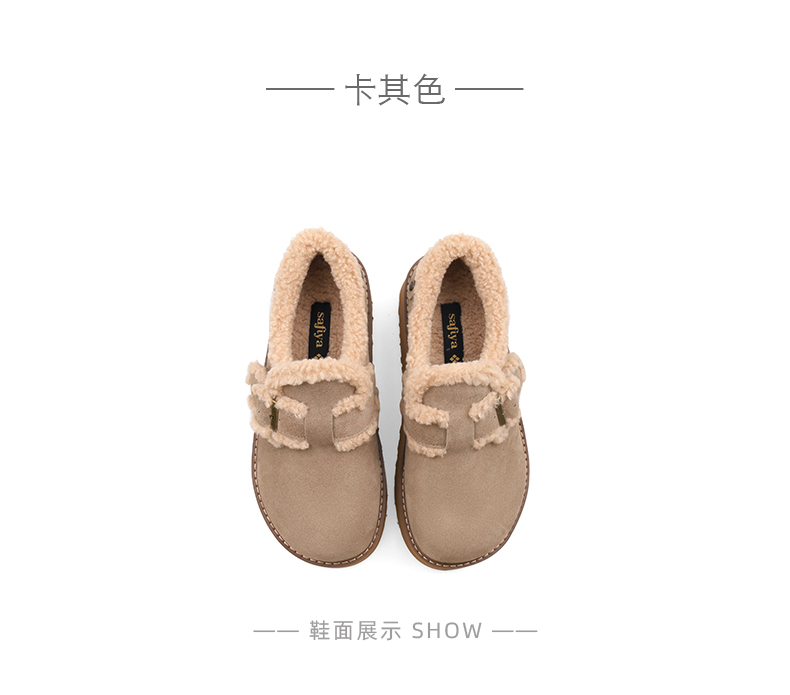 Safiya/索菲娅2024冬季厚底增高一脚蹬加绒保暖羊羔毛勃肯棉鞋 SF44112038