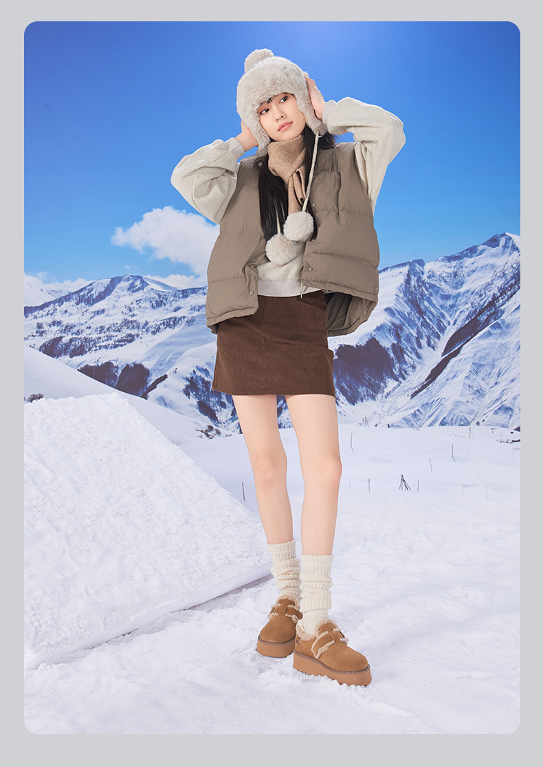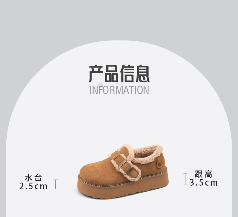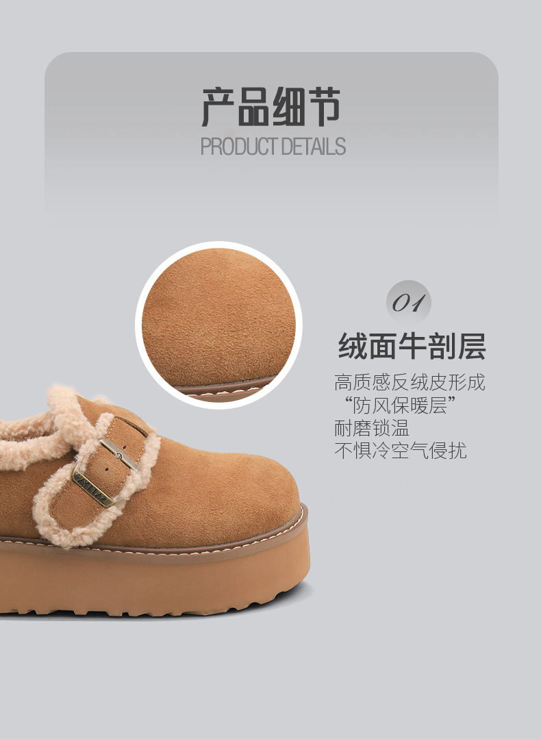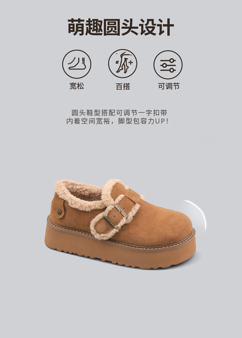 Safiya/索菲娅2024冬季厚底增高一脚蹬加绒保暖羊羔毛勃肯棉鞋 SF44112038
