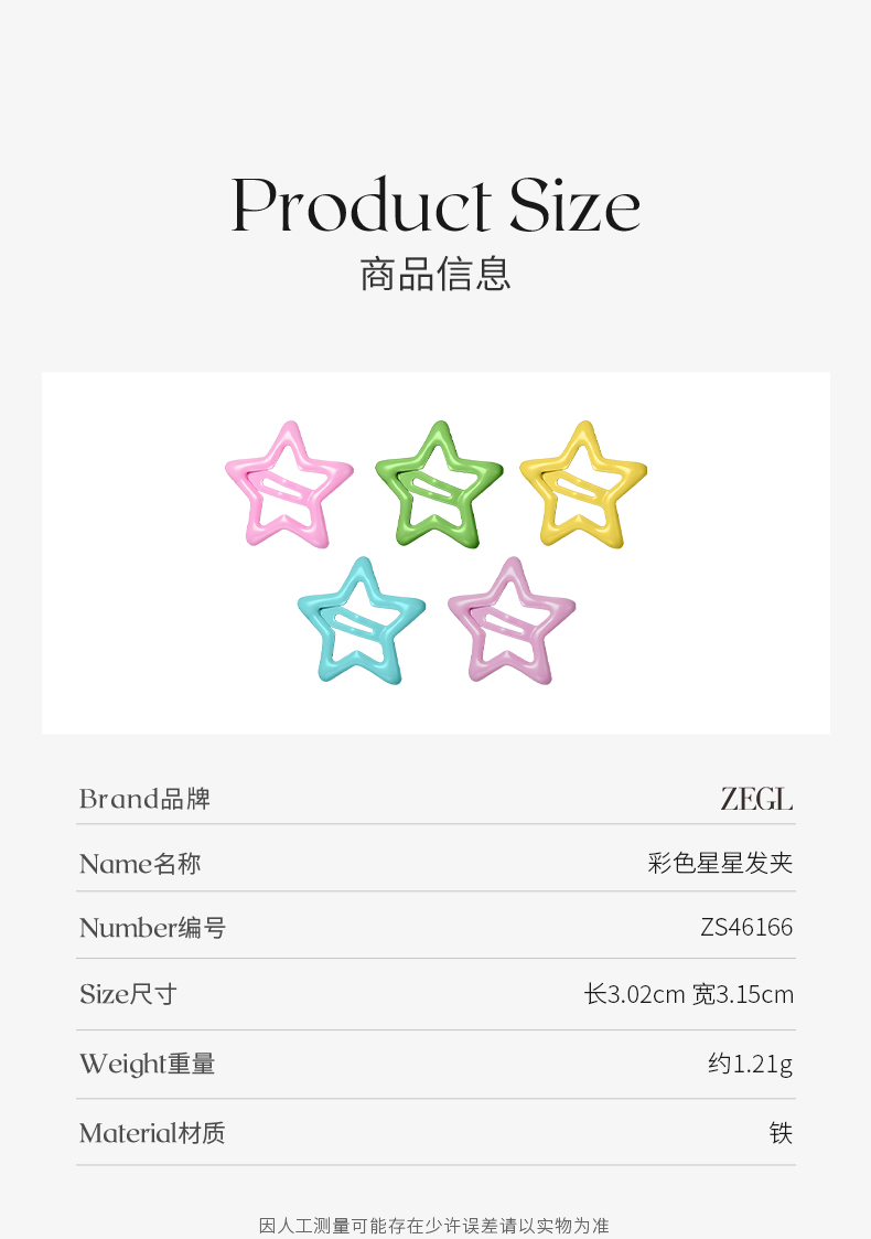 ZEGL星星y2k多巴胺发夹女彩色侧边刘海夹碎发夹子bb夹发卡头饰品