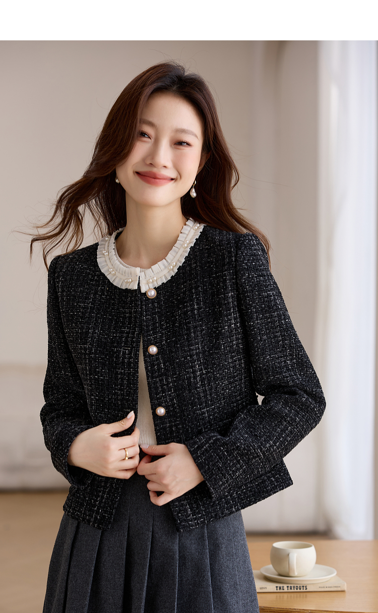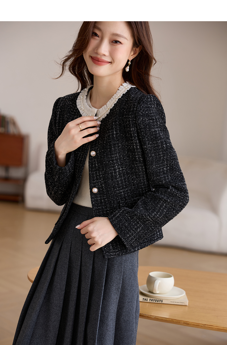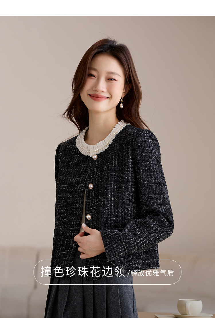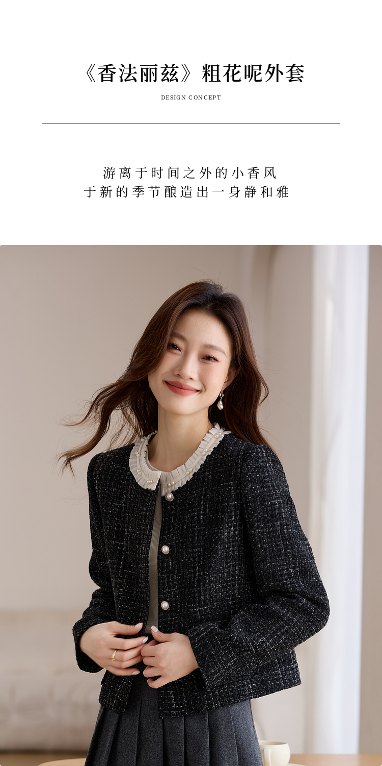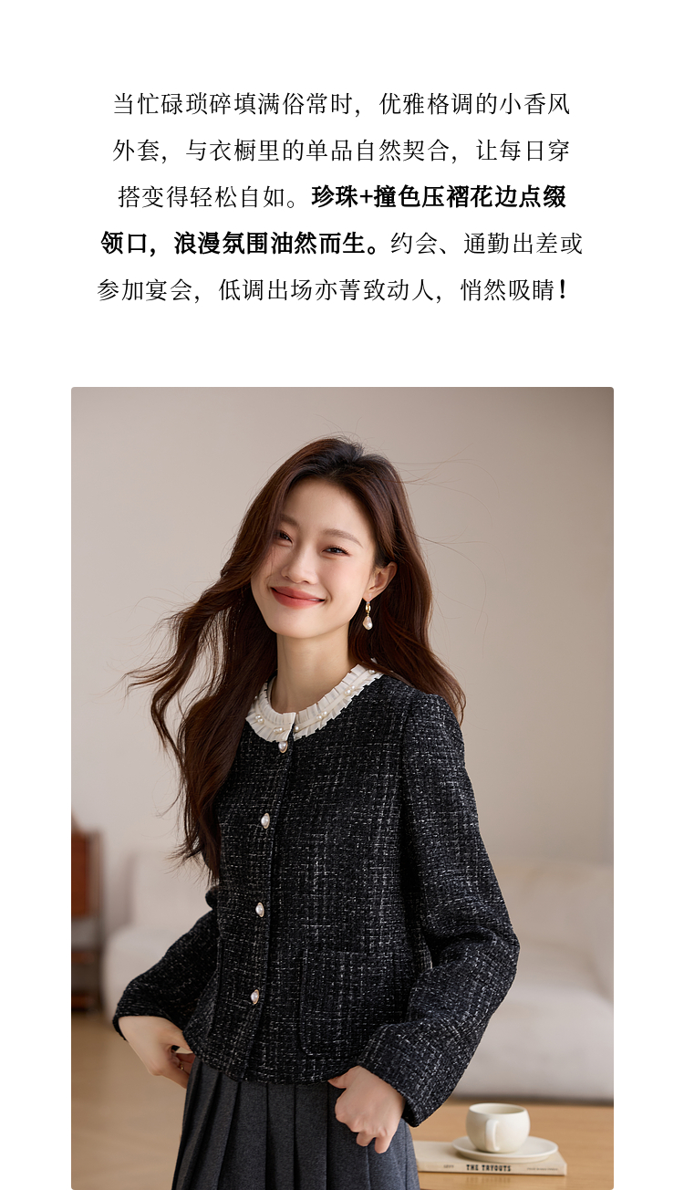 【149元福袋,不支持退换】熙世界小香风黑色短外套女秋冬2025新款名媛气质高级感粗花呢上衣