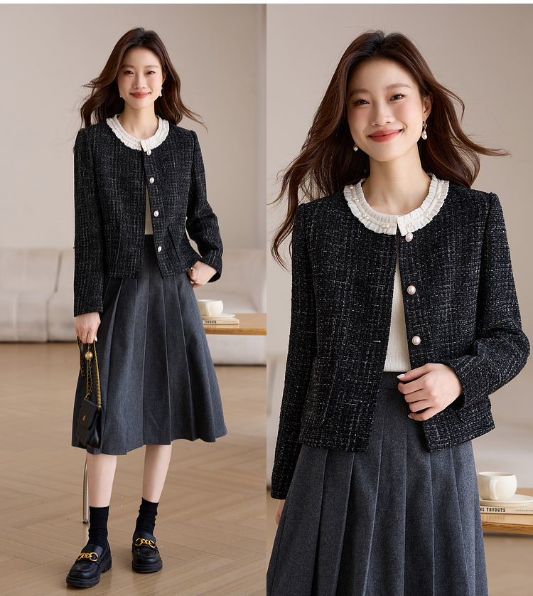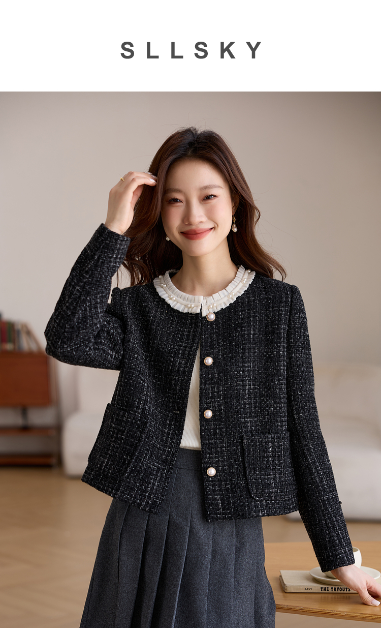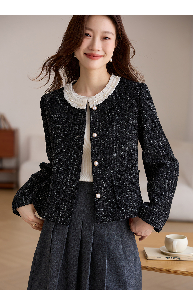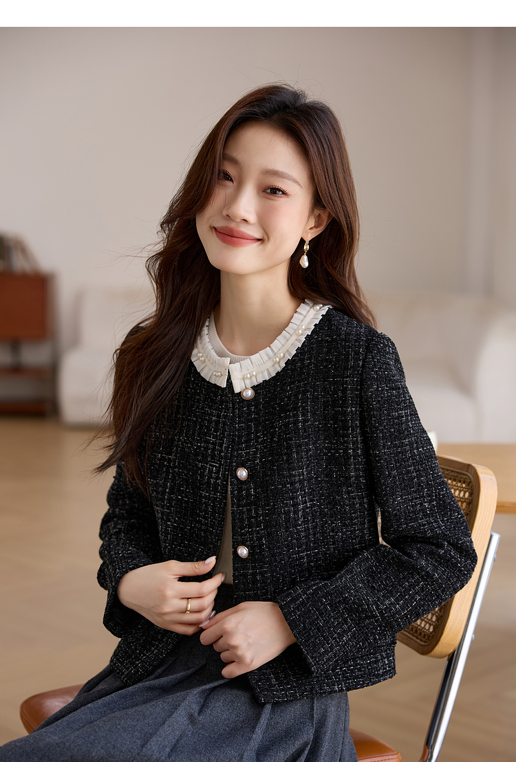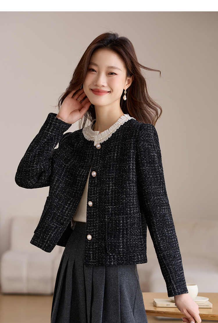 【149元福袋,不支持退换】熙世界小香风黑色短外套女秋冬2025新款名媛气质高级感粗花呢上衣